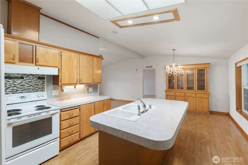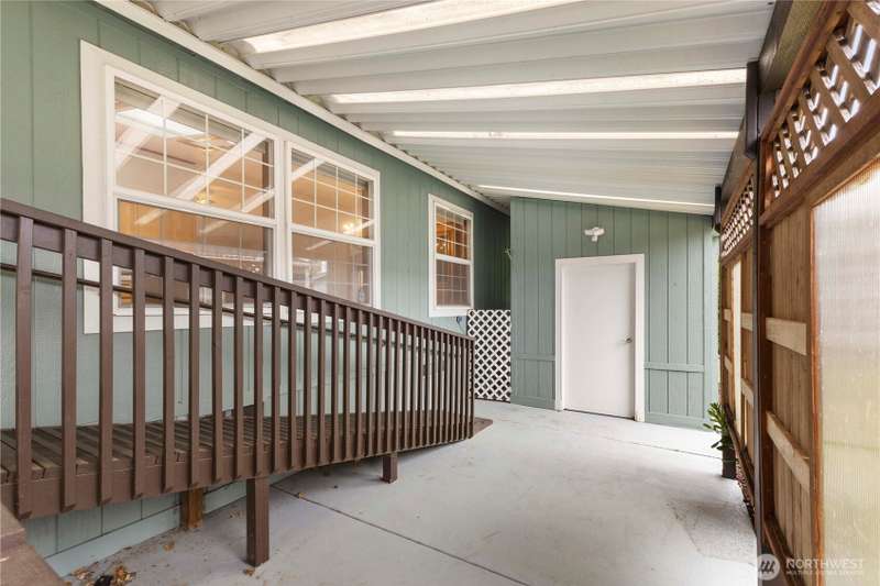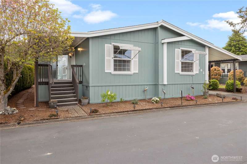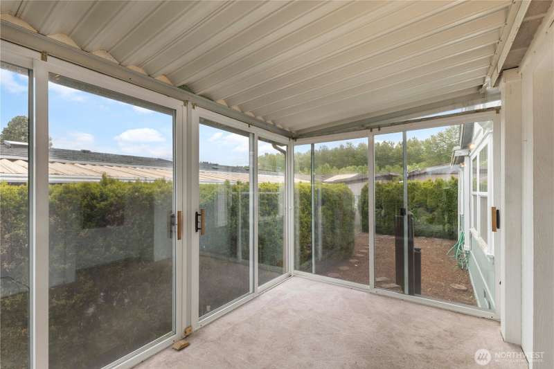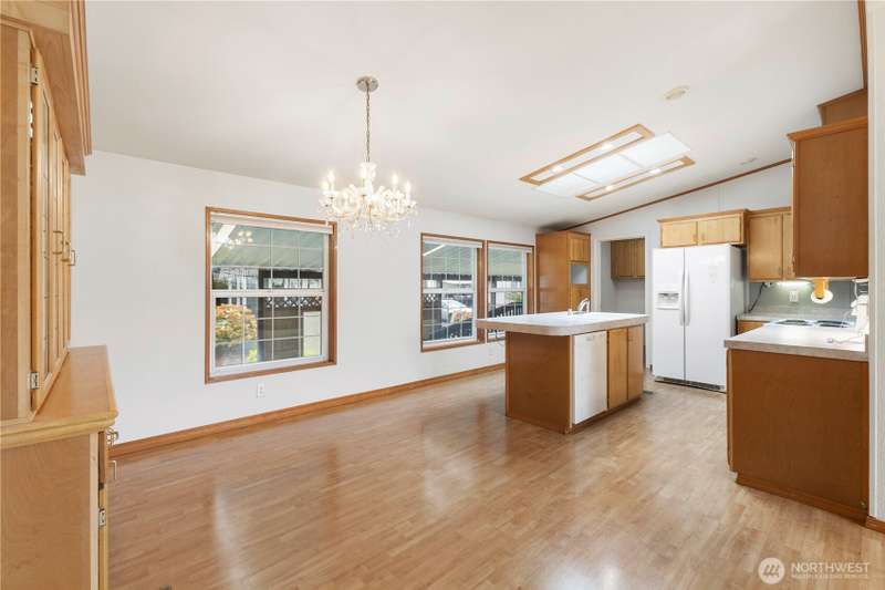 Move-in ready 3 bed, 2 bath in a welcoming 55+ community! Circular floorplan filled with natural light & laminate floors throughout home. Spacious living room with vaulted ceilings & big windows flows to dining area with built-in hutch. Bright kitchen offers island, skylight & great storage. Off the living room, enjoy a sunny enclosed sunroom perfect for morning coffee or relaxing afternoons. Large utility room adds storage. Private primary suite includes walk-in closet, skylight, soaking tub & walk-in shower. Two add’l bedrooms with generous closets sit at the opposite end, each with ceiling fans. Outside features covered carport, powered shed, easy-care landscaping with drip lines & heat pump that provides heating & cool air.