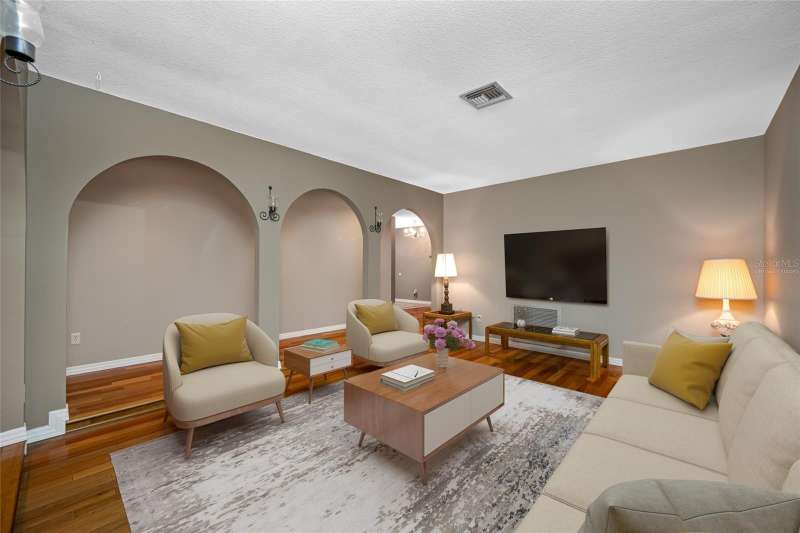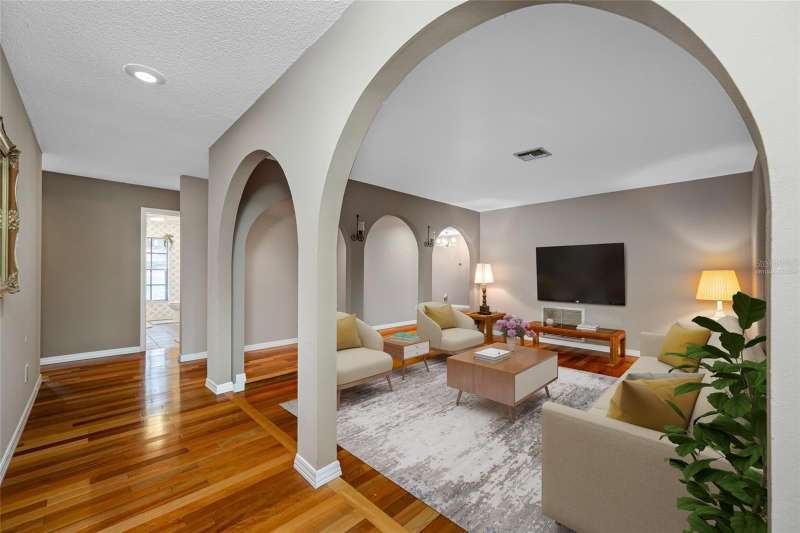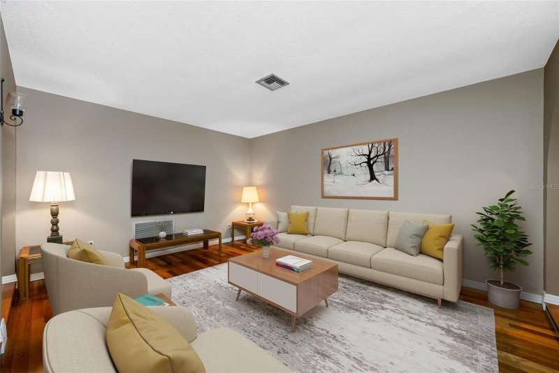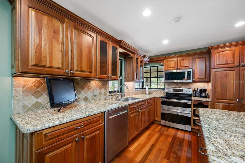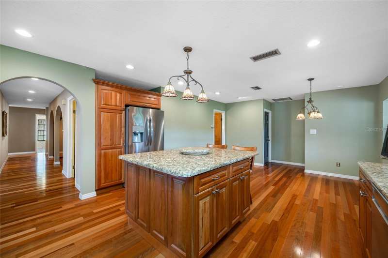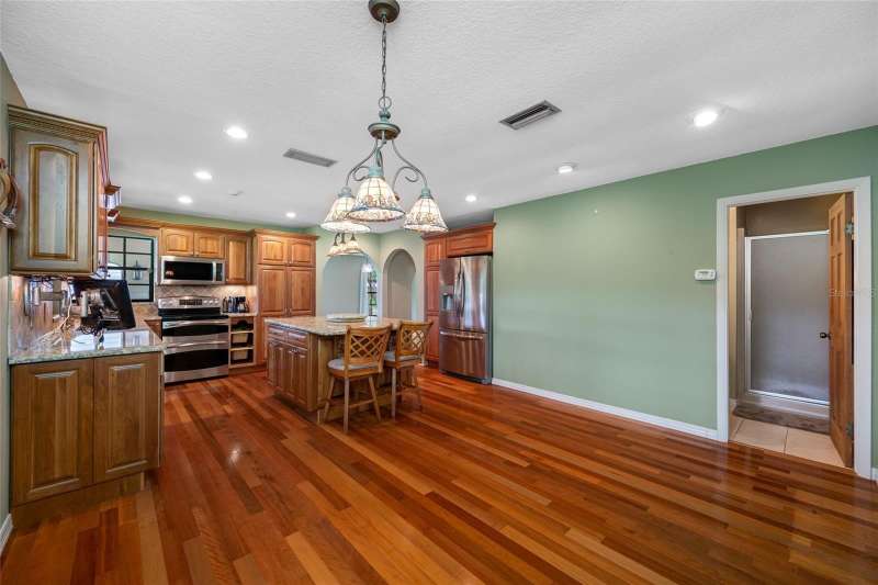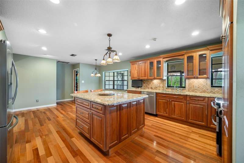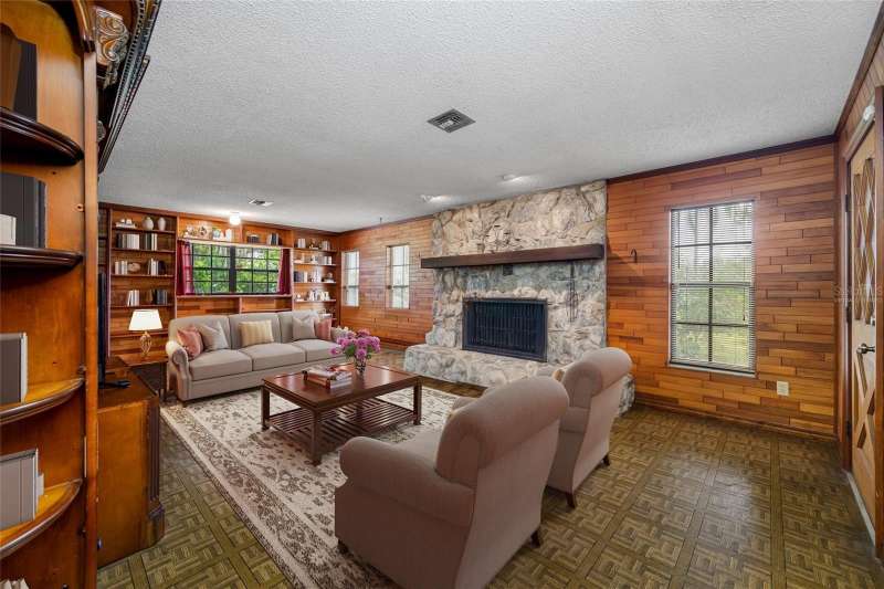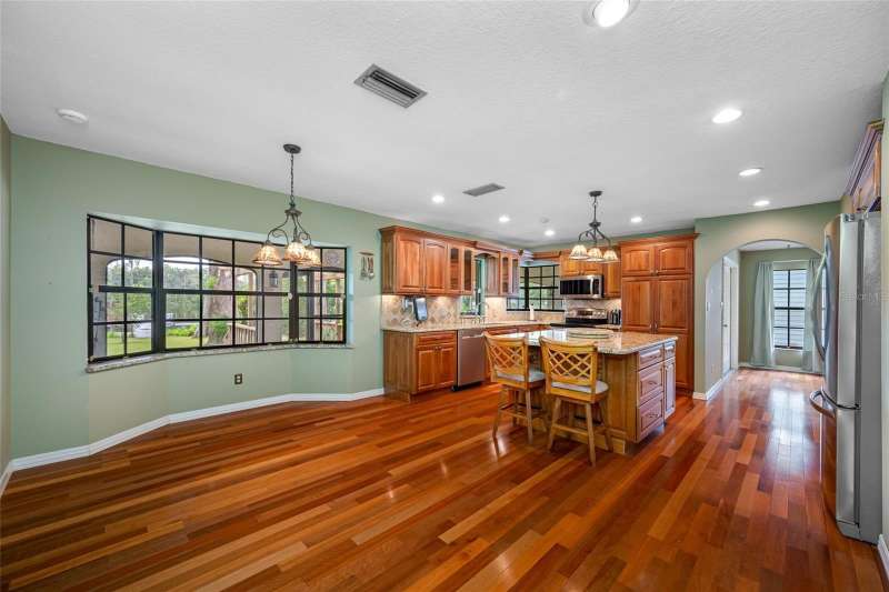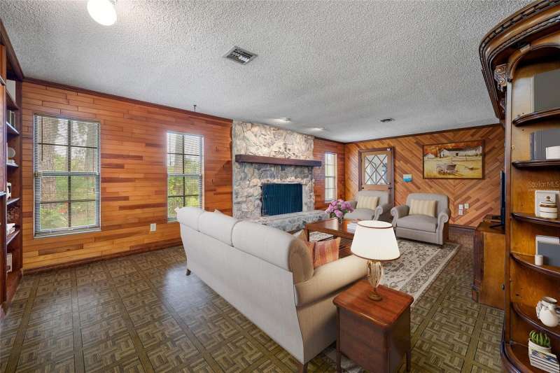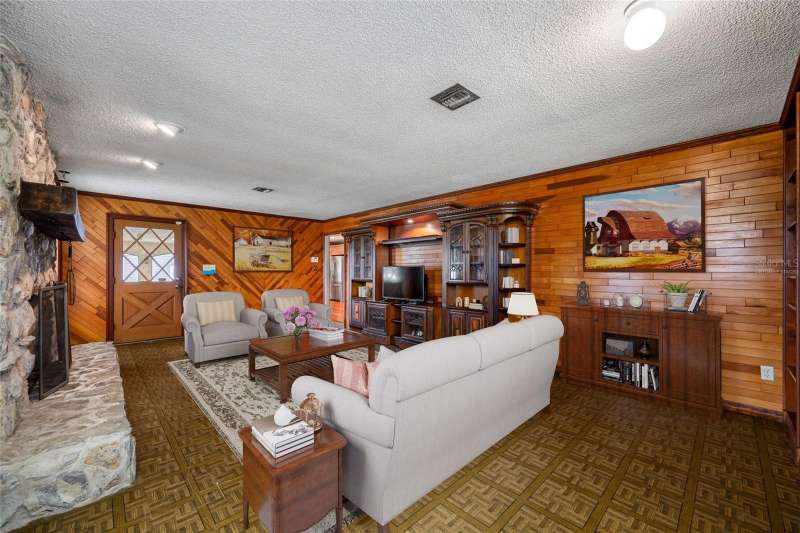 Looking for a SCENIC LAKEFRONT PROPERTY with room to spread out? Then look no further! Located in the heart of Lutz, this spacious 4 Bedroom, 3 Bath ranch style home is situated on a 1/2 ACRE on picturesque LAKE COMMISTON. From the moment you pull up, you will appreciate this home's character accentuated by its side-entry garage, lush landscaping, & tranquil koi pond. FLEXIBLE FLOOR PLAN includes Formal Living Room, Formal Dining Room, & separate Family Room with stone fireplace. Kitchen features granite counters with island, wood cabinets with over-under lighting, stainless steel appliances, tile backsplash, & additional dining area. Wood flooring throughout majority of home. The oversized WRAP AROUND SCREENED PORCH provides the perfect outdoor living area where you can enjoy the BEAUTIFUL LAKE VIEWS! Step out back to your private PARK LIKE SETTING with plenty of space for your toys! Wood dock provides access for fishing, boating, & kayaking/canoeing on 15 acre Lake Commiston. ROOF REPLACED 2021. HVAC SYSTEM REPLACED 2018. This home is waiting for your personal touches! Don't miss this opportunity to make it your own!
