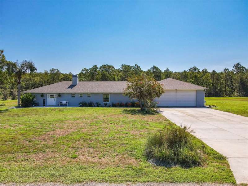 Under contract-accepting backup offers. This spectacular home sits on 5.73 acres and offers just under 2,500 sq. ft. of living space, featuring three bedrooms, three full baths, and a half bath. Inside, you'll find ceramic tile flooring throughout, spacious walk-in closets, and a cozy wood-burning fireplace in the living room. The home also includes a private office, an oversized laundry room with abundant storage, and a stunning primary suite complete with a large walk-in closet, a beautifully tiled shower with a rain shower head, dual vanities, and a linen closet. Completed numerous upgrades and remodeling projects between 2021 and 2025, including: New roof, EV charging station, exterior painting, new kitchen/cabinets/appliances, bathroom updates/new toilets-sinks-vanities, all new updated lighting through-out, new aluminum-fenced yard, enclosed lanai (29 x 14), Culligan whole-home chlorination system, new windows, new well drilled, new HVAC system, and new hot water tank. Septic pumped every 2 years, pest control done quarterly, and Ring security system with 4 external cameras included. Last but not least, an impressive 1,800 sq. ft. attached garage provides exceptional space for multiple vehicles, storage, or even a workshop. Complementing it is an oversized 30' x 80' driveway, offering ample room for parking.Life in this area comes with a rare perk, an aviation-inspired lifestyle right at your doorstep. At Seminole Lake Gliderport, one of the busiest soaring locations in the country, you can easily take part in gliding or simply enjoy the show. From your porch, watch as gliders launch energetically and float effortlessly across the sky. The Gliderport itself has facilities like a clubhouse, a small cafe, and a swimming pool that homeowners can potentially utilize. The area surrounding the Glider Port provides many opportunities for outdoor activities, including walking, hiking, and enjoying the natural environment. There's also easy access to Lake Louisa State Park for camping, hiking, fishing, and kayaking. Clermont is a suburb of Orlando with great access to major roadways, making commutes to downtown Orlando and attractions like Disney and Universal relatively easy. Downtown Tampa is just over an hour commute. Airports within an hour. Call today for your private tour!
