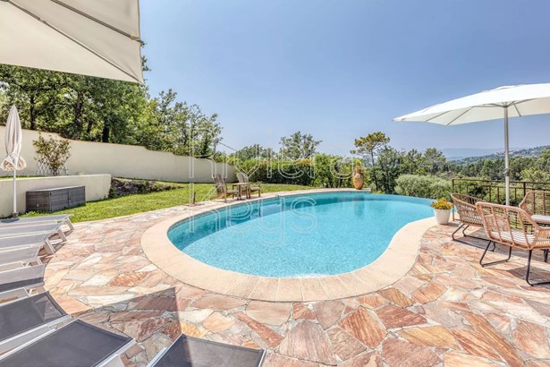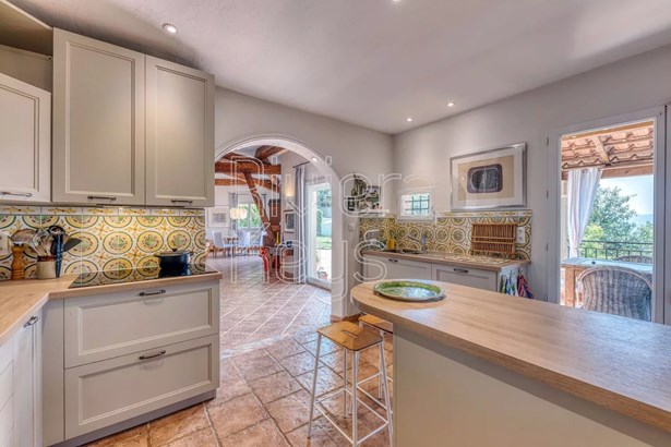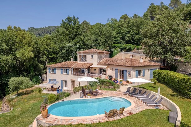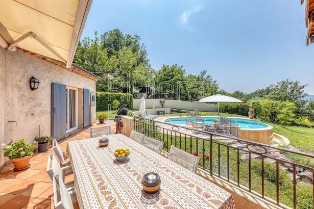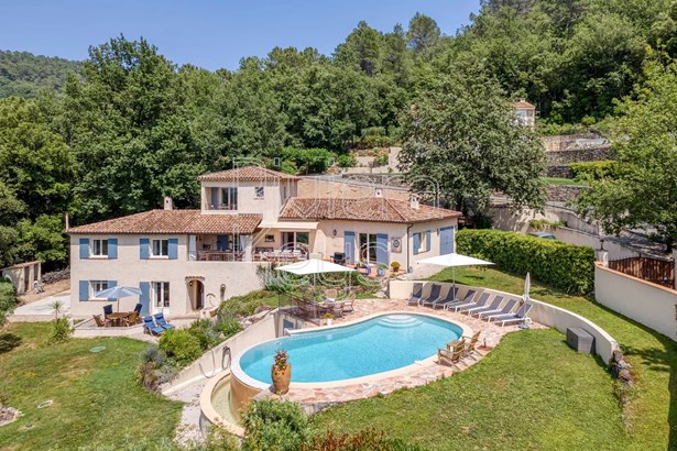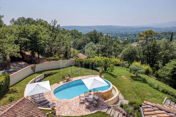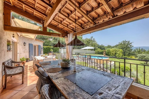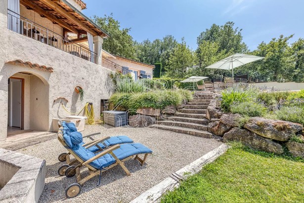 Elegance, solid craftsmanship, and harmony define this magnificent property. Located about a ten-minute walk from the charming village of Montauroux, the villa is surrounded by its delightful garden. The property, with a living area of 237 m², features a welcoming entrance hall, a spacious and bright living room with a fireplace, a dining room that opens onto the terrace, and an open-plan kitchen. There is also an office, a WC, a bathroom, and 3 bedrooms on the ground floor.On the upper floor, there is a bedroom that opens onto a covered terrace, along with a shower room and a WC. The lower floor includes an apartment with an entrance hall, a cellar, a fully equipped kitchen that connects to the dining area, and a small workshop. The apartment also offers 2 bedrooms, a shower room, a WC, and a lovely terrace.At the entrance to the property, there is a carport and space for parking up to four additional cars. The carpentry throughout the house is crafted from solid light oak of the highest quality. The 2,500 m² plot boasts beautiful landscaping, with roses, lavender, and olive trees enhancing the surroundings as they slope gently toward the pool area. The pool, measuring 10 x 5 meters, is surrounded by ample space for dining, swimming, and leisure. Adjacent to the pool, there is a large summer kitchen and a boules court.This exceptional property provides tranquility, relaxation, and harmony, offering an ideal setting for both intimate and larger gatherings.