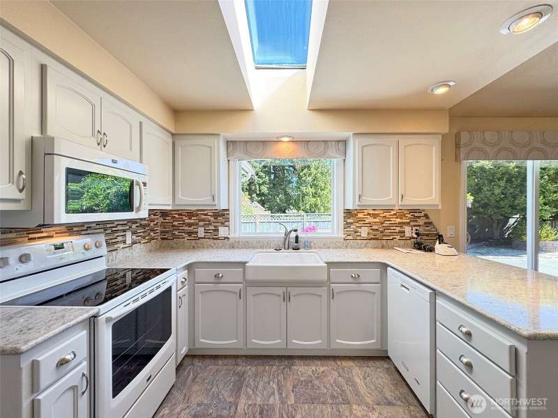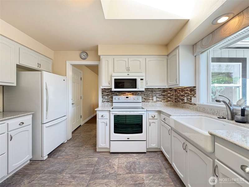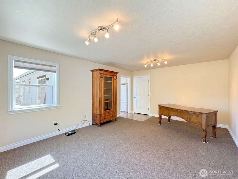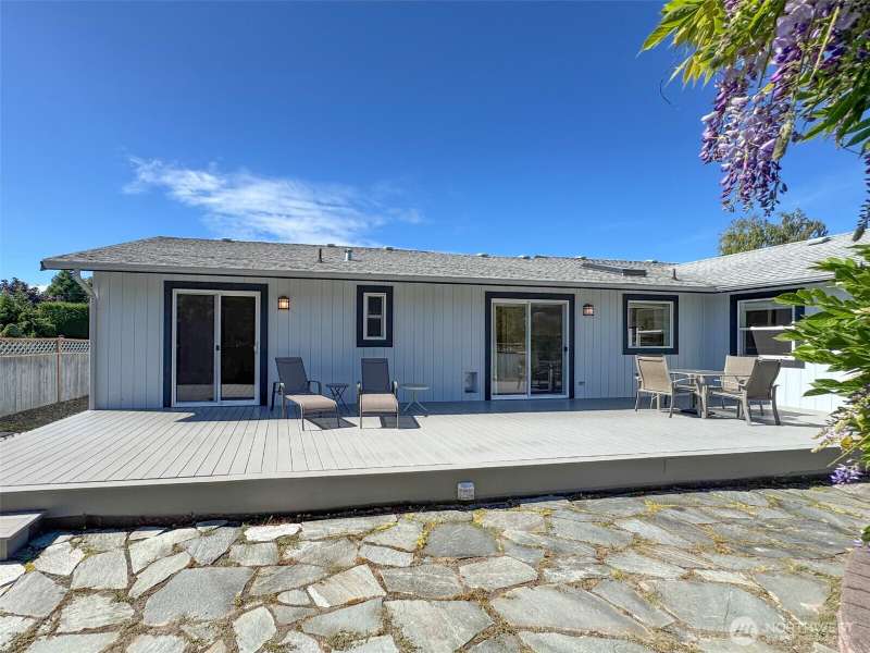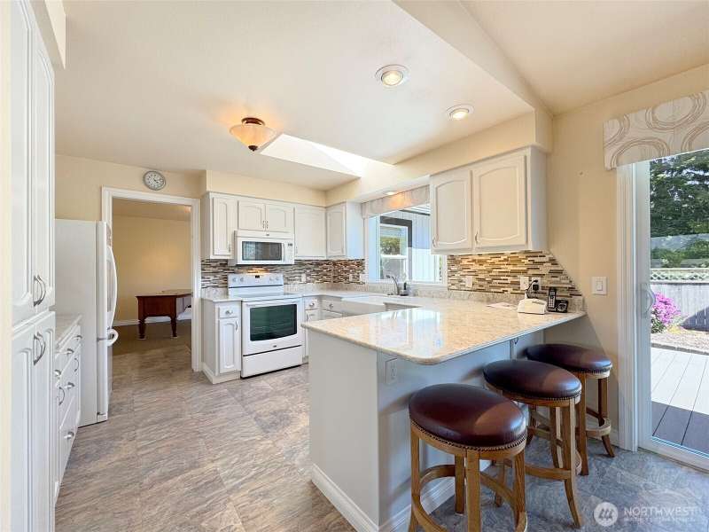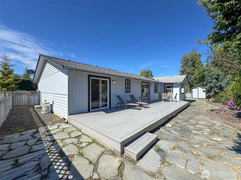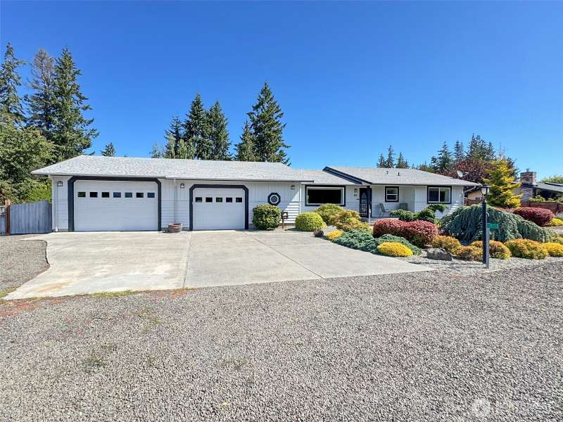 This well designed one level home is perfectly placed to enjoy partial, yet unblockable, views of the Olympic Mountains and the Sunland Golf Course's 7th hole fairway. Beautifully landscaped for low maintenance in both the front yard & in the fully fenced back yard. The oversized finished garage & HUGE adjacent shop with heat and A/C are perfect for hobbies, crafts, toys, or storage. The covered front porch welcomes you home to a vaulted ceiling living area with a cozy electric fireplace. Ample kitchen with granite countertops, a skylight, & plenty of cabinet space. Huge office/den with the primary & guest bedroom on the opposite side of the home. Enjoy sunny evenings on the back deck and take in all that Sunland & Sequim have to offer.