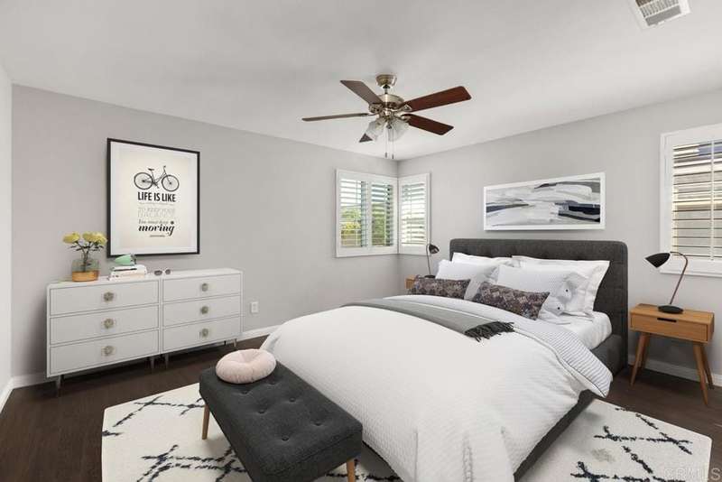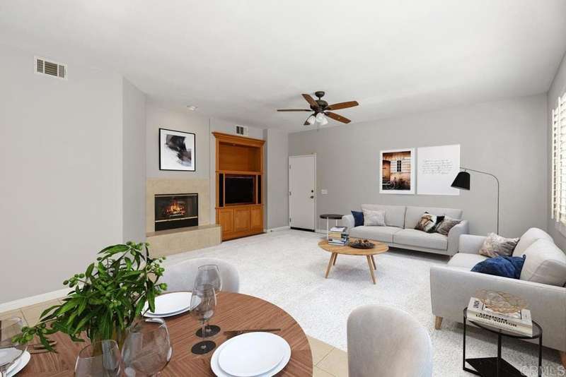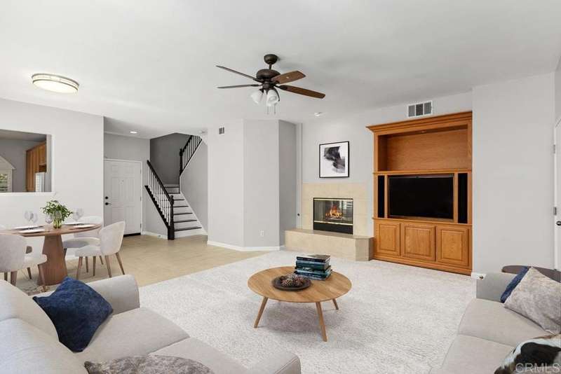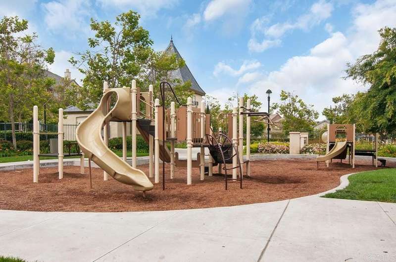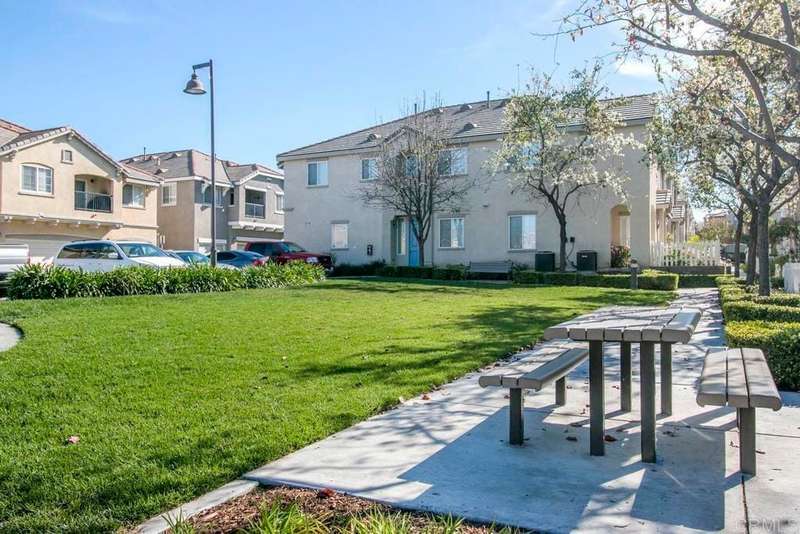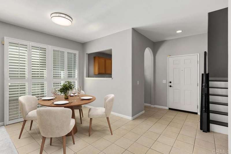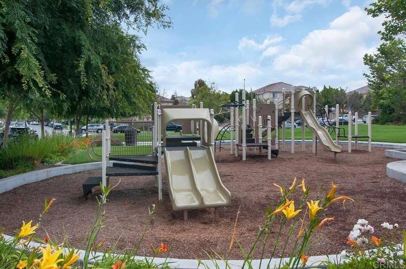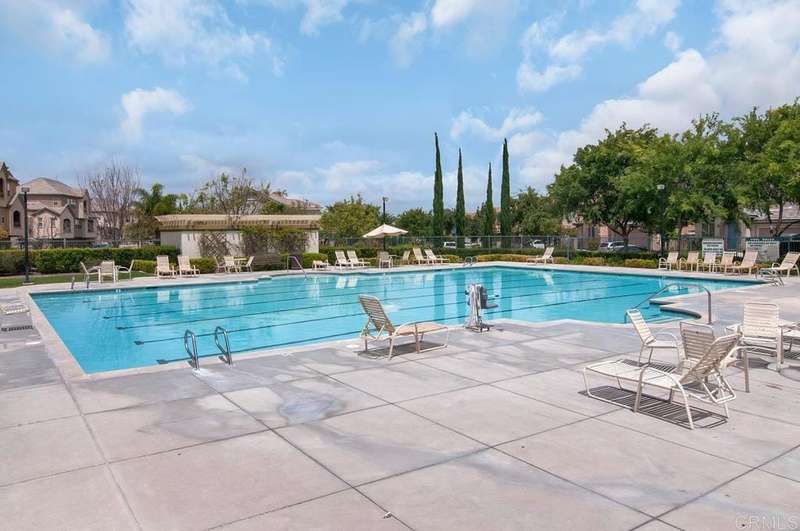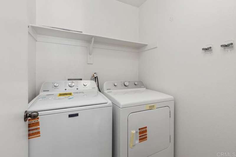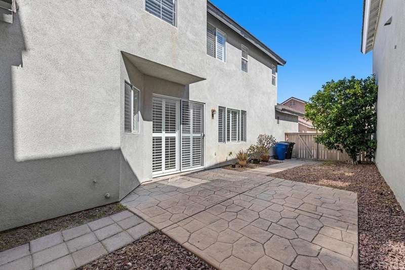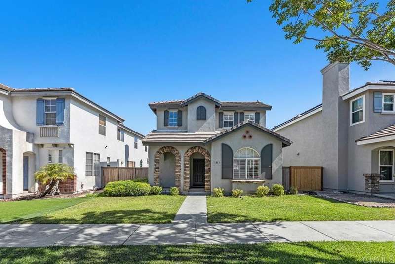 1433 Vallejo Mills is located in Hillsborough at Otay Ranch, and offers the comforts of a close-knit community highlighted with tree-lined streets, a community park with pool, playground & sand volleyball, and alley-loaded garages. The charming exterior of the house is clad in stone arches and window shutters and has a front porch overlooking a grassy lawn. The interior includes an extra-large kitchen with a newly-installed Frigidaire refrigerator, ample storage & cabinetry & faces out to the street. An open floor plan joins the entry foyer and staircase to the dining room and living room. The living room has a fireplace with a gas starter, a built-in wall entertainment cabinet, and direct access to the 2-car garage. The dining room is adjacent to the kitchen pass-through wall and has direct access through the sliding glass doors to the private backyard. At the base of the stairs is a guest bathroom. The second story houses all 3 bedrooms. The laundry room at the top of the stairs has a newly installed Maytag washer and Maytag dryer. Large primary bedroom with ensuite bath, and 2 additional bedrooms complete the floor. Hard surface wood flooring upstairs and on stairs, shutter window coverings throughout. Convenient access to the 125 tollway, Otay Ranch Town Center, and a myriad of outdoor activities at Otay Lake parks. Otay Ranch is a very attractive community, and 1433 Vallejo Mills is a great choice for your next home.