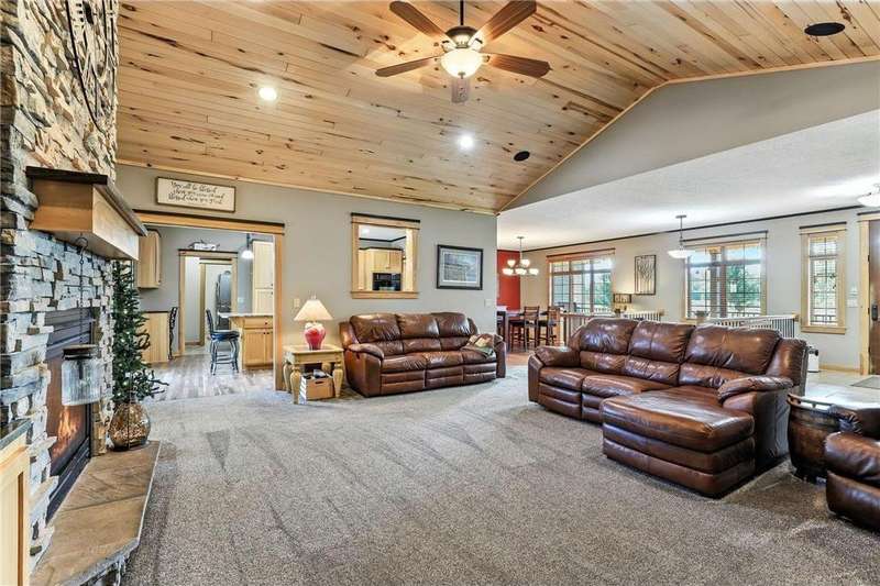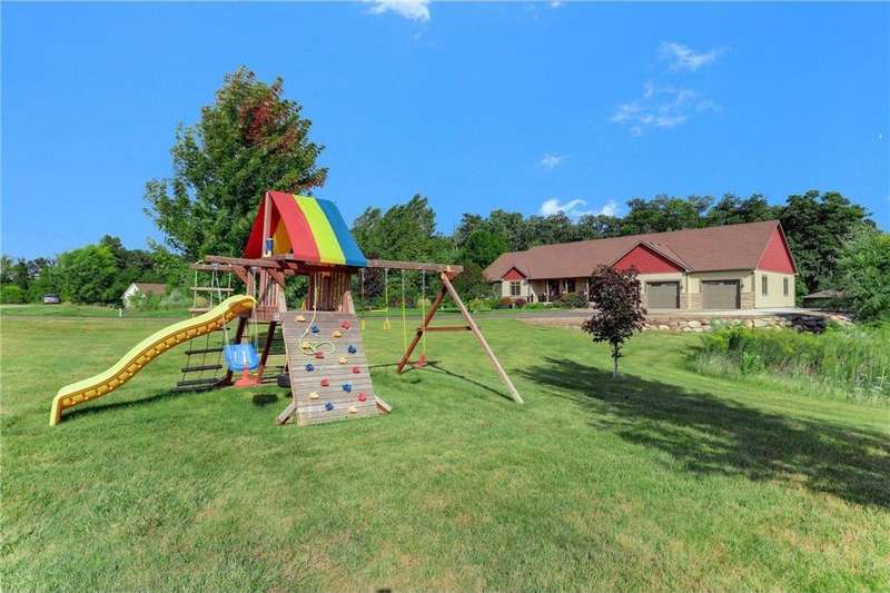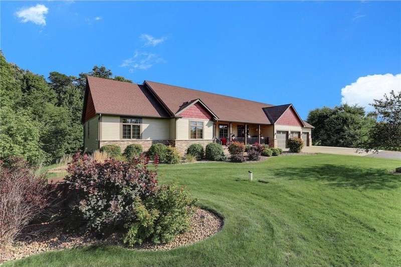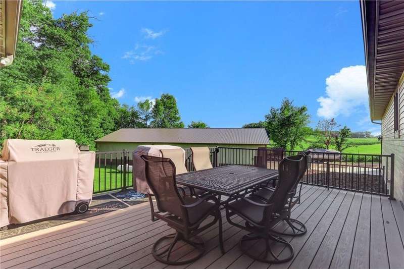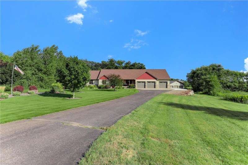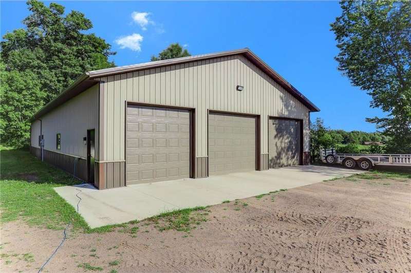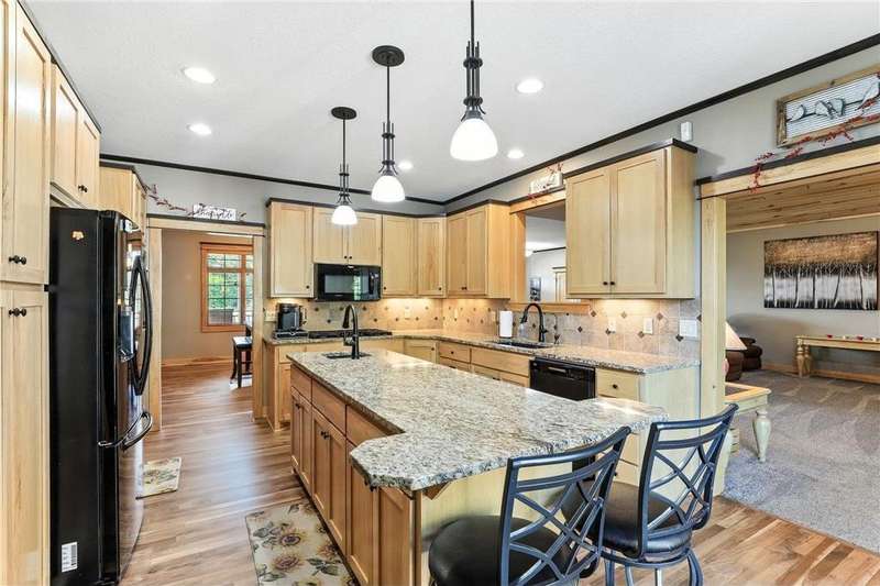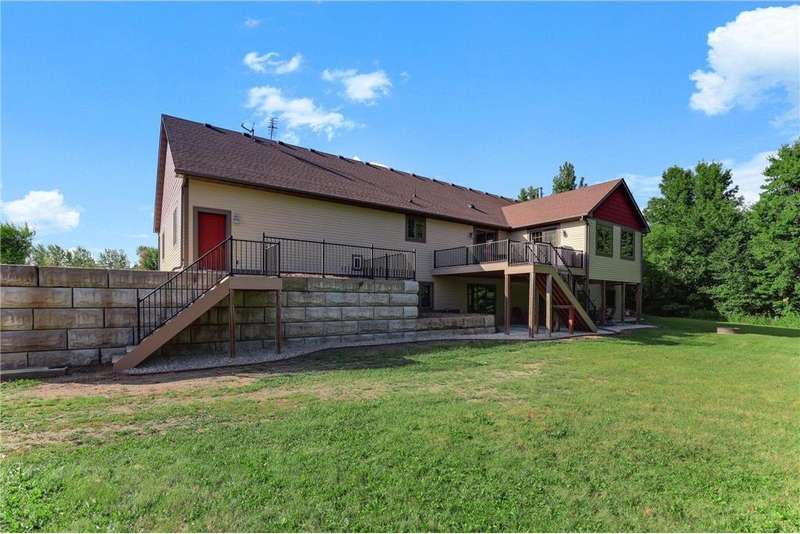 Custom Builder’s Own Home – 5 Acres of Country Living Close to Town! This stunning custom-built 5 bedroom, 4 bath walkout rambler showcases almost 5400 FSF and is packed with high-end finishes and thoughtful details you only find in a builder’s personal home. From the moment you step inside, you’ll appreciate the black walnut floors, hickory doors and cabinetry and basswood ceilings that showcase craftsmanship at its finest. The gourmet kitchen is a chef’s dream, featuring granite countertops, a large center island, double oven, tile backsplash, and under-cabinet lighting. Spacious bedrooms include closet organizers, while bathrooms shine with marble and gorgeous tilework. Additional highlights include a custom wet bar, built-ins throughout, a 4-season porch, maintenance-free deck, primary bedroom balcony, front porch, and concrete patio. Convenience abounds with washer/dryer on both levels, central vac, Kinetico water system, and off-peak geothermal heating/cooling. The oversized 3-car heated garage offers in-floor heat, a built-in dog kennel, and access to the lower level. Even more impressive is the 45x88 fully insulated and finished pole shed—half is heated and is also plumbed for in-floor heat. Set on over 5 acres, this property provides the perfect balance of quiet country living while being just minutes from Becker and all of it's amenities.