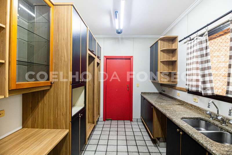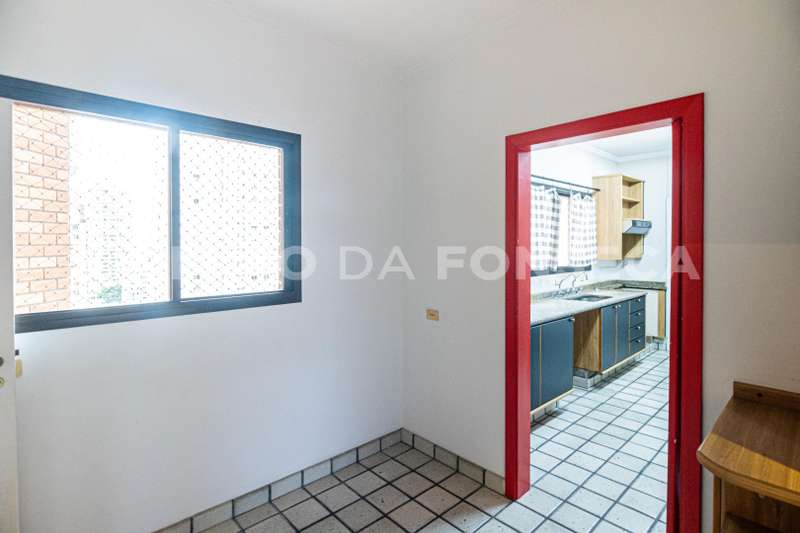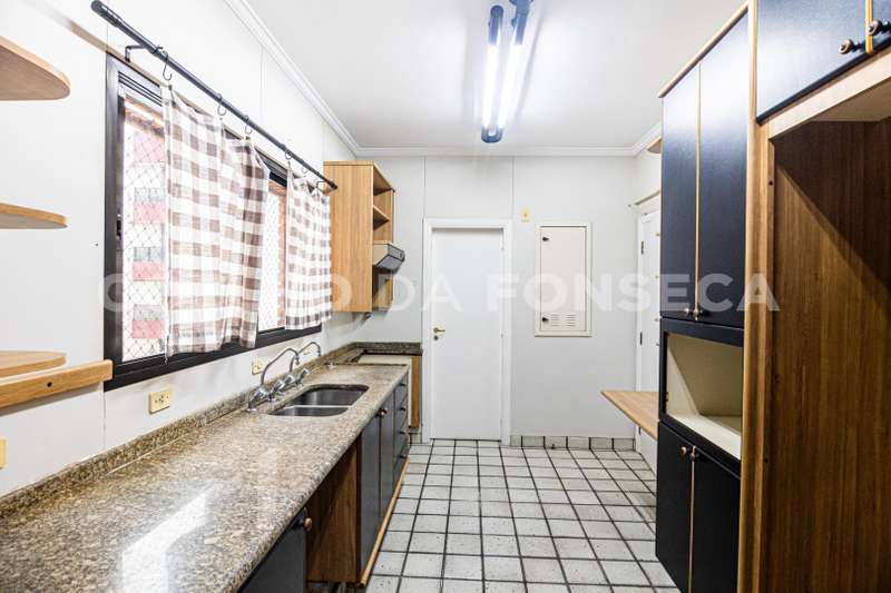 A cozinha, equipada com copa e despensa, é funcional e prática. Há também uma dependência completa para funcionários, garantindo praticidade e privacidade. Com cinco vagas de garagem, este apartamento oferece comodidade e segurança excepcionais para os moradores.