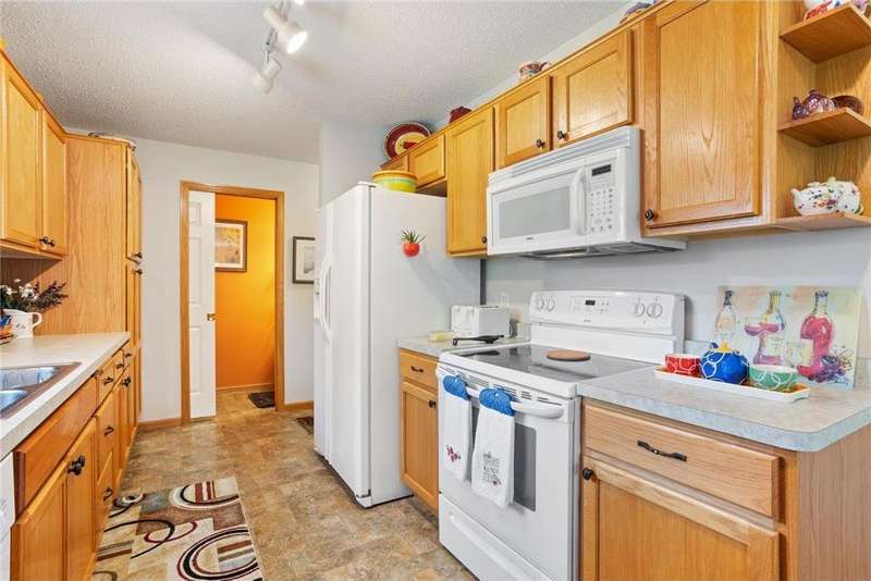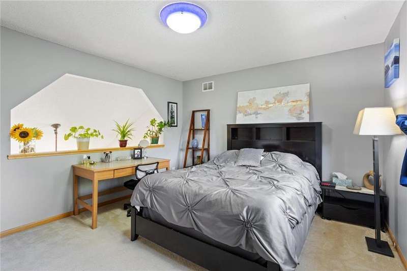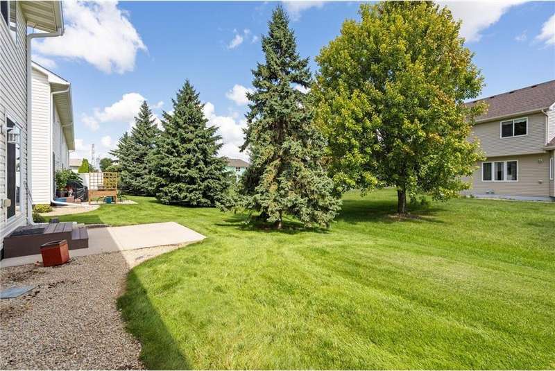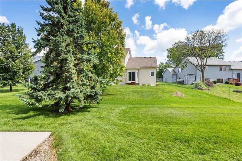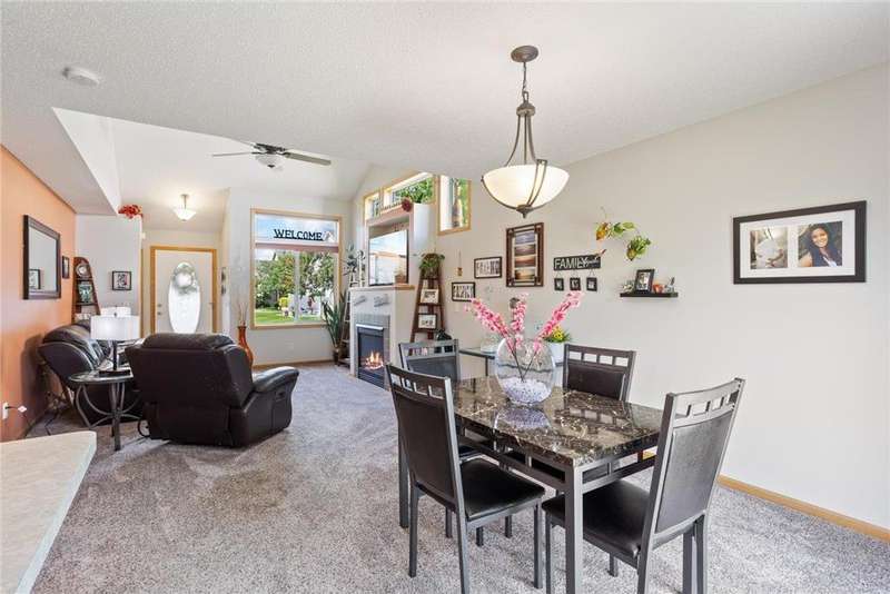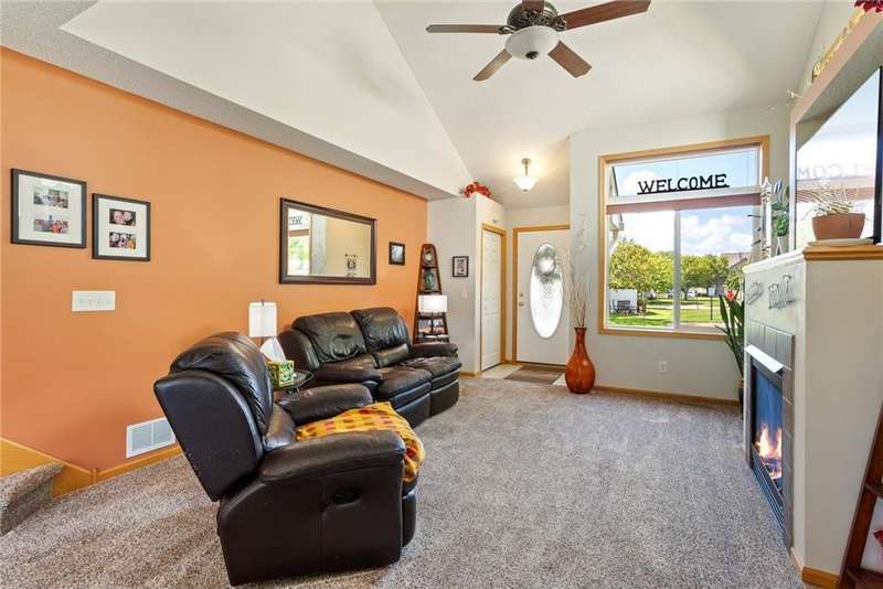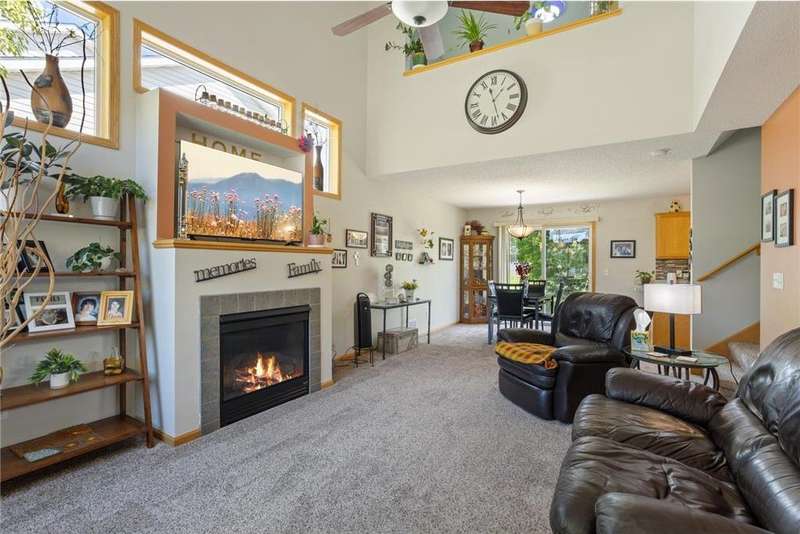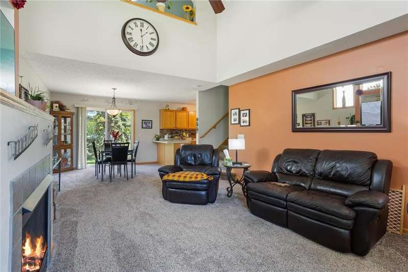 Beautiful end-unit townhome with a 2-story vaulted living room filled with natural light from walls of windows and anchored by a cozy gas fireplace. The spacious kitchen offers abundant cabinets and counter space, a tile backsplash, breakfast bar, and kitchen window, plus an informal dining area and convenient main-floor ½ bath. Upstairs you’ll find 3 bedrooms, including a primary suite with a large 5x8 walk-in closet. The 3rd bedroom can flex as an office or loft. The unfinished lower level provides an opportunity for future living space. Recent updates include newer roof, siding and gutters. Step outside to a private patio surrounded by mature pine trees for year-round privacy. A wonderful combination of space, light, and comfort!