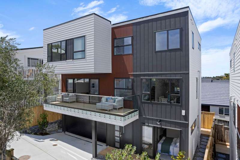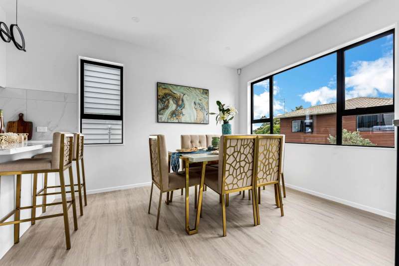 28A Dallinghoe Crescent is a stunning brand new residence in the heart of Milford that's perfectly designed for modern living and effortless style. Perfectly designed, this beautifully finished home gives you all the space you've been searching for, with four generous bedrooms, four and half bathrooms, three of which are masters with ensuite bathrooms, a study, two living areas, and a double internal access garage. Delivering flexibility and comfort for growing or extended families – whether you're hosting, relaxing, or working from home, there’s space for everyone to spread out. From the upper levels, you're treated to elevated views towards Takapuna, with a peek of Lake Pupuke – a daily reminder of how close you are to everything the North Shore has to offer. Zoned for some of Auckland's top schools – Milford Primary, Westlake Boys' and Girls' High Schools – and just moments to Milford Beach, Lake Pupuke, village shops, cafés, and coastal walks, this is the kind of location that ticks all the boxes for lifestyle and long-term value. Contemporary, low-maintenance, and move-in ready.