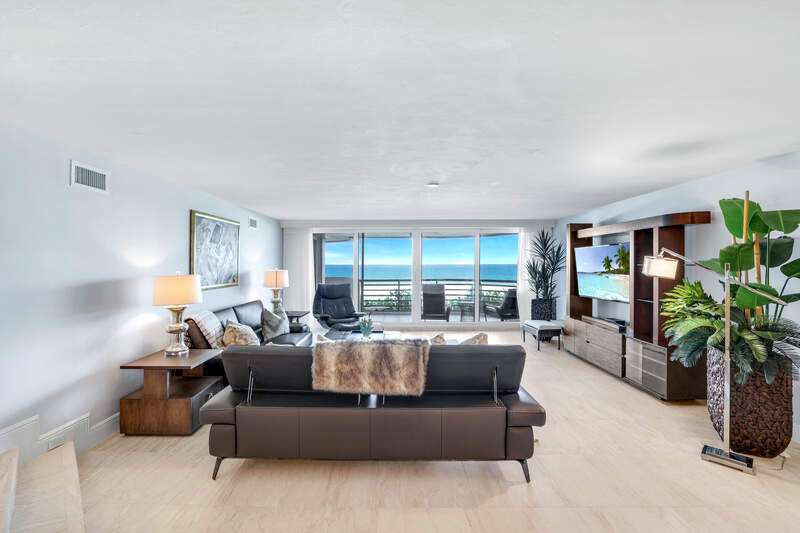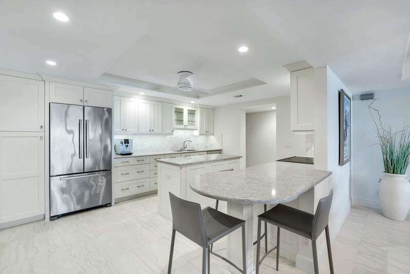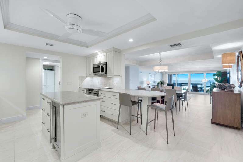 Experience luxurious beachfront living at Les Falls in this stunning front-facing residence. Enter through the elegant formal lobby and step into your private retreat overlooking the Gulf of Mexico, pristine white sand beaches, and Marco Island's world-famous sunsets-all enjoyed from a spacious balcony accessible from both the living room and primary suite. Completely remodeled, this 3-bedroom, 3-bath condominium offers an open floor plan with a sleek modern kitchen flowing effortlessly into the expansive living and dining areas, ideal for entertaining or relaxing by the sea. The primary suite features Gulf views, a generous walk-in closet, spa-like bath with walk-in shower and soaking tub, and direct balcony access. A spacious guest bedroom with its own en-suite bath provides comfort and privacy for family or visitors. At Les Falls, residents enjoy resort-style amenities including a beachfront pool and spa, fitness center, BBQ area, tennis courts, 2 pickleball courts, social room, extra storage, and covered parking-all with direct access to the beach just steps away. Perfectly situated on the island's desirable south end, you'll be just a short distance to beachfront dining at Stilts Bar & Grill and Sunset Grille, and just minutes from boutique shopping, mini golf, and everything Marco Island has to offer.