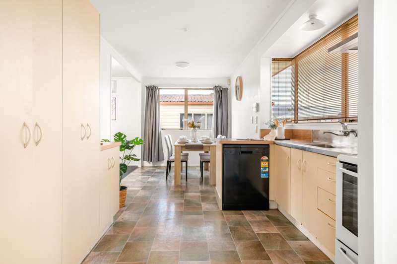 Tucked away at the back of a right of way, the home enjoys peace and privacy with generous off-street parking. Step inside and you'll find an open plan kitchen, dining and lounge that flow effortlessly to a large north-facing deck, capturing all-day sunshine-perfect for entertaining or unwinding.