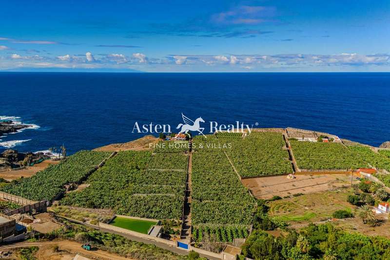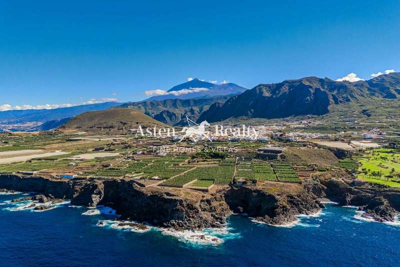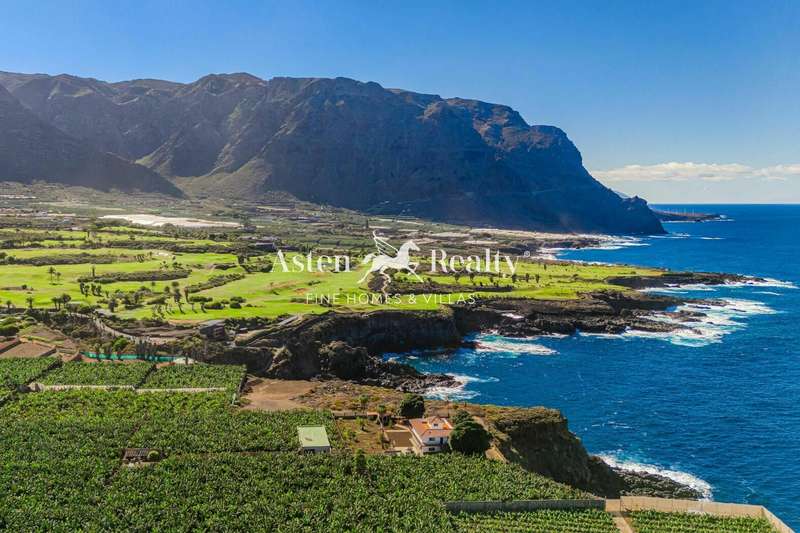 An exceptional property overlooking the ocean in the northwest of Tenerife, perched on cliffs with stunning views of the majestic Teide, surrounded by banana plantations and golf courses.