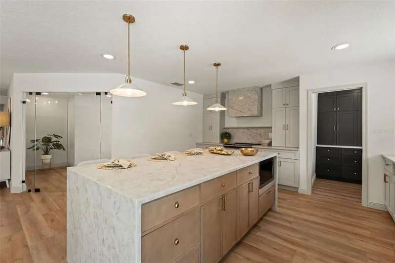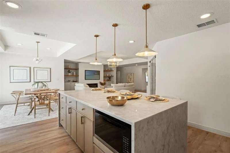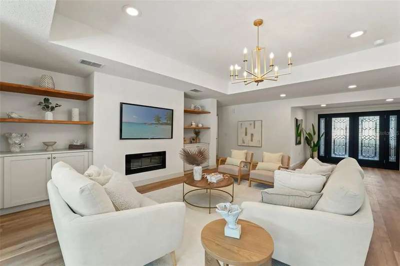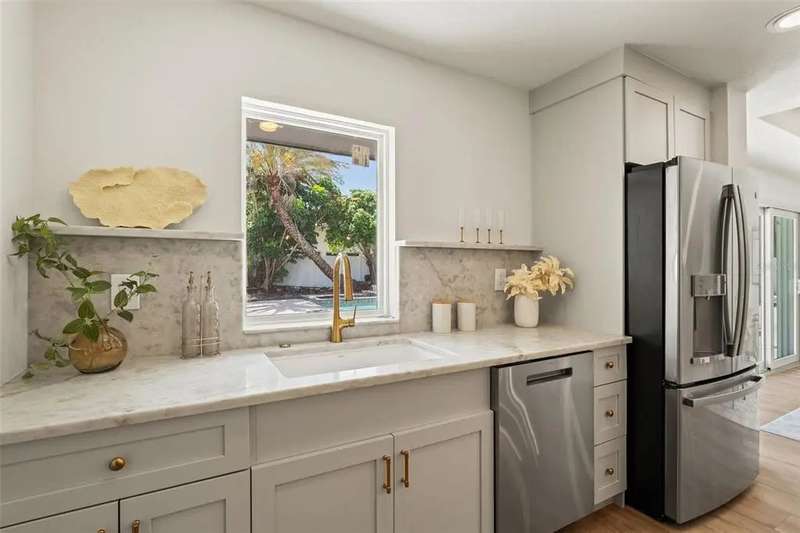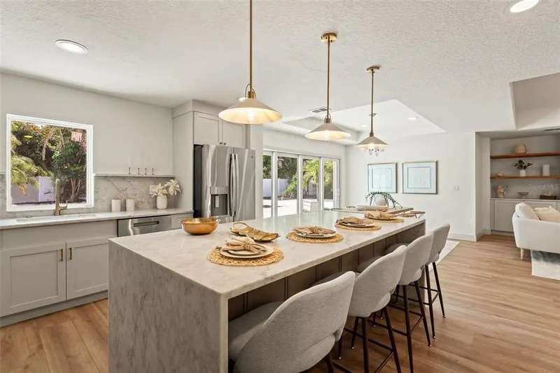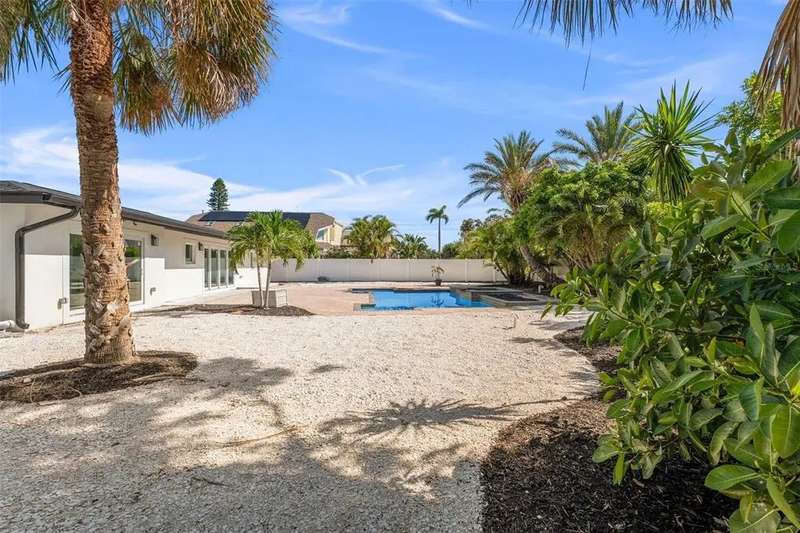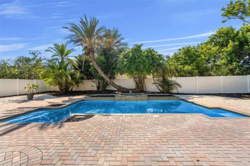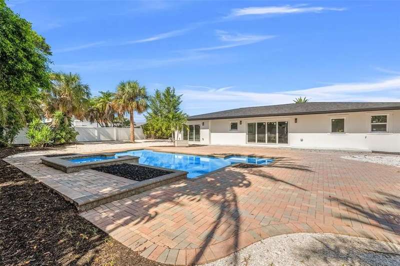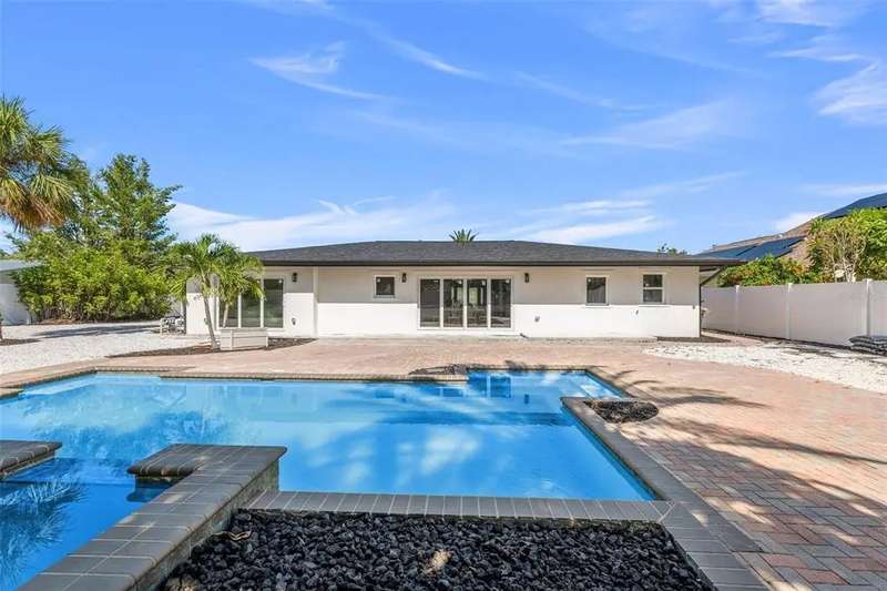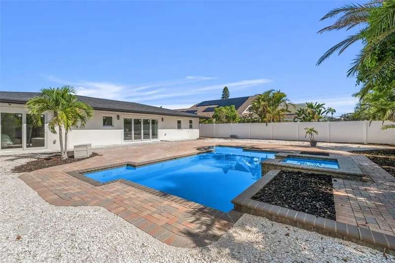 Imagine waking up to the gentle rustle of palm fronds, golden sunlight streaming through hurricane-impact glass, and the inviting sparkle of your private pool just steps away. Nestled within the exclusive Monte Cristo enclave of Tierra Verde, this completely reimagined 4-bedroom, 3-bathroom, 2700 square foot estate is more than a home—it’s your private coastal sanctuary. Set on a rare oversized one-third-acre lot, mornings begin with coffee on the poolside terrace, while evenings invite a glass of wine beneath a canopy of stars, the spa’s soothing bubbles dancing in rhythm with the Gulf breeze. A large circular driveway and elegant porte cochere welcome you home in style, framed by lush new landscaping, fresh stucco, and a flawless exterior paint finish—setting the tone for the meticulous craftsmanship found throughout. Inside, every detail whispers brand new. Raised ceilings in the living and dining areas create an airy sophistication, while an open floor plan flows seamlessly into the home’s showpiece kitchen. Here, Taj Mahal quartz countertops cascade over a stunning waterfall island, complemented by custom cabinetry, a wrapped quartz hood vent, and a walk-in pantry designed for effortless entertaining. The living area centers around a dramatic TV wall with custom storage, floating shelves, and a cozy fireplace—perfect for gatherings large or small. A brand-new roof crowns the home, while all-new hurricane-impact windows, sliders, and doors provide peace of mind and timeless style. Every surface has been renewed, with all-new drywall, electrical, and plumbing. A new vinyl privacy fence encloses the backyard oasis, where new sod and a full irrigation system keep the grounds lush year-round. The spacious master suite is a retreat unto itself, with private pool access, dual walk-in closets, and a spa-like bath. A dedicated home office—complete with glass double doors and private backyard access—offers a serene space to work or study. Additional enhancements include a brand-new HVAC system, water heater and garage door. The addition of a brand new mudroom with custom cabinetry and laundry allows for modern comfort and storage. Beyond beauty, this home offers unmatched security and resilience: it has never flooded and sustained no hurricane damage during last year’s two major storms. In Monte Cristo, where modern luxury meets the florida coastal dream, you’re just minutes from award-winning beaches, marinas, fine dining, and the vibrant coastal lifestyle that makes Tierra Verde one of Florida’s most desirable destinations. Yet with a home like this, you may find the best part of Florida is already waiting in your own backyard.