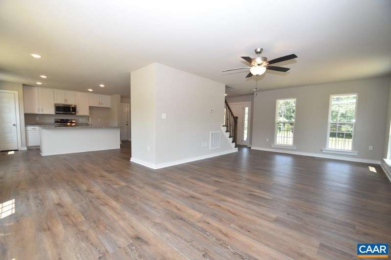 LOT HAS BEEN CLEARED! The Ross model with upgrades galore 5 minutes to Zion Crossroads! The welcoming front porch boasts a French door with 3/4 glass, Iron porch railings, extra LED lights with dimmers, 12” board and bat siding, black gutters and windows, craftsman style shutters, stained columns, dormer, and a side load garage with opener. Interior upgrades include beautiful laminate flooring throughout the entire 1st floor, great room with fireplace, extra windows and LED lights, dining room with craftsman trim package, gourmet kitchen layout with oversized window, stainless appliances, Quartz counters, island with overhang and pendant lights, 36" Tier 2 cabinets and pantry with crown molding, breakfast nook leading to the 10x14 deck. The oak stairs lead you up to the primary with ceiling fan, extra window, leading to the ensuite bath with a transom window over the 5' tile shower, and double bowl vanity. LVP flooring in full baths and wave rectangular sinks. Adult height toilets in primary and half bath, LED overhead lights in 3 bedrooms, pull down attic stairs for storage and convenient laundry finish out the second floor. No WATER or SEWER Bills. Photos are similar to. Spring Completion. Ask about Seller Paid Closing Costs.