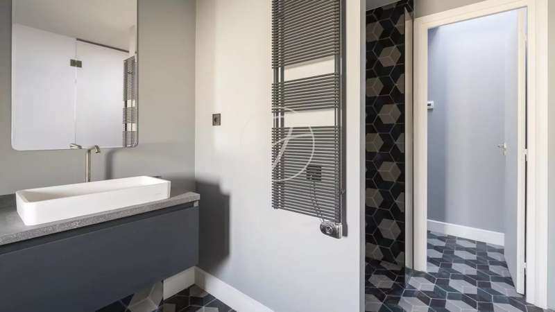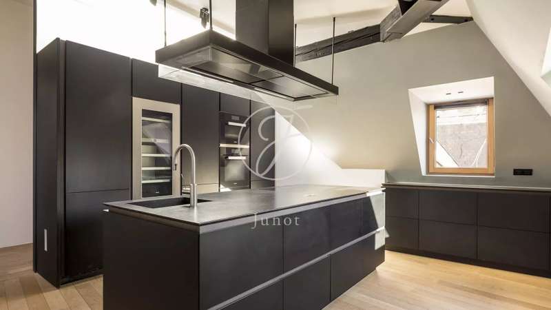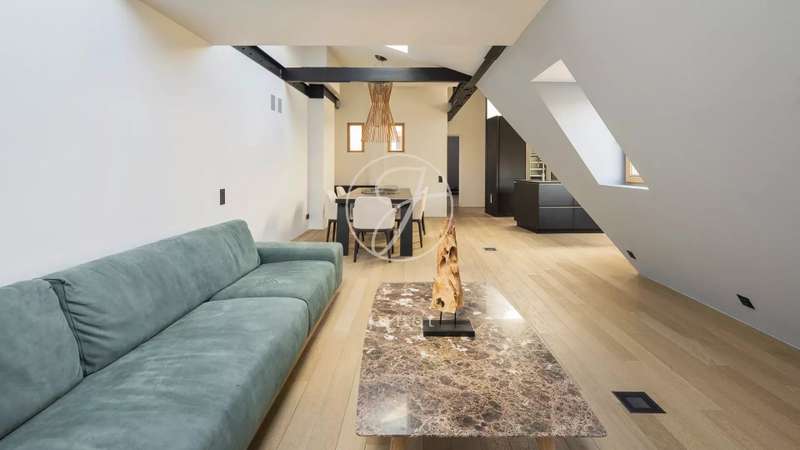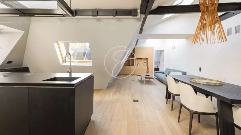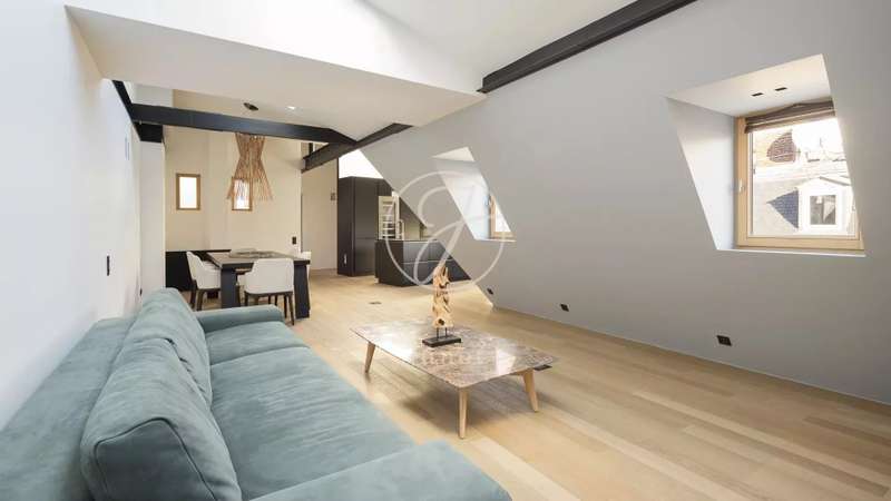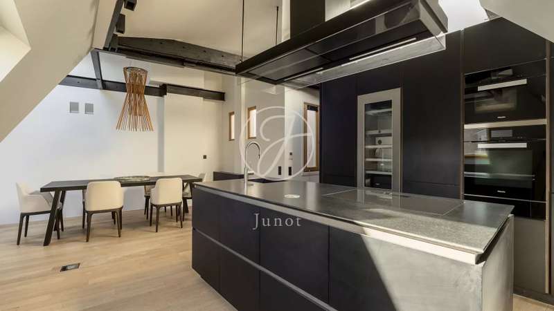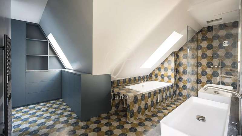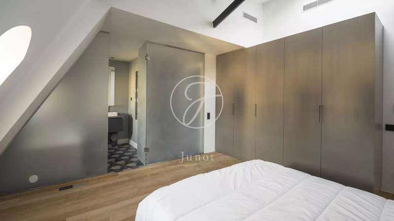 In the heart of the Golden Triangle, on the sixth and top floor of a beautiful Haussmann building with janitor, superb apartment of 137.16sqm loi Carrez and 176.71sqm on the ground, entirely renovated with taste by an architect. Quiet, it boasts spacious accommodation. It comprises an entrance hall, a double reception room with a fully-equipped open kitchen, three suites with their own bathroom, shower and toilet, and a guest toilet. Reversible air conditioning throughout. Plenty of storage space. Highly optimized layout with no loss of space. A cellar completes this offer.