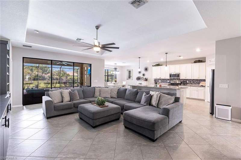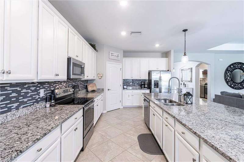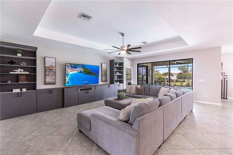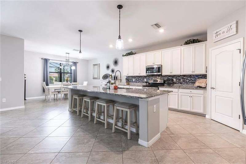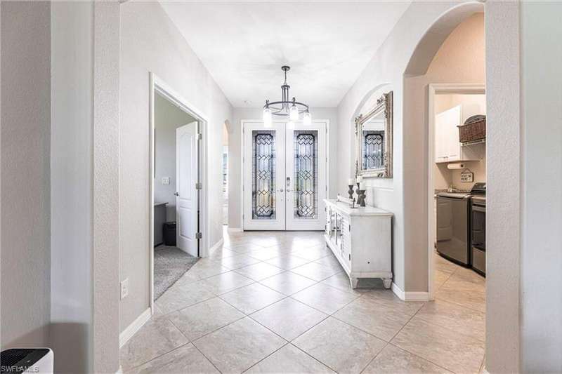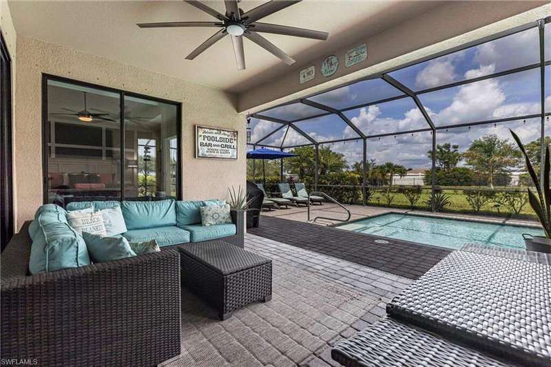 GREAT BUYING OPPORTUNITY!! STUNNING POOL RESIDENCE W/ FULLY FENCED-IN BACKYARD (IDEAL FOR DOGS) AND GORGEOUS LAKE + NATURE VIEWS! BEAUTIFUL SUMMERVILLE MODEL BY LENNAR W/3-CAR GARAGE AND A LONG LIST OF UPGRADES INCL. NEW A/C (2024)! Furniture is negotiable. This gem is ready for you to move-in + enjoy your very own piece of SW Florida paradise! Welcome to this well-maintained, modern smart home, feat. an inviting foyer w/double glass insert entry doors for lots of natural light, 3 bedrooms, 3 bathrooms, an extra den/office, a 3-car garage and a long paver driveway, located on an oversized lake view lot in the popular Portico community in Fort Myers! GREAT BUYING OPPORTUNITY, builder is sold out of 3-car garage homes in Portico! OPEN FLOOR PLAN, perfect for family living and entertaining. The heart of the home is an expansive great room w/tall glass sliding doors, leading to the covered lanai area. The living room w tray ceiling seamlessly connects with the spacious formal dining area and the gourmet kitchen, which features white cabinets, granite countertops, a large island, upgraded stainless-steel appliances + a walk-in pantry. The luxurious owner's suite has tray ceiling, sliding doors for direct lanai access, two large walk-in closets and an ensuite bathroom w/dual vanities, soaking tub and walk-in shower. Two additional bedrooms, each with own private bathroom, are generously sized, offering flexibility for guests, or a hobby room. Especially if you're working from home, you will love the separate den w/French Doors. A laundry room w/sink is also located inside the residence, for your convenience. Outdoor living is a delight in this home, with a spacious covered lanai area that overlooks the extended, fully screened-in pool deck and your beautiful, HEATED POOL! Enjoy magic sunrises and swimming + splashing fun all year round in your new private outdoor oasis! This amazing property has MANY FURTHER VALUABLE UPGRADES, which are YOUR GAIN! Those Upgrades include a professionally installed aluminum fence all around the backyard, custom closet systems throughout, NEW A/C (2024), NEW washer + dryer, NEW dishwasher, a custom entertainment wall/center in the living room, upgraded carpet in bedrooms + den, upgraded interior paint, upscale light fixtures + multiple designer ceiling fans w/lights (incl. lanai), garage w/epoxy floor + built-in storage, additional landscaping + more. Start packing and get ready to enjoy a truly laid-back lifestyle in your new pool home in sunny SW Florida! NO FLOOD INSURANCE REQUIRED! PORTICO is a highly sought-after access-controlled community w/Low HOA fees. Residents enjoy resort-style amenities, including a clubhouse, community pool, gym, yoga/exercise room, tennis, pickleball, basketball + play area. Pets, Fences & LSVs permitted! Great location, short drive to I-75, shopping, dining & more!