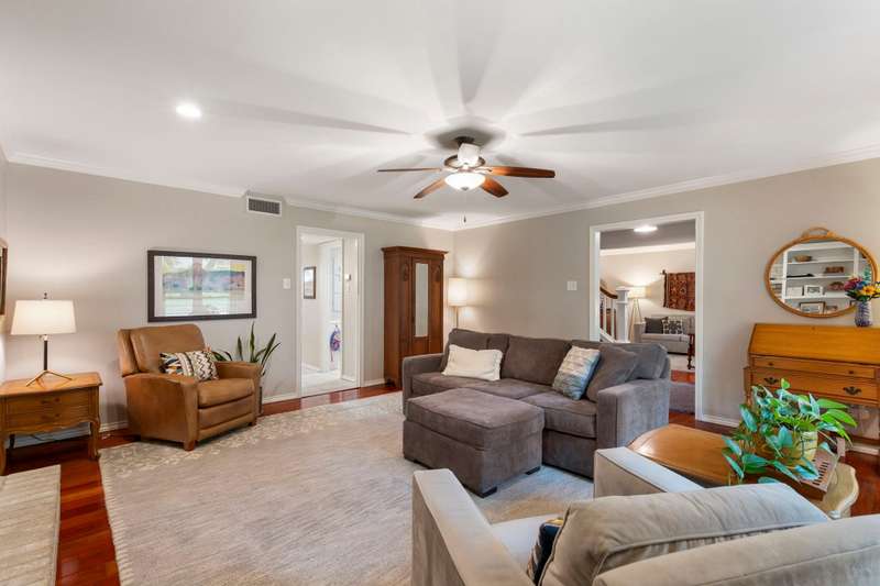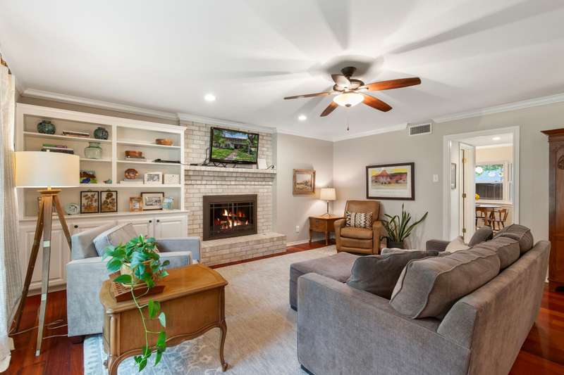 This charming home has undeniable curb appeal with two mature red oaks providing shade in the summer and gorgeous color when the leaves turn. The inviting covered front porch is the perfect spot to enjoy your morning coffee. Inside, the first floor is designed for entertaining with two spacious living rooms, a formal dining room, and an open kitchen with breakfast nook, all flowing together seamlessly, along with a convenient half bath. The updated kitchen features granite countertops, stainless steel appliances including a gas range and oven, a farmhouse sink, walk-in pantry with built-ins, and a mudroom hanging area. Upstairs, youll find four generously sized bedrooms, two full bathrooms, a laundry room, and a versatile loft area perfect for a desk or play area. Step outside into the stunning backyardhuge oak trees and blooming crepe myrtles create a natural canopy, while the newly installed TREX decking offers a low-maintenance outdoor entertaining space. A storage building adds extra functionality. Beyond its beauty, over $150k in major improvements are noted throughout including a new roof-2016, replacement of all cast iron plumbing with PVC, oversized gutters with custom leaf covers, energy-efficient windows, two newer HVAC systems with new ductwork, ceiling fans, LED recessed lighting, new electrical panel, and additional decorative fixtures. Ideally located with quick access to highways 75 and 635, as well as shopping, dining, and everyday conveniences, this lovingly maintained home combines modern updates, character, and comfort in one truly exceptional package.
