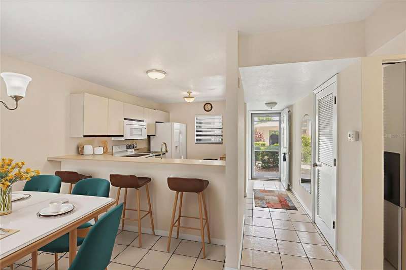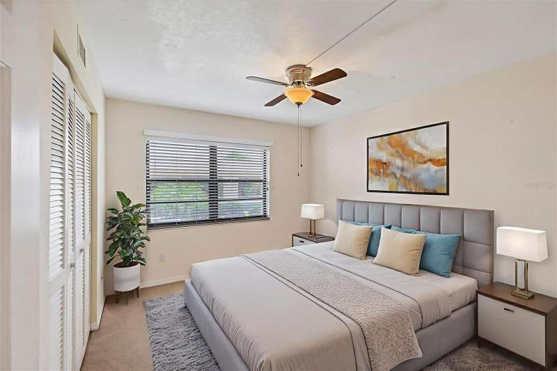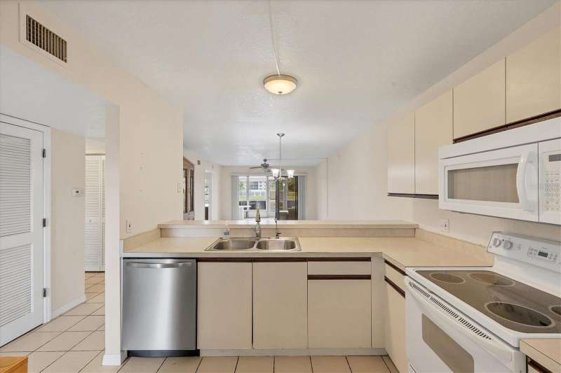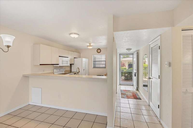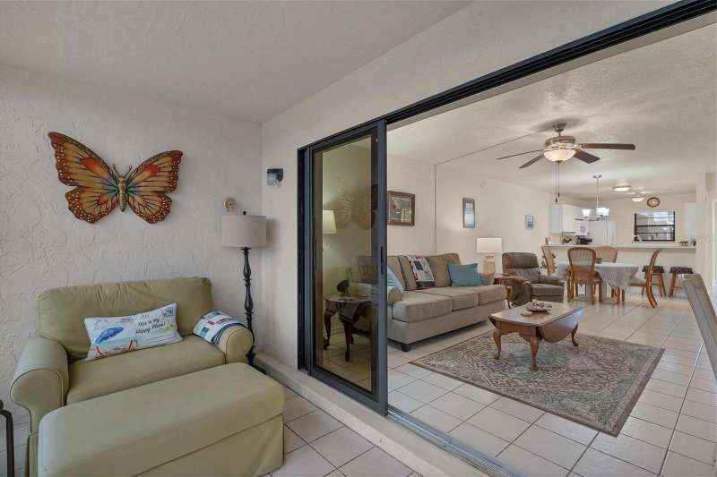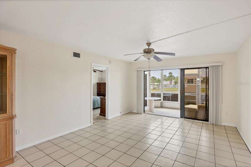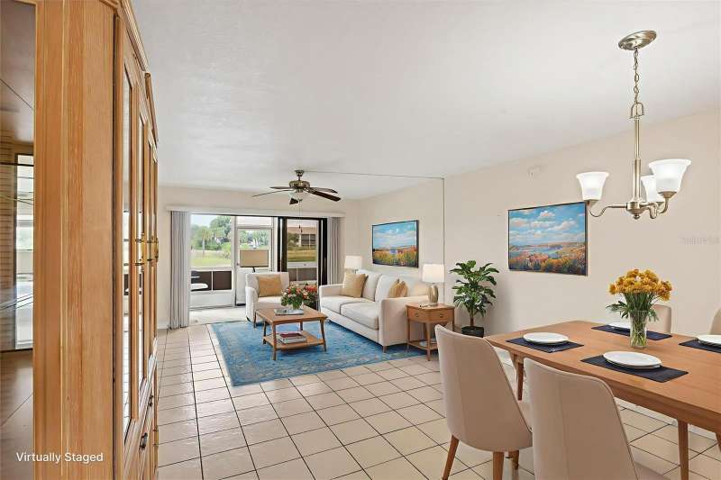One or more photo(s) has been virtually staged. FIRST FLOOR 2 BEDROOM / 2 BATHROOM condominium with CARPORT, WATERVIEW & COMMUNITY POOL! Find your “Happy Place” in your screened-in patio with access to the back yard, and views of the lake. The patio can be used as a Florida Room, as it has plexi-panels to keep the cold and rain out when you need to, but then open them up for the sunshine and the breeze! Your front entry has a lovely all-season door, letting the light in and welcoming your guests. The kitchen and breakfast bar overlook the dining and living areas. Triple sliding glass doors open you to the covered, screened patio, that has access to the master suite as well. The master suite boasts a 6x6 walk-in closet, large single vanity, and private water closet with walk-in shower. Both bedrooms are good size, easily fitting a king size bed. You have tile flooring in the living room, kitchen, dining area, bathrooms and laundry room / closet, and carpeting in the bedrooms. This unit offers an abundance of closet space between the bedrooms, laundry room, linen closet in hallway and extra closet in the front hallway. This home is located on the FIRST FLOOR (ground-level) of a 3-floor building (with elevator), with your own covered carport just steps away. Included in your modest association fee is insurances, exterior maintenance and grounds, water, trash, sewer, and guaranteed fun at the large, heated community pool, tennis courts, shuffleboard and other social functions. The community is quiet and sits just on the outskirts of town yet close to stores & restaurants, and a short ride to the beach and golf and Spring Training baseball! Bring your toothbrush and bathing suit and move right in! Call for a showing today!