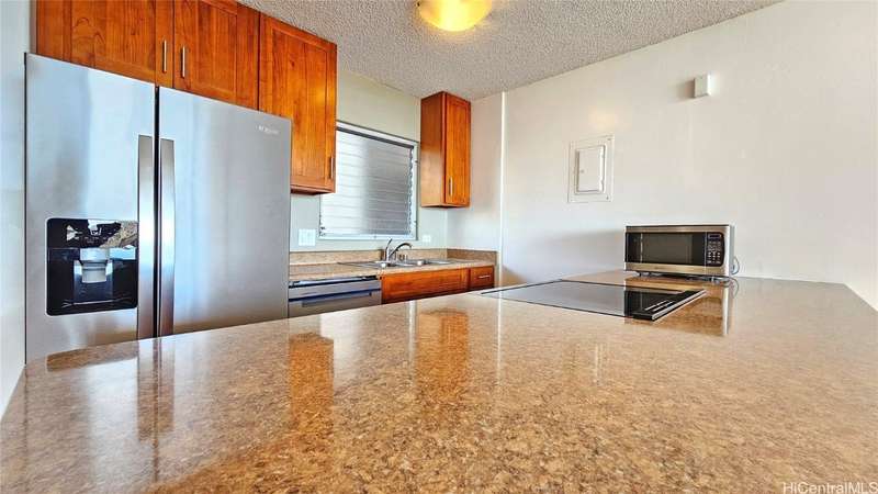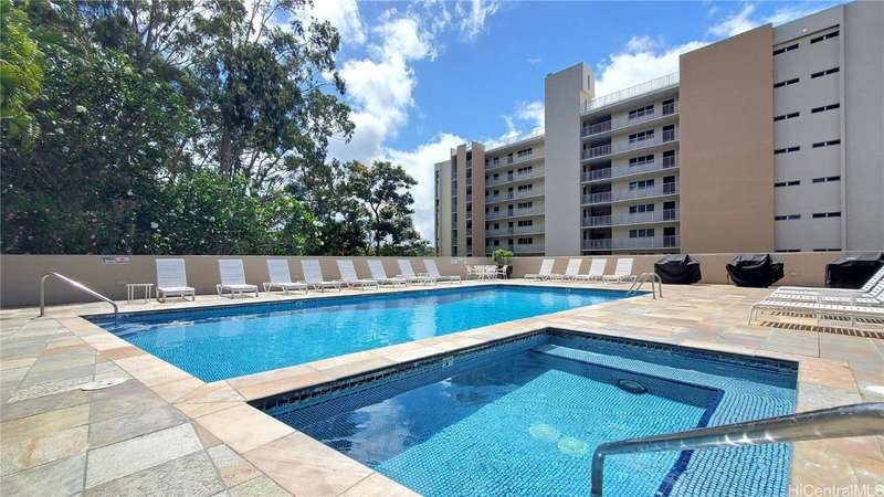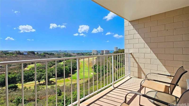 Here's your opportunity to own in highly desirable Colonnade on the Greens with great security, excellent amenities, and beautiful golf course and Pearl Harbor views. This cool, quiet, and spacious 2-bedroom unit has a large, usable lanai, an open kitchen, and the convenience of two full baths. New flooring, range/oven, refrigerator, and dishwasher. Enjoy the benefits of having TWO parking stalls, one of which is on the same level as your unit, so there's no need for stairs or elevators for this one stall. The second stall is covered and is also conveniently located. The long list of amenities includes tennis, pickleball, and racquetball courts, pool, fitness center, sauna, playground, driving range, putting green, barbecue and basketball areas, party room with ping pong, billiards, and dart board, library, and storage locker. There's something for everyone. Best of all is the great location, convenient to everything you need--shopping, dining, entertainment, hospital, schools, bus stops, freeway accesses. It's got everything you could want...and more!