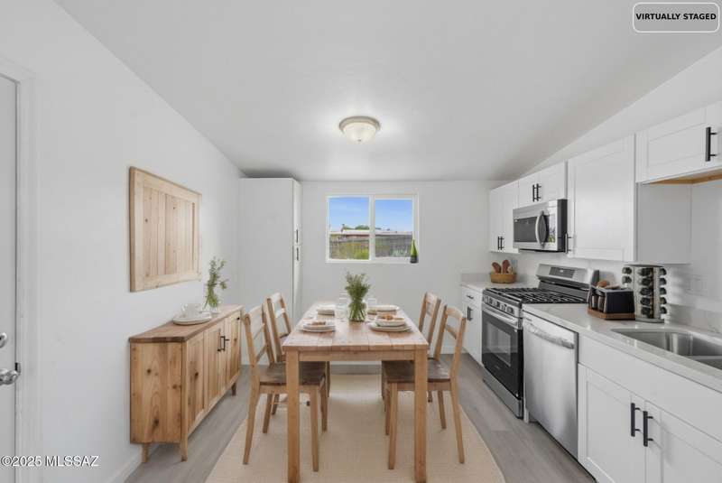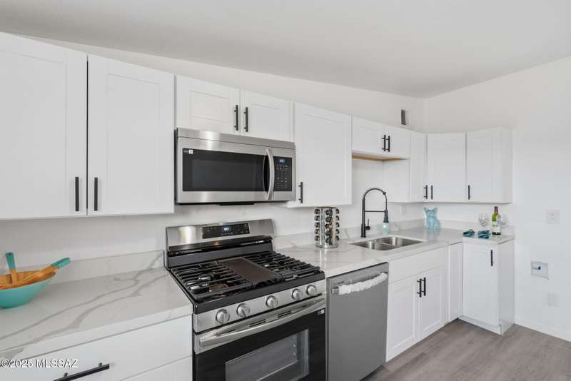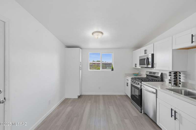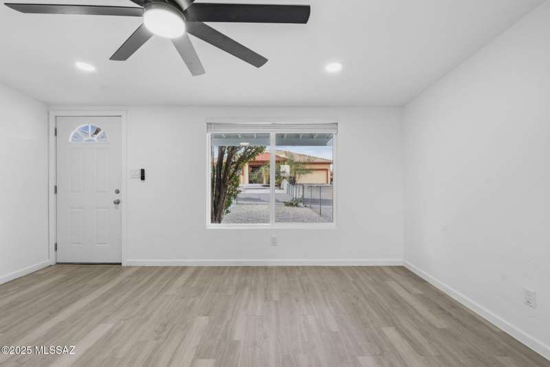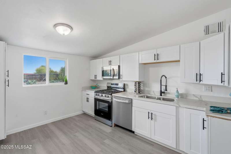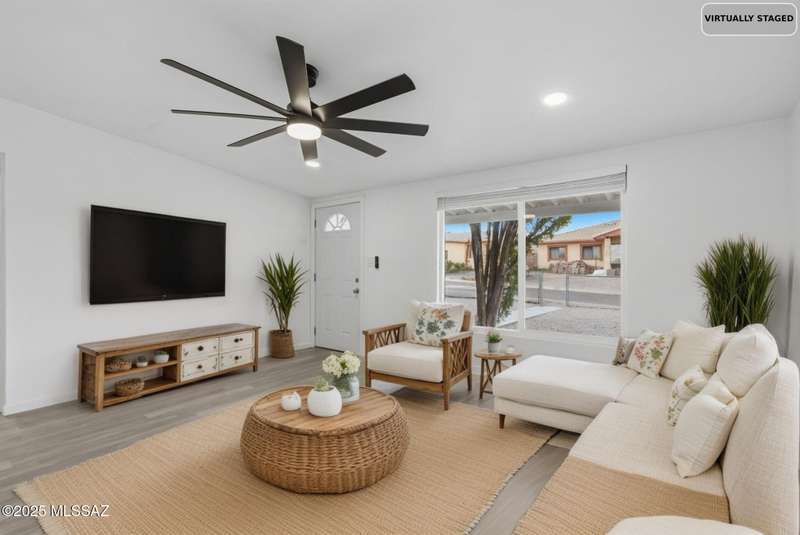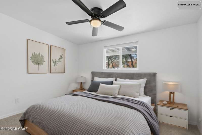 Fully Remodeled & Move-In Ready Near Downtown Tucson! Welcome to this beautifully updated 3-bedroom, 1-bath home situated on nearly a quarter-acre lot with no HOA offering space, privacy, and convenience just minutes from downtown Tucson. Step inside to discover a modern remodel from top to bottom, featuring a brand-new flat roof, new HVAC system, and dual-paned windows for year-round comfort. The stylish kitchen boasts quartz countertops, new cabinetry, and updated lighting and sink fixtures. Enjoy a completely refreshed bathroom with a custom tile-surround shower, and relax in the spacious living areas with new vinyl flooring and plush carpeted bedrooms. Fresh interior and exterior paint, modern ceiling fans, and thoughtful upgrades throughout make this home feel brand new. The large