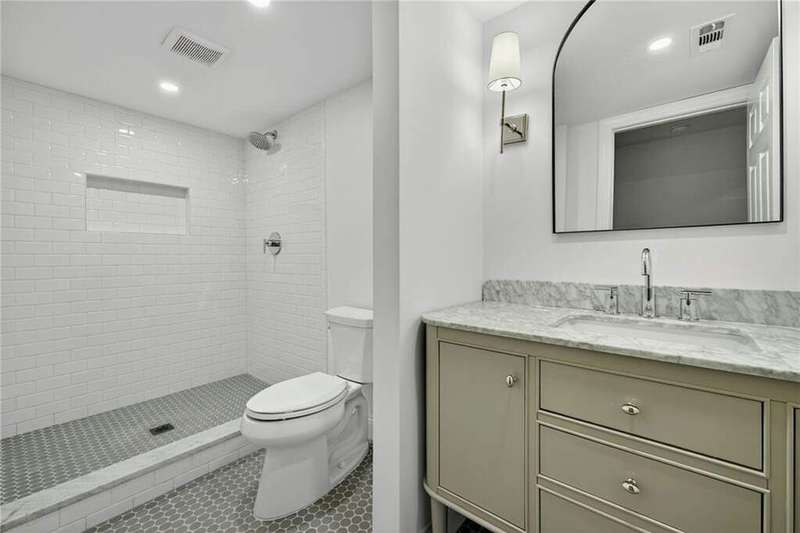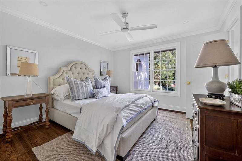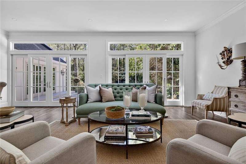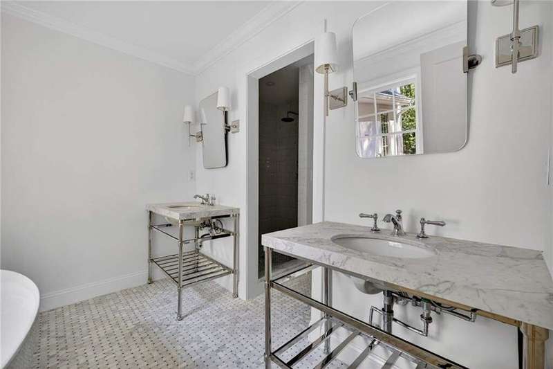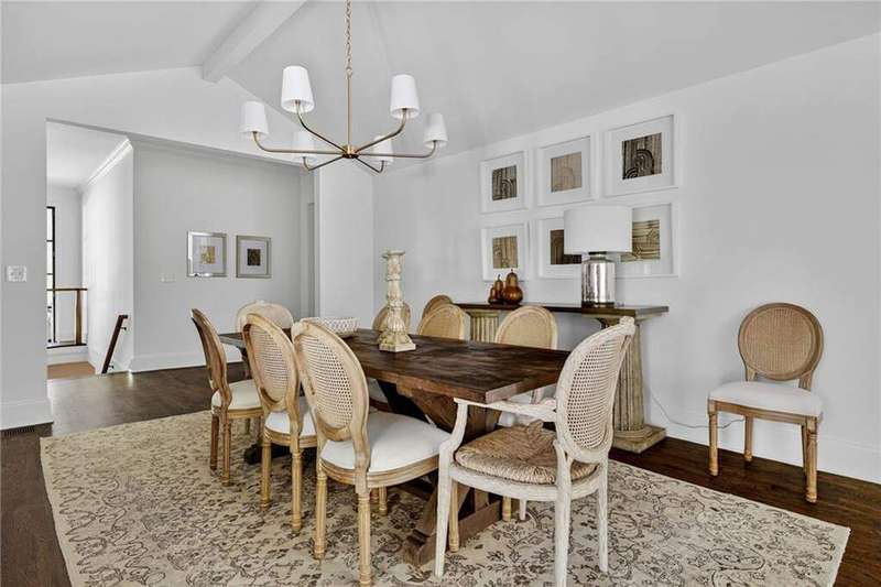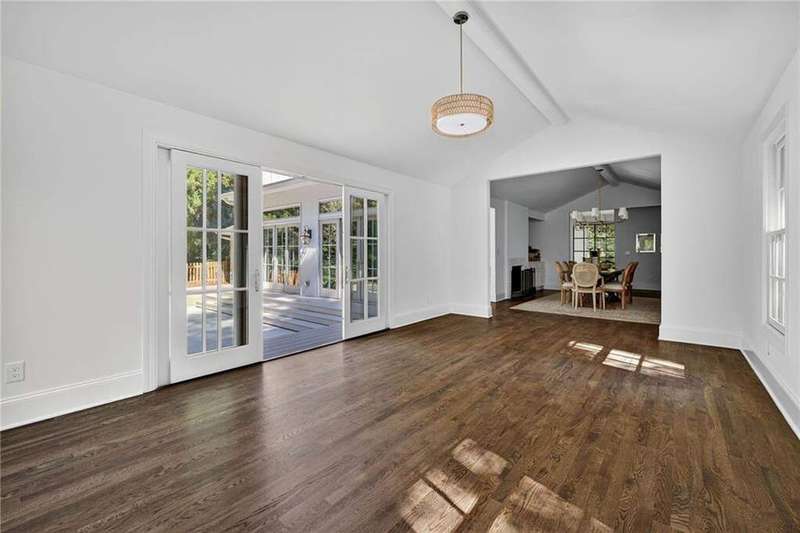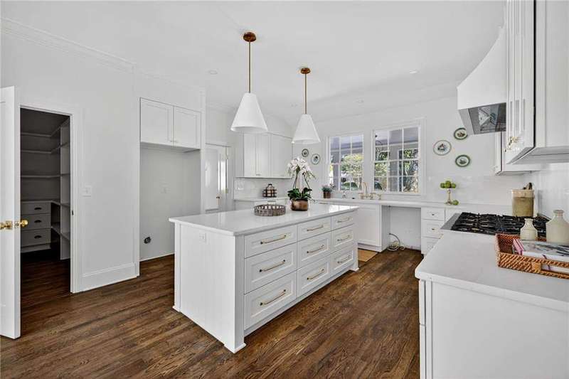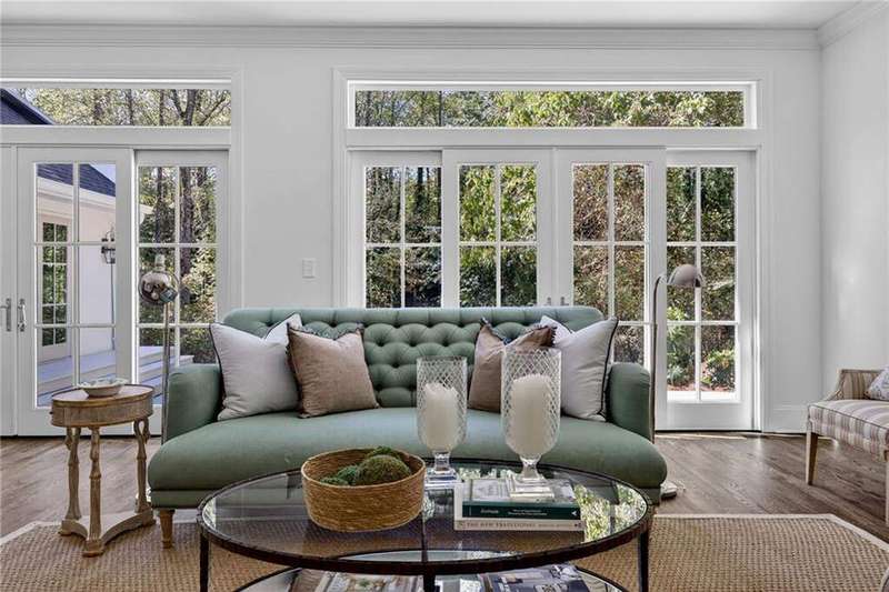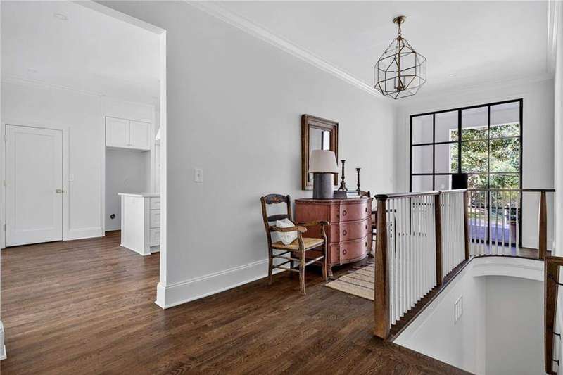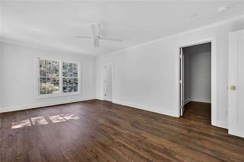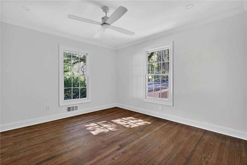 Tucked in the coveted Castlewood neighborhood, this stunning Buckhead home has been completely renewed from the ground up under the direction of award-winning architect Claire Smith and designer Nona Pappas. Set on a rare one-acre, pool-ready lot, the home balances classic architecture with a clean, modern feel. The main level flows effortlessly between the dining room with a wood-burning fireplace, sunroom, kitchen, and living areas, all opening up to the gorgeous, flat backyard that is perfect for family activities, entertaining, or a future pool. Hardwood floors throughout and tall French doors fill the home with natural light and enhance the sense of indoor-outdoor living. The kitchen features custom cabinetry, Calacatta Venezia quartz counters and backsplash, a walk-in pantry, an Italian-made 48" range, and premium unlacquered brass plumbing fixtures. The main-level primary suite offers peaceful garden views and a luxurious bath with marble finishes, polished nickel plumbing fixtures, and custom cabinetry. High-end details run throughout the home, including Circa lighting and a marble sink in the powder bath. Two additional bedrooms with en-suite baths complete the main level. The terrace level provides two guest suites, generous living space, and is stubbed for a future kitchenette. Located just a short golf cart ride from Morris Brandon, the home offers easy access to Atlanta's top private schools and the best of Buckhead living. Every detail, from ceiling heights to window placement, reflects thoughtful architecture that feels both classic and current.