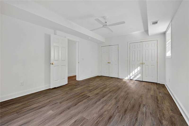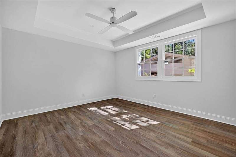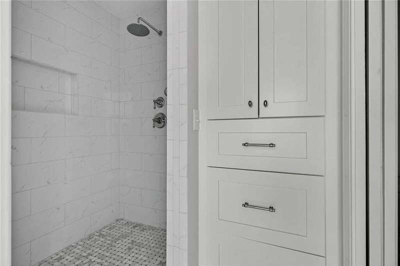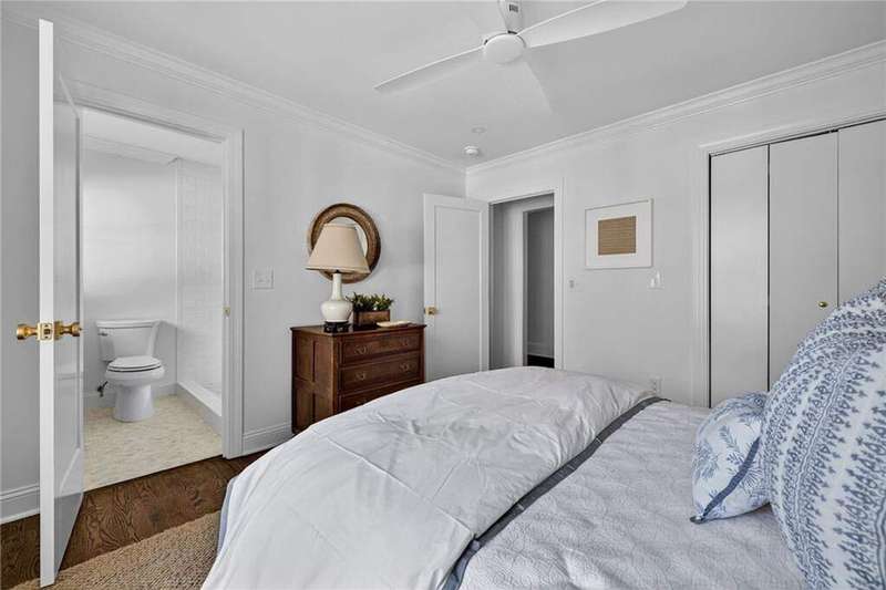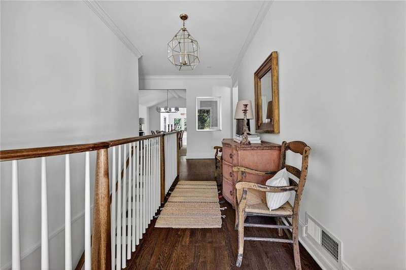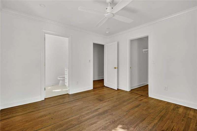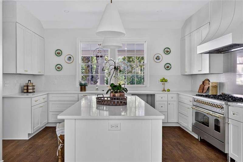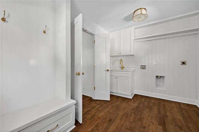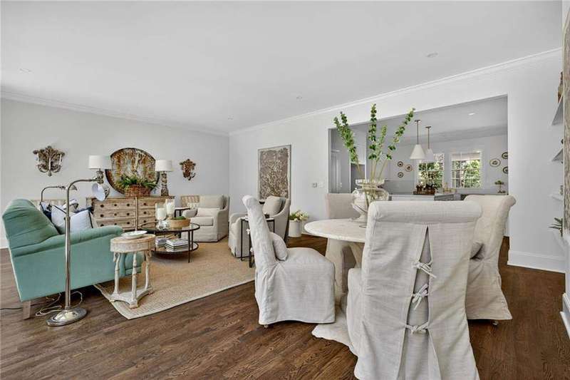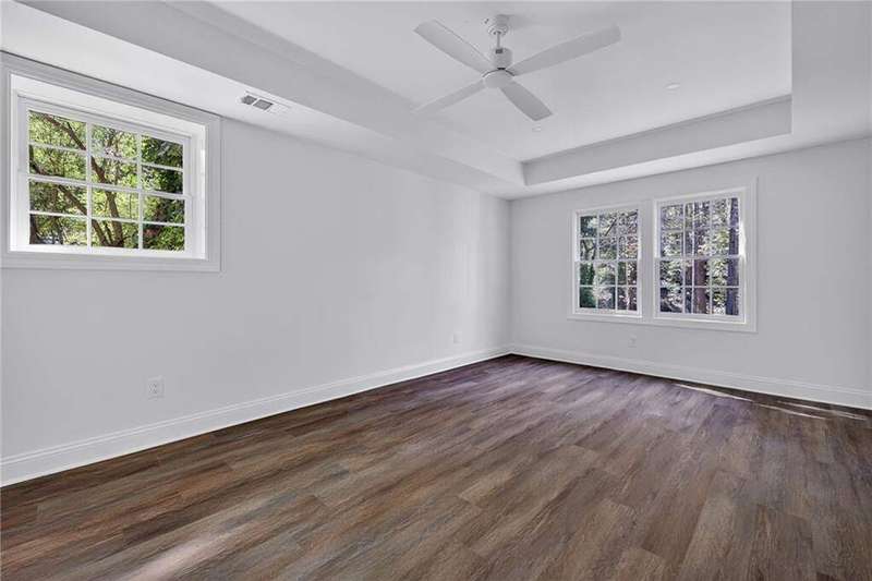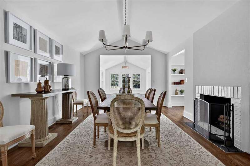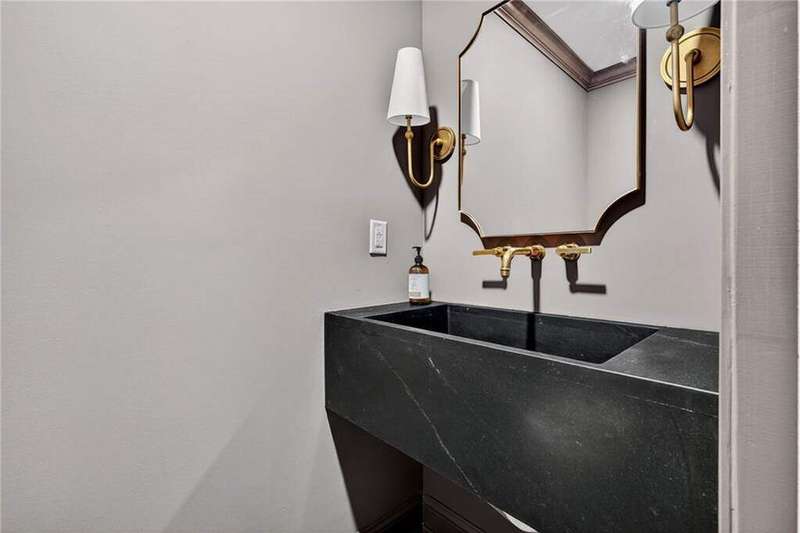 Tucked in the coveted Castlewood neighborhood, this stunning Buckhead home has been completely renewed from the ground up under the direction of award-winning architect Claire Smith and designer Nona Pappas. Set on a rare one-acre, pool-ready lot, the home balances classic architecture with a clean, modern feel. The main level flows effortlessly between the dining room with a wood-burning fireplace, sunroom, kitchen, and living areas, all opening up to the gorgeous, flat backyard that is perfect for family activities, entertaining, or a future pool. Hardwood floors throughout and tall French doors fill the home with natural light and enhance the sense of indoor-outdoor living. The kitchen features custom cabinetry, Calacatta Venezia quartz counters and backsplash, a walk-in pantry, an Italian-made 48" range, and premium unlacquered brass plumbing fixtures. The main-level primary suite offers peaceful garden views and a luxurious bath with marble finishes, polished nickel plumbing fixtures, and custom cabinetry. High-end details run throughout the home, including Circa lighting and a marble sink in the powder bath. Two additional bedrooms with en-suite baths complete the main level. The terrace level provides two guest suites, generous living space, and is stubbed for a future kitchenette. Located just a short golf cart ride from Morris Brandon, the home offers easy access to Atlanta's top private schools and the best of Buckhead living. Every detail, from ceiling heights to window placement, reflects thoughtful architecture that feels both classic and current.