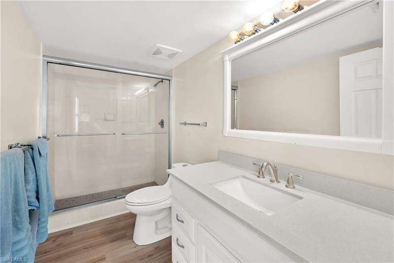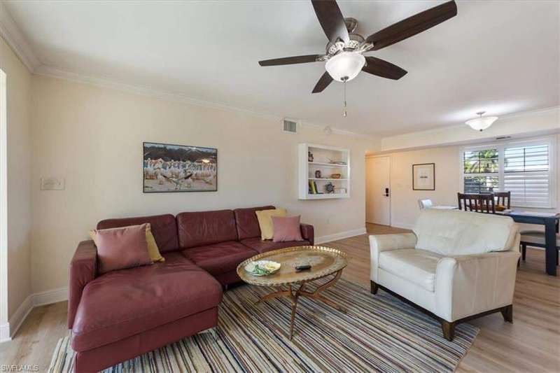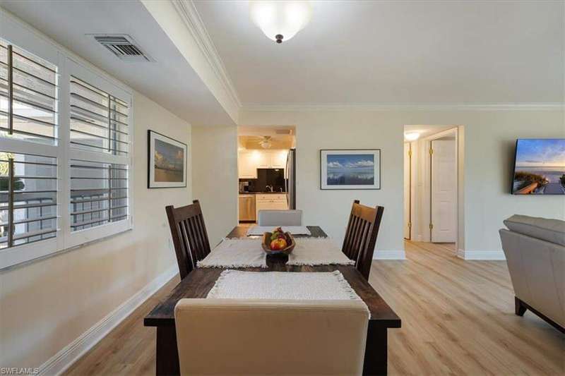 Welcome to Four Winds on Naples Bay, a lushly landscaped 55+ waterfront community just minutes from downtown and Naples' famous beaches. This spacious 2-bedroom, 2-bath top-floor end-unit has been fully updated with granite countertops, stainless appliances, a new HVAC, a new roof, and an enclosed lanai with storm-impact sliders overlooking a protected canal and your deeded boat dock with water and power. Four Winds offers unmatched amenities including pickleball, tennis, shuffleboard, gas grills, a bayside pool, and a social chickee hut, all within a financially sound association with no HOA increases and assessments already paid. With immediate rental opportunities allowed, this condo is both a serene retreat and an excellent investment.