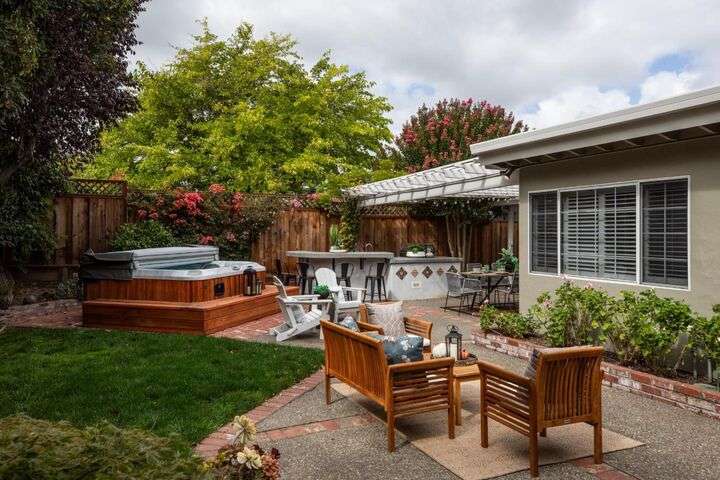 Step into a stunning Woodside Plaza gem, nestled in the heart of Silicon Valley, just minutes from Hwy 280, Stanford, Meta, Google & other top employers! This meticulously upgraded home blends modern flair w/ timeless comfort. An open-concept layout seamlessly connects the kitchen, dining & living areas, perfect for entertaining or cozy nights in. The spacious family room invites relaxation, while large windows w/ plantation shutters add plenty of natural light. The gourmet kitchen boasts a Viking stove/oven, Sub-zero fridge, premium cabinetry & sleek finishes. Venture outside to a private, lushly landscaped backyard oasis, designed for indoor-outdoor living. Enjoy a built-in BBQ, sink, fridge, outdoor TV, spa/hot tub, & ample power outlets for epic alfresco gatherings. Wired speakers indoor/outdoor elevate the vibe, making every moment unforgettable. Fresh paint, LED & recessed lighting, skylights, modern HVAC & double-pane windows ensure year-round comfort. Lush front/rear landscaping enhances the elegant CA lifestyle. Whether unwinding at home or exploring the Peninsula, this home is your perfect sanctuary. A block from Maddux Park and short walks to Woodside Plaza stores and local schools. Embrace style, convenience & Silicon Valley living at its finest!
