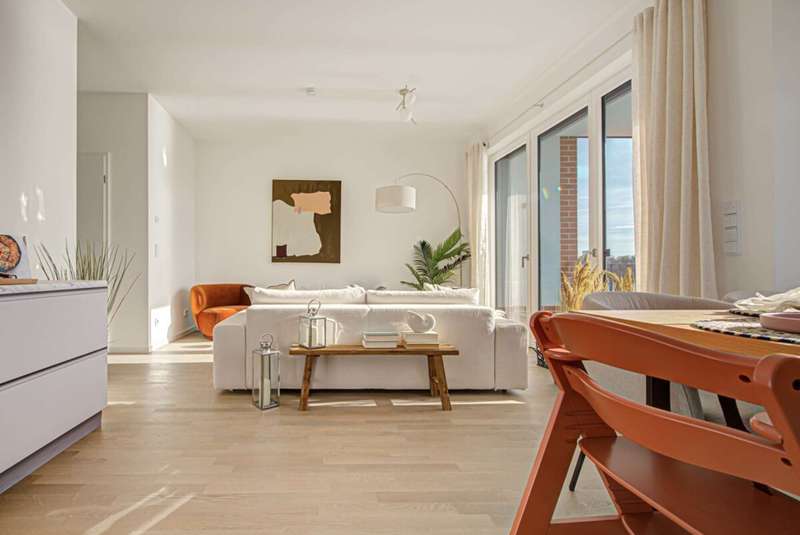 Welcome to your home by the water! This exclusive new-build residential gem offers you a multitude of furnishing highlights. Only high-quality, hand-picked materials were used in the design, which meet both high aesthetic demands and practical requirements. The highlight of the apartment is the spacious terrace/the spacious roof terrace/the spacious south-facing balcony: here you can enjoy wonderful moments of sunshine in the fresh air. Have breakfast here in summer, enjoy unforgettable moments with friends at a cozy barbecue or relax with a glass of wine in the evening. The fantastic view over the Havel gives you a feeling of peace and relaxation all day long. Thanks to the south-facing orientation and floor-to-ceiling windows, there is plenty of natural light, creating a bright and inviting atmosphere. Parquet flooring with underfloor heating rounds off the cozy feeling. The bathrooms feature high-quality brand-name products, a rain shower and towel radiators. An elevator takes you comfortably to your floor. The apartment also has an underground parking space. Inselquartier Eiswerder ideally combines the charm of nature with the amenities of the city. This apartment offers you the opportunity to live in an exclusive and peaceful environment while enjoying the amenities of the city of Berlin. Arrange a viewing appointment today to experience this dream apartment in Inselquartier Eiswerder in person!