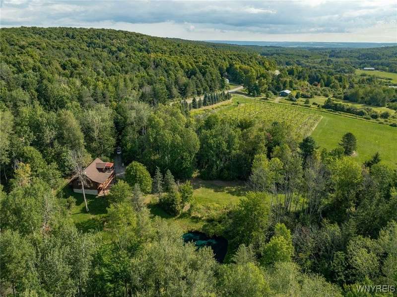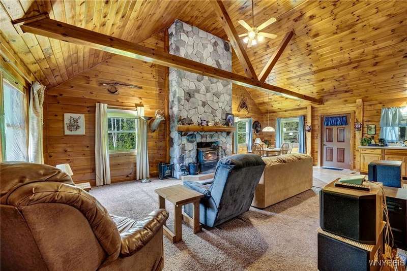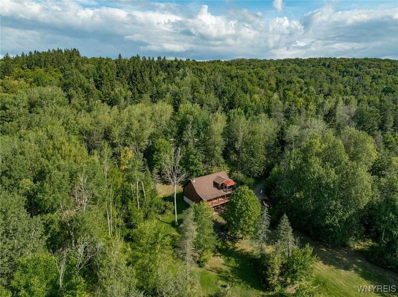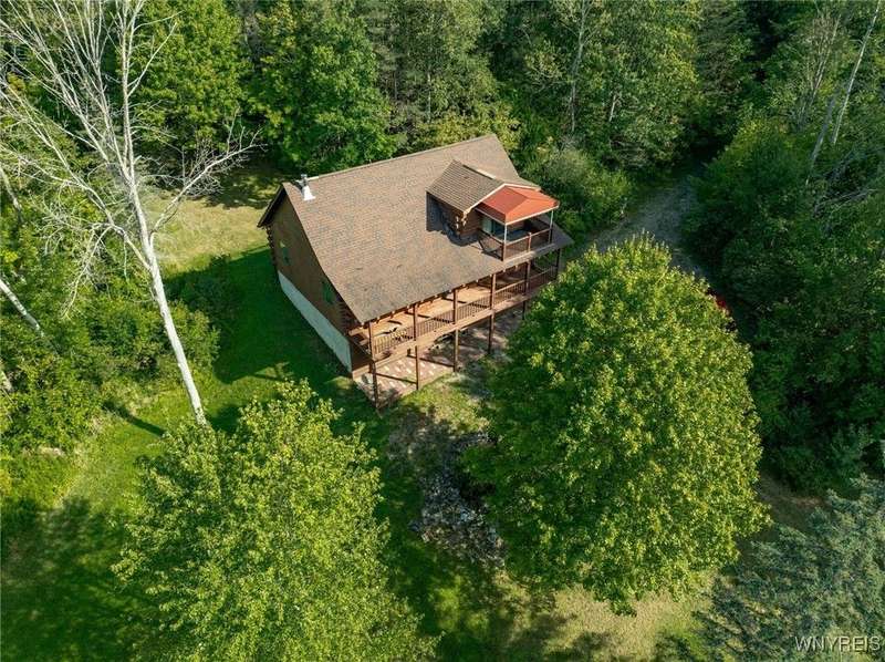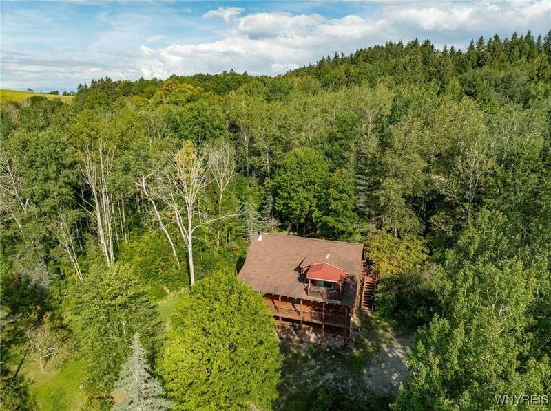 Looking for your country home? Come take a look at this log sided 2 bedroom 1 bath home with 16.5 wooded acres located between Springville and Arcade. The open concept has plenty of space to gather with family and friends. The natural woodwork throughout adds warmth and charm to the inside. There is a loft that has its own covered balcony and spacious enough for a possible third bedroom! There is a woodstove insert to enjoy in the upcoming winter month or take your favorite beverage outside to one of the three porches to take in the view and enjoy the peaceful surroundings and the change of seasons.