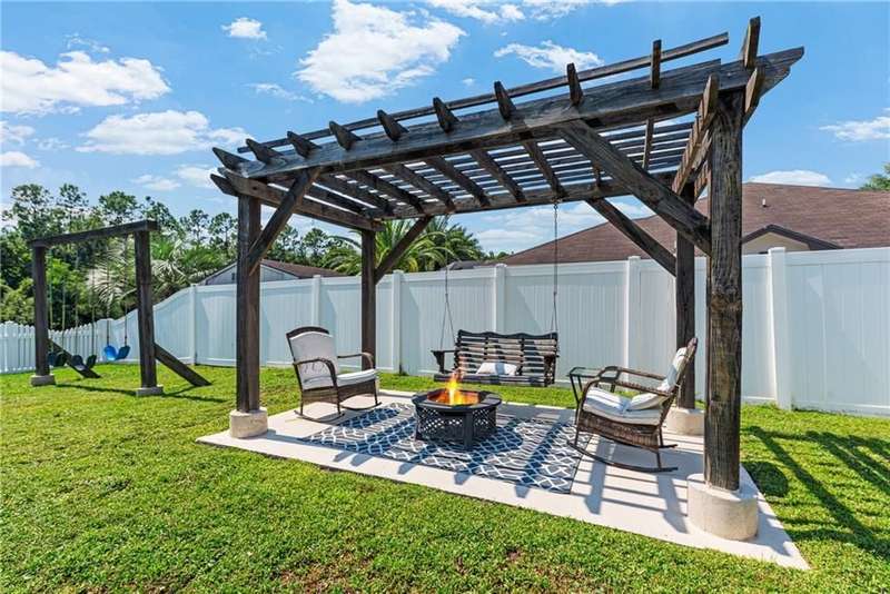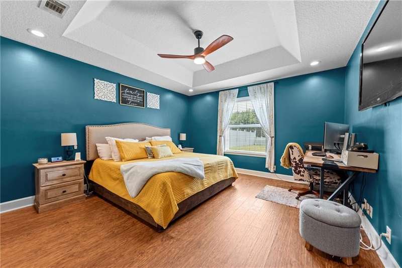 Beautiful 4-Bedroom, 2-Bathroom Home in Lake Forest. Welcome to this stunning split-floorplan home located in the sought-after Lake Forest neighborhood. With no carpet throughout, youll enjoy easy maintenance and style with wood-look flooring and tile in every room. Come inside to find high ceilings and recessed lighting that create a spacious and welcoming atmosphere. The home features both a formal dining area and a cozy breakfast nook, perfect for everyday living and entertaining. The kitchen is complete with stainless steel appliances, granite counter tops, a custom pantry with barn doors, and ample counter and storage space. The primary suite is a true retreat, featuring tray ceilings, a double vanity, a jetted soaker tub, a separate tiled shower, private water closet, and a walk-in closet with plenty of shelving. Enjoy peaceful evenings on the screened-in back porch or relax on the charming covered lanai, all overlooking the vinyl-fenced backyard and tranquil pond view. Conveniently located just: 1.6 miles from the elementary school, 1 mile from the middle school, 1.5 miles from Chick-fil-A, and just 8.5 miles from Kings Bay Naval Base. This home has it all - comfort, style, and location!