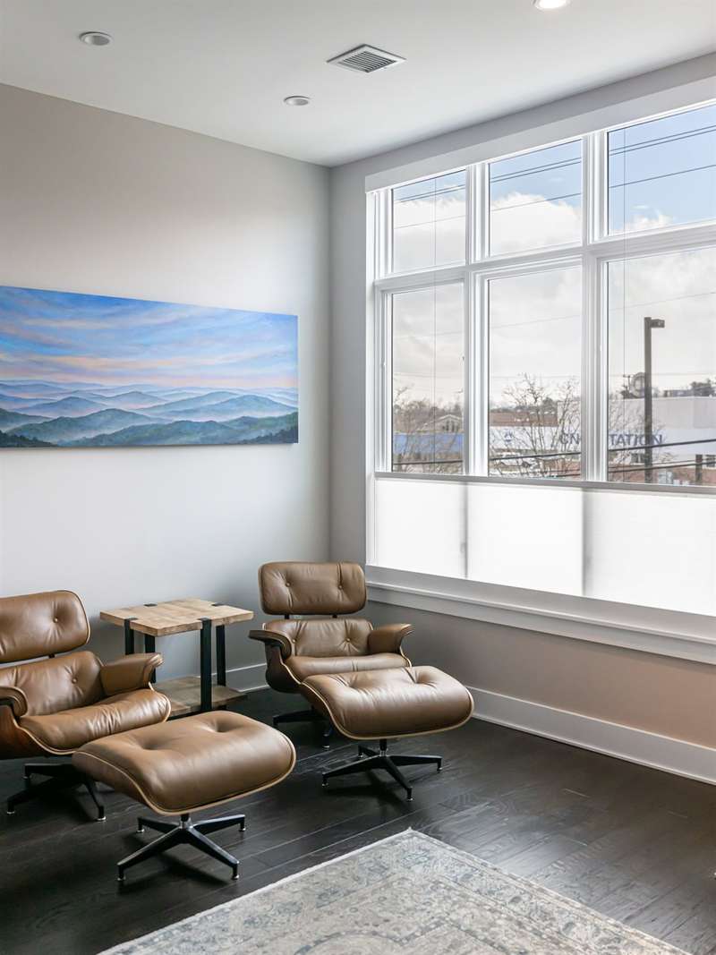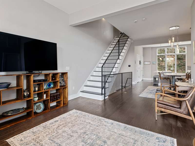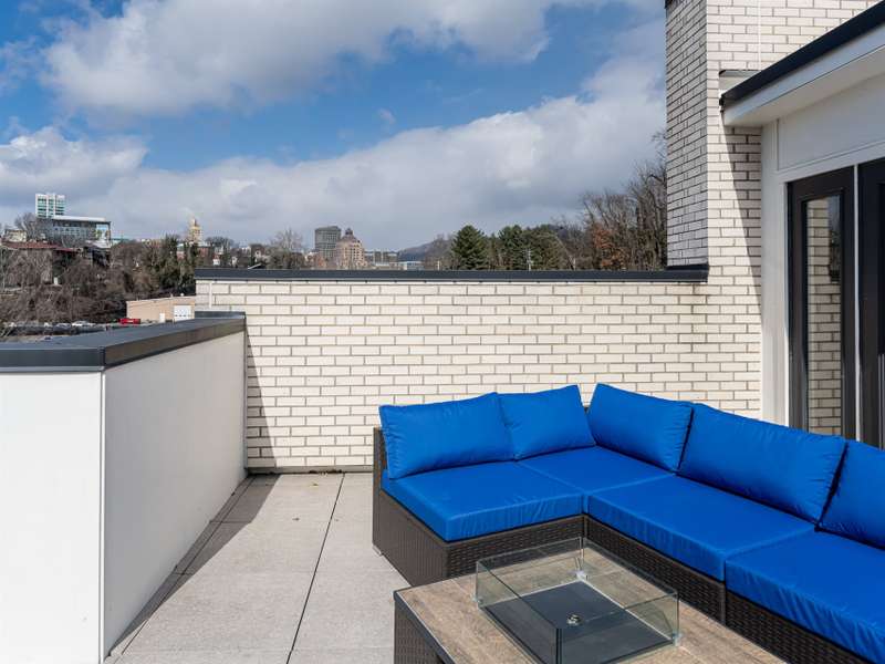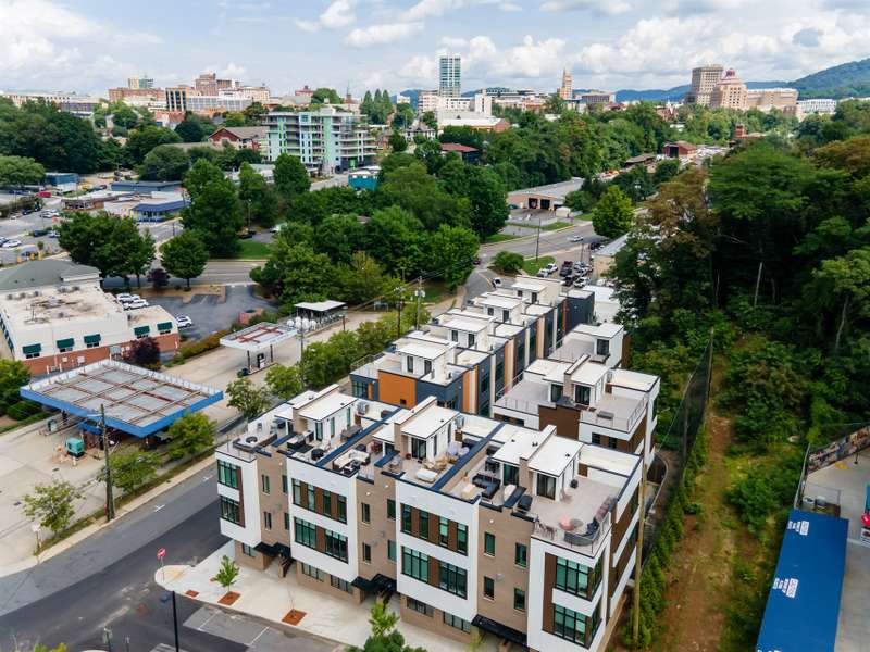 Experience the epitome of modern urban living in this stunning 3-bedroom, 3.5-bathroom townhome in the heart of downtown Asheville. Designed with sleek contemporary architecture, this exquisite residence features expansive windows that flood the space with natural light, soaring 10-foot ceilings, and a thoughtfully designed open-concept main living area. Every bedroom is a private retreat, complete with en-suite bathrooms, offering both luxury and comfort. The three-level interior is complemented by a huge, private rooftop terrace, perfect for entertaining or unwinding under the stars, with gas hookups for grill and firepit. For ultimate convenience, enjoy the attached two-car garage and the option for a private elevator. Nestled in an unbeatable location, just one block from the vibrant Brewery District, McCormick Field, and mere moments away from the charm & culture of downtown Asheville. (not in a flood zone)