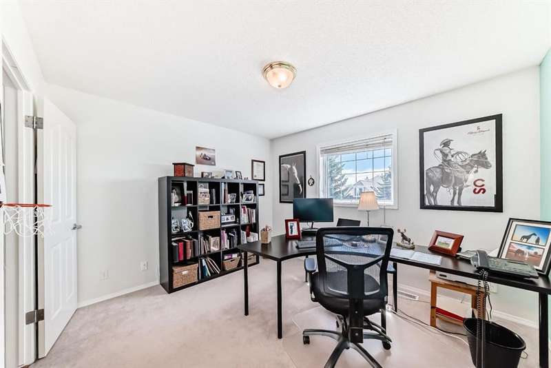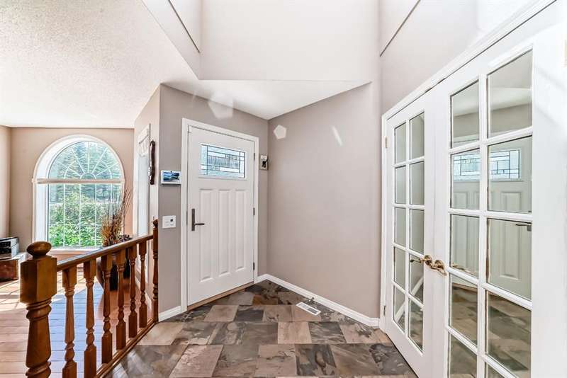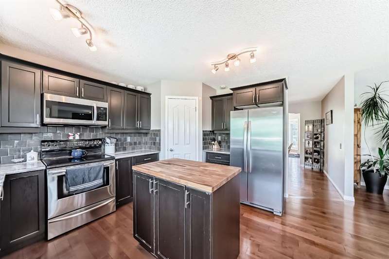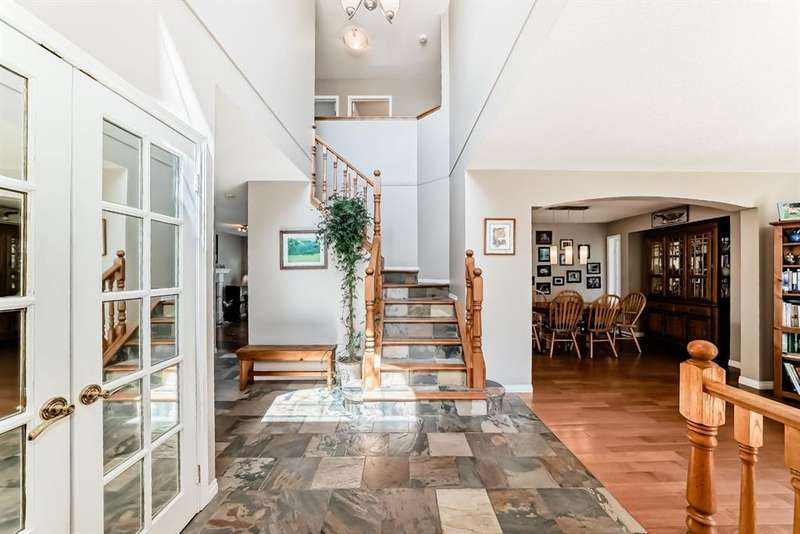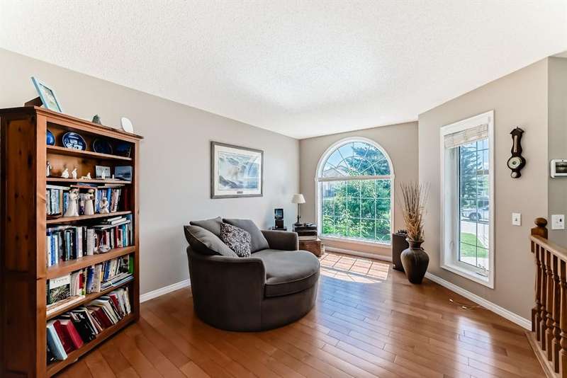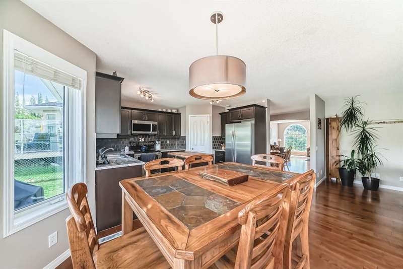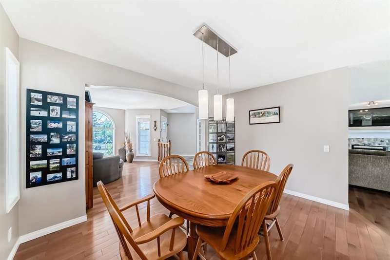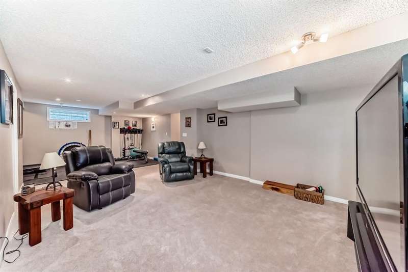 Welcome to your dream home—an immaculate and fully finished two-storey residence perfectly positioned on a quiet, desirable street and backing onto the golf course (with no stray balls). Enjoy peaceful mornings and unforgettable evenings with gorgeous mountain views, a beautifully landscaped large yard, and an expansive deck that's perfect for entertaining or relaxing. Perfectly surrounded by mature trees, and with a relaxing fire pit area, this yard is an ideal outdoor oasis. This ideal location gives you a perfect view of the hang gliders from the Cochrane Hill, plus it has easy access to the Glenbow Ranch Provincial Park trails which are part of the Trans Canada Trail system. For those with young families, you'll appreciate the park and playground nearby. Inside, this thoughtfully designed home offers plenty of options and tons of finished living space. The main floor is both functional and elegant, offering a formal dining room, front sitting room, bright breakfast nook, and a large living room with a cozy gas fireplace and gorgeous backyard and golf course views. The kitchen is updated with stainless steel appliances, a corner pantry, island counter, and views that will make meal prep a pleasure. A 2-piece powder room and convenient laundry room complete the main level. The upper level features three spacious bedrooms, including a huge primary suite with a luxurious full ensuite with oversized jetted tub and a walk-in closet. This bedroom is very oversized, easily fitting a king bed and large furniture while still allowing space to move. Up here, you'll also find two more good sized bedrooms and another full bathroom for kids or guests. Downstairs, the fully developed lower level boasts a fourth bedroom, full bathroom, a large rec room with ceiling outlets, an exercise area, and ample storage for all your needs. The convenient double garage also offers plenty of built-in storage space. Whether you're hosting gatherings or enjoying a quiet evening under the stars, this exceptional home blends comfort, style, and location in one unbeatable package. Don’t miss your chance to live in one of the area's most sought-after neighborhoods!