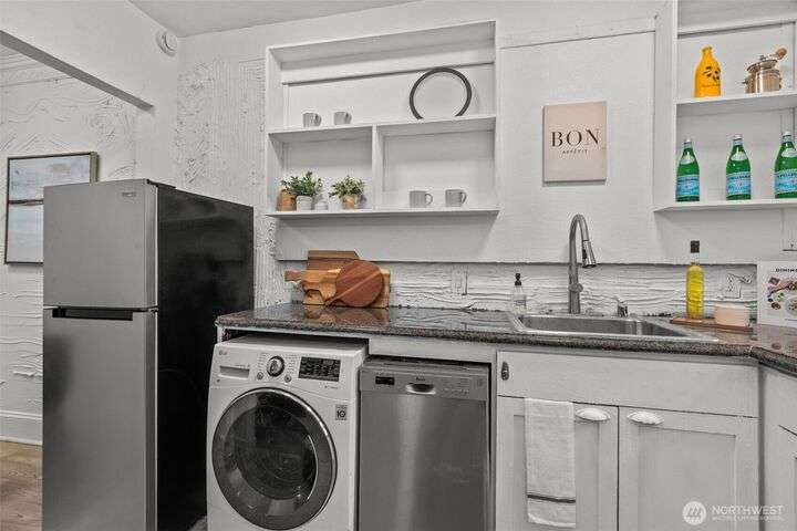 Looking for the perfect investment (short term welcome here!) piedaterre or full time residence in the heart of it all? Welcome to 5th Avenue Court, one of Seattle's landmark historic buildings with modern updates and parking! Just minutes to the best of Downtown living, shopping, dining, transit, and all Seattle has to offer. Renovated and retrofitted condo community preserving the historic charm of 1922. Artistic updates to your new condo including Venetian plaster walls (over drywall for easy of anchoring art), modern kitchen with newer SS appliances, in unit washer and dryer + a cozy yet functional floorplan perfect for your in city oasis. The search for the perfect place is real. Come and see what makes this condo so special today!