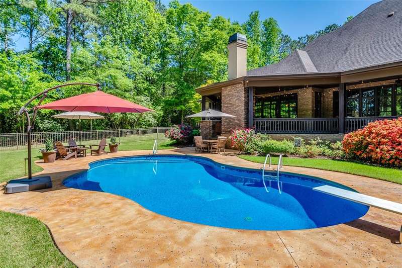 This home, CUSTOM BUILT by Nathan Watson & nestled on 2.55 acres, is LOADED with high-end finishes & custom touches that truly set it apart! Coming up the private driveway, you are greeted by professional landscaping & a PEACEFUL setting. The front porch has a vaulted tongue & groove ceiling, exposed wood beams & elegant double front doors, creating a grand & welcoming entrance. Step into the foyer, with a spacious Dining Room to one side-perfect for hosting gatherings or formal meals. On the opposite side is a large office, or optional library/sitting room, featuring custom built-ins. The Great Room boasts a tongue & groove ceiling, oversized stacked stone fireplace with expansive windows & a GORGEOUS view of the pool & back yard. The kitchen is a CHEF'S DREAM with KitchenAid Professional Series appliances, double ovens, six-burner gas stove, TWO large islands with additional storage, pellet ice machine, pull-out spice racks, & walk-in pantry. The Breakfast Room is OPEN to the Kitchen & also has AMAZING views. The primary suite is located on one side of the home & includes a sitting area with access to the covered back patio. The primary bath offers a true spa-like experience with a soaking tub, separate shower, double vanities & TWO closets with built ins. A secondary bedroom is also located downstairs, complete with an en suite bath & access to the back patio. Head upstairs where you'll find TWO guest bedrooms, EACH with a private bath. Delight in the MASSIVE bonus room with a connected sitting area. The outdoor living space is AMAZING with a HUGE covered porch with tile flooring, outdoor fireplace, built-in grill, sink, refrigerator, & granite countertops. Enjoy the kidney-shaped POOL with scored concrete pad & iron gate. Other features: surround sound, security system, underground sprinklers, drop zone, laundry room with sink, tankless water heaters. Also find crown molding, bull-nosed corners, foam insulation & 3 car garage. Easily zoned in to Pike Road School