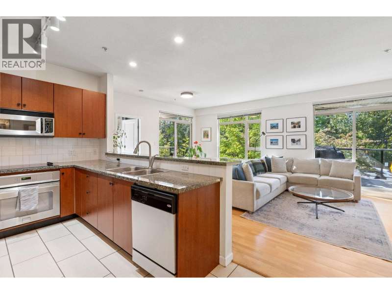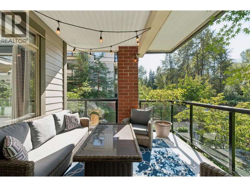 Welcome home to your spacious and bright 2 Bed/2 Bath SW corner home in Suter Brook in the heart of Port Moody. Walk in the front door and enjoy 9 ft ceilings and the perfect layout offering 1170 SF of open concept living including a chef´s kitchen with SS appliances, granite counters and bar seating. You´ll love the full size windows, two covered patios and a beautifully updated fireplace with contemporary finishes + built in shelving. The large bedrooms have been freshened up with new carpet and are separated for ultimate privacy. Great building amenities including gym, two level amenity room and two guest suites located on the same floor making it easy and comfortable for hosting family + friends. Enjoy this coveted location - walking distance to trails, shops, brewery lane + transit. (id:58403)