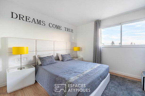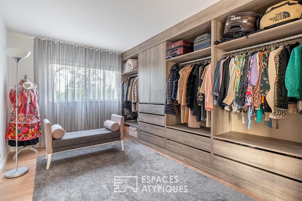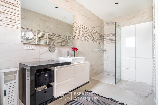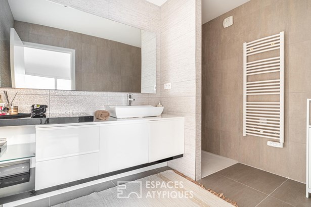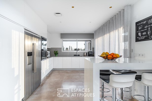 The landscaped garden, a veritable green setting, is home to a swimming pool perfectly integrated into the environment. A bioclimatic pergola completes this outdoor space dedicated to relaxation and leisure.