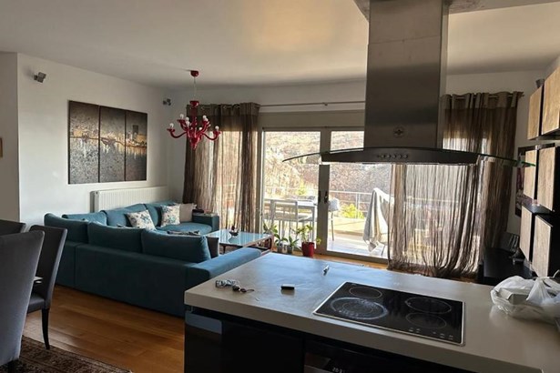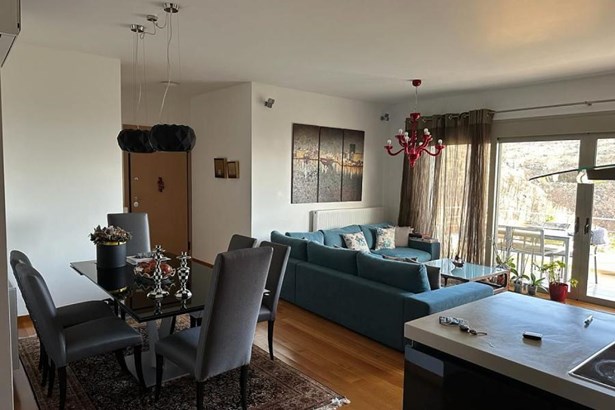 A modern apartment of 100m2 total area is located in a modern building in the upper area of Voula.