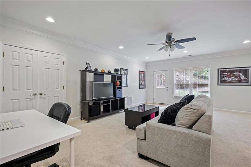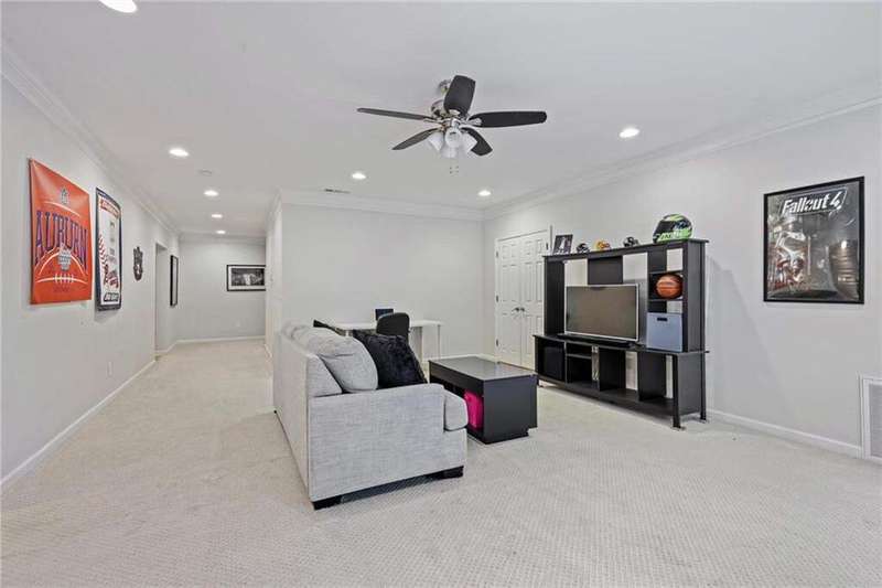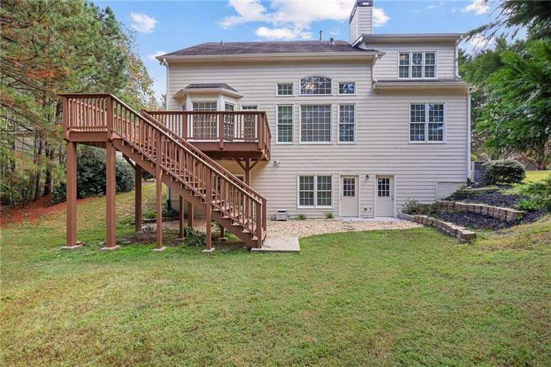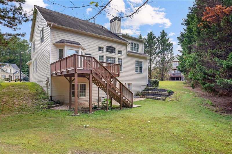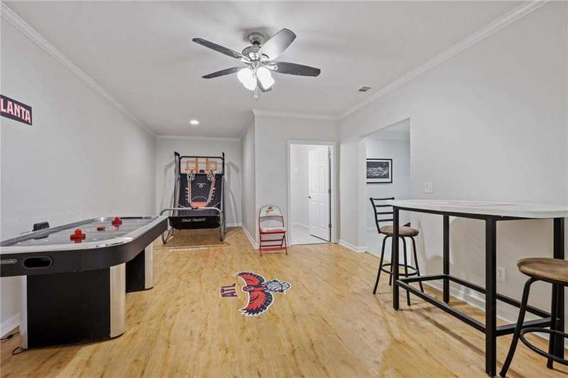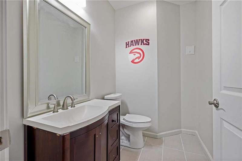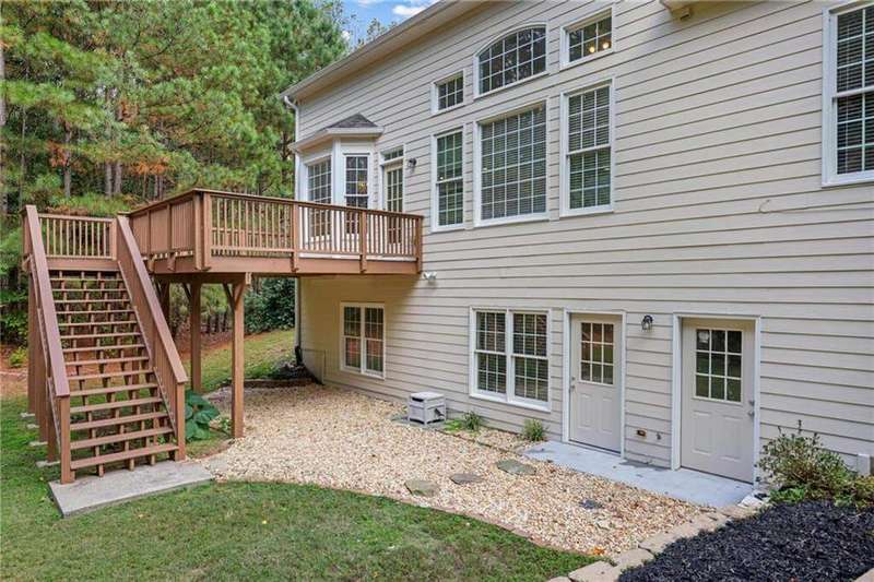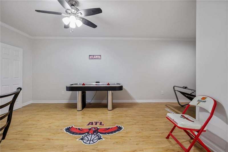 Tucked away on a private wooded cul-de-sac lot, this five-bedroom, three-and-a-half-bath home with a finished basement offers privacy, space, and resort-style amenities in one of Mableton's most desirable neighborhoods. This is one of the few properties that back up to Camp Timber Ridge, a Girl Scout nature preserve, providing peaceful wooded views and a serene connection to nature rarely found in suburban living. Inside, you'll find hardwood floors throughout the main level, a bright, open layout, and multiple spaces designed for both comfort and entertaining. Upon entry, you're welcomed by a formal living room and a dining room currently used as the owner's home office. The kitchen features granite countertops, a subway tile backsplash, and under-cabinet lighting, all with a view to the two-story great room that fills the home with natural light. This particular floor plan also offers one of the largest living rooms in the community, creating an inviting and versatile space ideal for gatherings or everyday relaxation. A guest bedroom and full bath on the main level provide added flexibility. Upstairs, there are two spacious secondary bedrooms, one with additional storage, and an oversized primary suite where the sitting room has been converted into a custom makeup and dressing space, creating a luxurious retreat that feels both stylish and functional. The finished basement includes a dedicated basketball room the ultimate setup for any sports enthusiast or Atlanta Hawks fan! Plus, an additional bedroom currently serving as a home gym(workout equipment stays with home), a media or entertainment area, a half bath, and ample storage space, offering the perfect balance of recreation, organization, and relaxation. Recent updates include new exterior paint (September 2025), added backyard drainage with decorative pebble finish (June 2025), and a new main-level AC and furnace (October 2025). The location is unbeatable! just 20 minutes to Truist Park and The Battery, 20 minutes to Downtown Atlanta, and 20 minutes to Hartsfield-Jackson International Airport. The Retreat at Old Vinings Lake is a highly active community featuring resort-style amenities including a pool, tennis courts, a 14-acre fishing lake, clubhouse, playground, and a scenic walking path that surrounds the lake. If you're looking for a well-maintained home that blends nature, privacy, and community living, this one is truly special. Owner/Agent! Seller is willing to sell majority of furniture with the property!