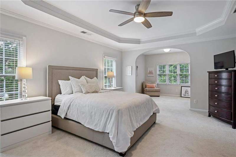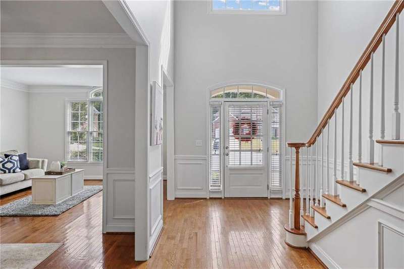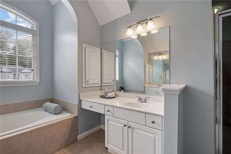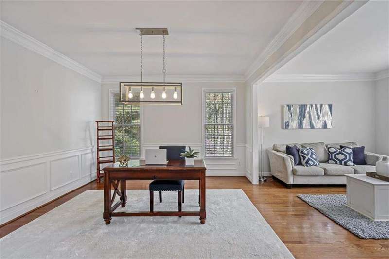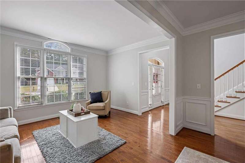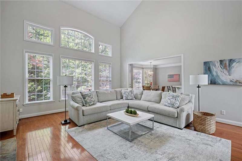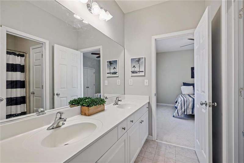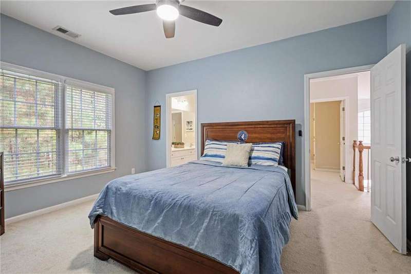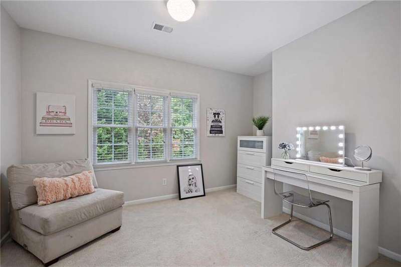 Tucked away on a private wooded cul-de-sac lot, this five-bedroom, three-and-a-half-bath home with a finished basement offers privacy, space, and resort-style amenities in one of Mableton's most desirable neighborhoods. This is one of the few properties that back up to Camp Timber Ridge, a Girl Scout nature preserve, providing peaceful wooded views and a serene connection to nature rarely found in suburban living. Inside, you'll find hardwood floors throughout the main level, a bright, open layout, and multiple spaces designed for both comfort and entertaining. Upon entry, you're welcomed by a formal living room and a dining room currently used as the owner's home office. The kitchen features granite countertops, a subway tile backsplash, and under-cabinet lighting, all with a view to the two-story great room that fills the home with natural light. This particular floor plan also offers one of the largest living rooms in the community, creating an inviting and versatile space ideal for gatherings or everyday relaxation. A guest bedroom and full bath on the main level provide added flexibility. Upstairs, there are two spacious secondary bedrooms, one with additional storage, and an oversized primary suite where the sitting room has been converted into a custom makeup and dressing space, creating a luxurious retreat that feels both stylish and functional. The finished basement includes a dedicated basketball room the ultimate setup for any sports enthusiast or Atlanta Hawks fan! Plus, an additional bedroom currently serving as a home gym(workout equipment stays with home), a media or entertainment area, a half bath, and ample storage space, offering the perfect balance of recreation, organization, and relaxation. Recent updates include new exterior paint (September 2025), added backyard drainage with decorative pebble finish (June 2025), and a new main-level AC and furnace (October 2025). The location is unbeatable! just 20 minutes to Truist Park and The Battery, 20 minutes to Downtown Atlanta, and 20 minutes to Hartsfield-Jackson International Airport. The Retreat at Old Vinings Lake is a highly active community featuring resort-style amenities including a pool, tennis courts, a 14-acre fishing lake, clubhouse, playground, and a scenic walking path that surrounds the lake. If you're looking for a well-maintained home that blends nature, privacy, and community living, this one is truly special. Owner/Agent! Seller is willing to sell majority of furniture with the property!