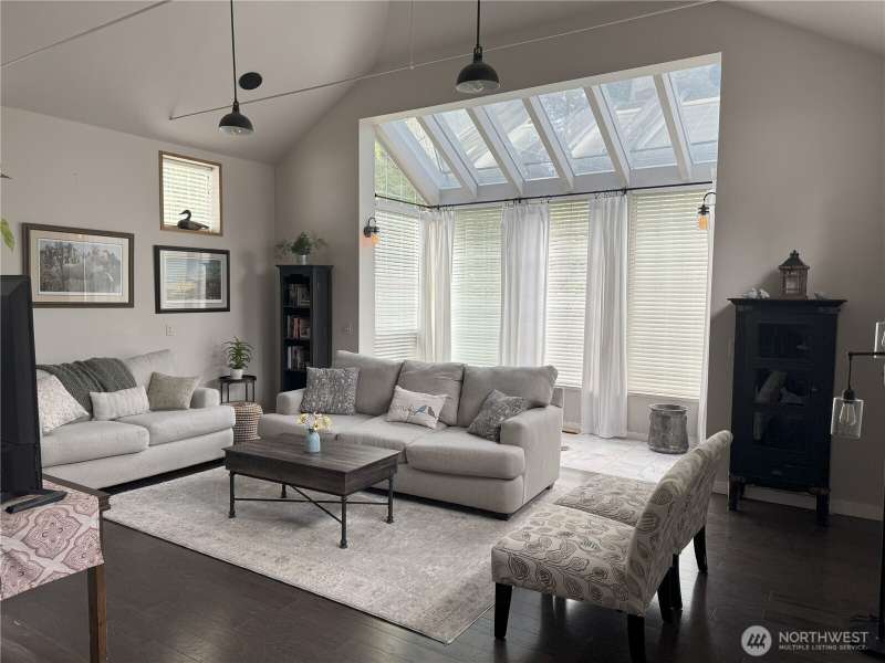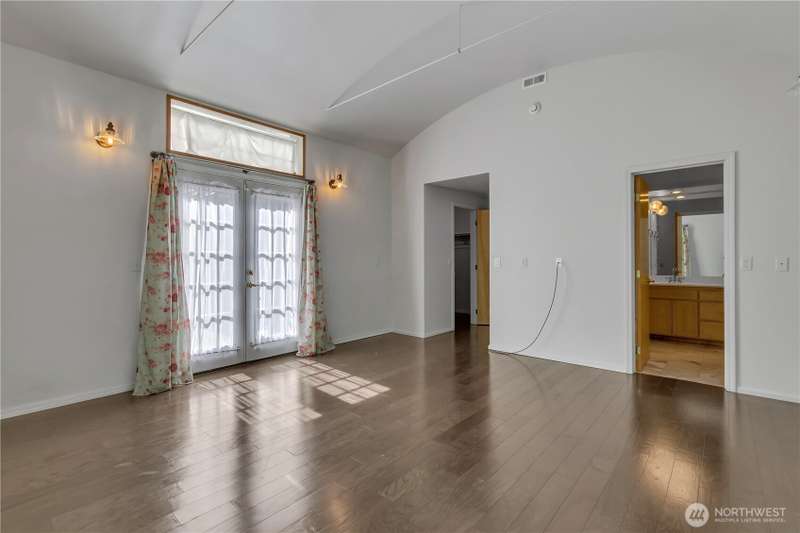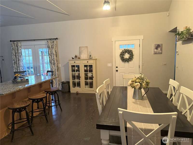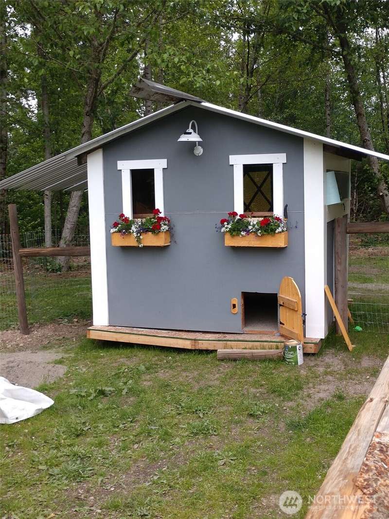 Spacious rambler on private 1.71 acres w/attached 3-car garage & detached 30x30 shop w/12' doors for RV/boat. Winding stamped concrete path & lg front porch. Main living space is perfect for entertaining w/open floor plan, soaring ceilings, natural light & French doors to 2 patios. Newer SS appliances & granite counters in kitchen. Lg primary suite includes walk-in-closet, 5pc bath, jetted tub, window seat, & French doors to patio. Enjoy 2 additional bdrms, full bath, bonus room & sunlit mudroom w/¾ bath & laundry room. Backyard is fully-fenced w/high 'no climb' fence, raised garden beds, chicken coop w/auto door & cross-fenced orchard w/fruit trees. Riding lawnmower stays! Heat pump & radiant heated floors. Living rm plumbed for fireplace.