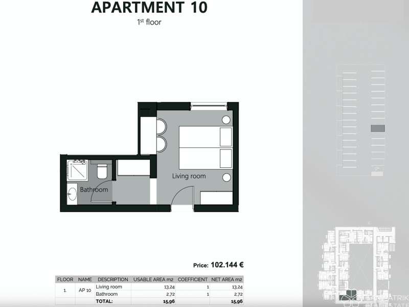 In Crikvenica, a town with a long tourist tradition and a steadily growing demand for quality accommodation, a new hotel complex is being developed with thirty luxury apartments ranging from 14 to 28 m2. The project combines contemporary design, smart technology and an attractive location just a few minutes' walk from the sea and city center, offering investors a secure investment with stable returns.