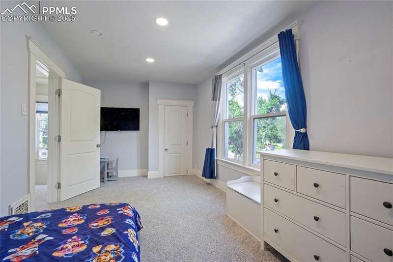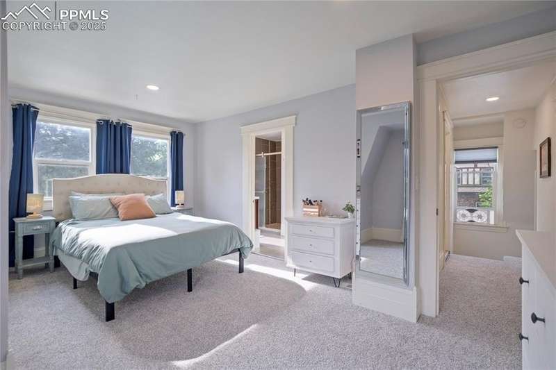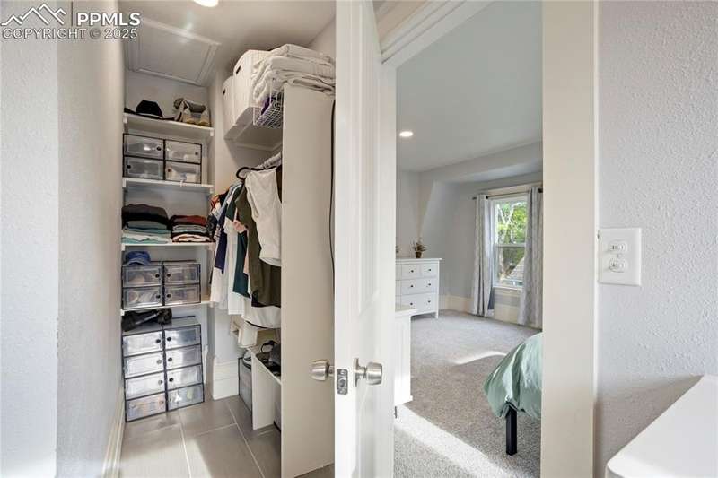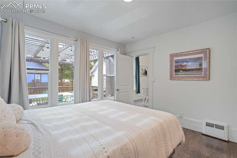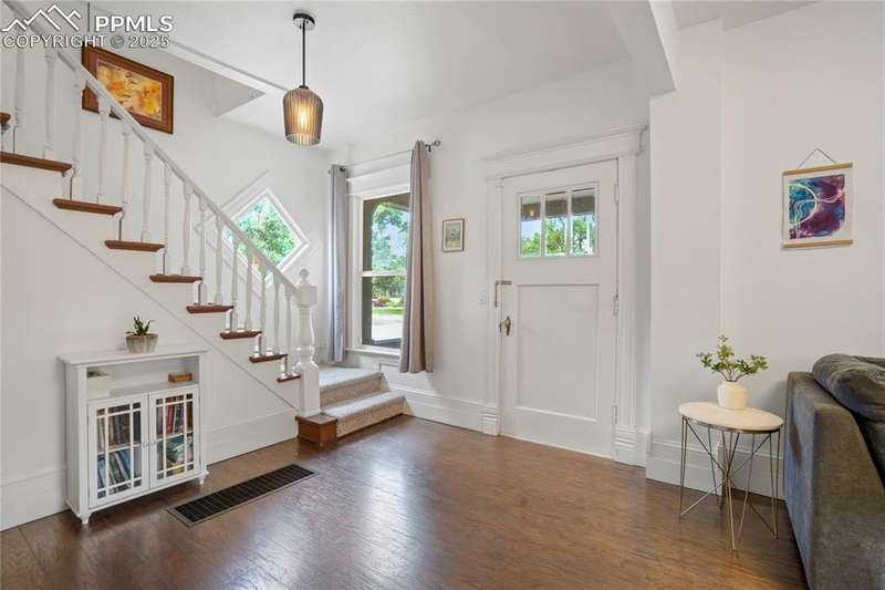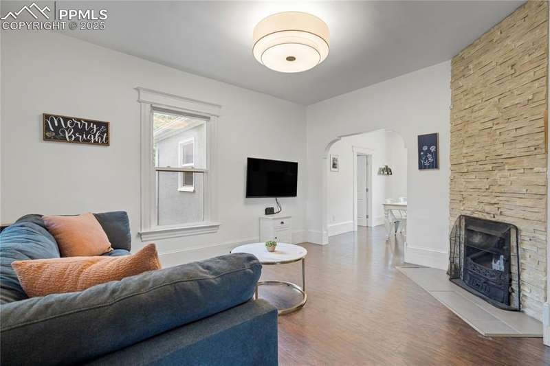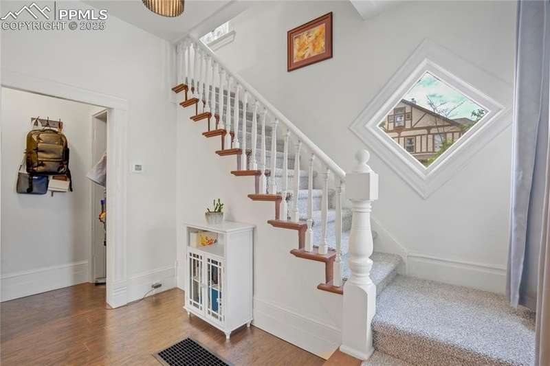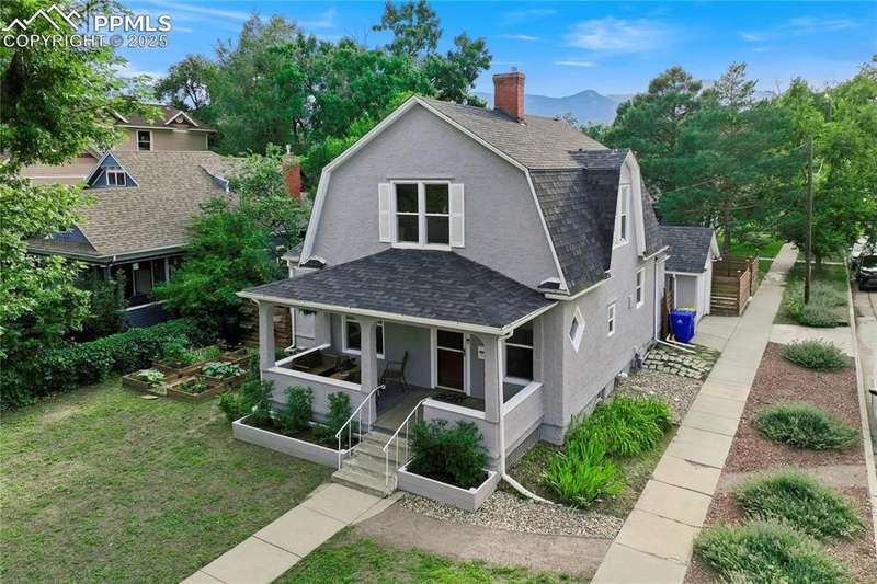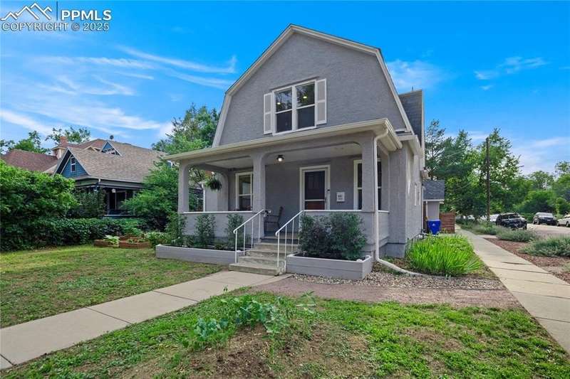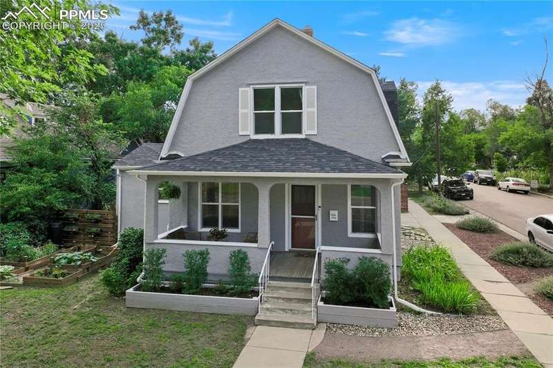 Set on a corner lot in the Old North End, this updated Dutch Colonial blends timeless architecture w/ modern upgrades in one of Colorado Springs' most iconic neighborhoods. Positioned just blocks from Downtown, the home offers 1 car detached garage, convenient side street parking, a private backyard, & walkable access to schools, parks/trails, restaurants, Lincoln Center, Colorado College, Patty Jewett & Penrose Hospital. Covered porch entry opens to main level w/ 9’ceilings & engineered wood floors that flows throughout the main level. The open & bright great room is anchored by the original coal-burning fireplace w/ a newer floor to ceiling stacked stone surround. Archway leads into an open flexible dining area & fully remodeled kitchen. Tall baseboards, & modern lighting bring a clean, newer feel. The gourmet kitchen features expansive island w/ quartz counters, a 5-burner gas range, stainless appliances, & walk-out access to the back deck. Completing the main level is a bedroom w/ large closet & private attached ¾ bath, & a separate laundry room off the kitchen w/new luxury vinyl plank floor & all new paint. Upstairs, the remodeled primary suite offers a walk-in closet & private spa-like bath w/ glass shower & views of the mountains. The oversized secondary bedroom has room for a sitting/play area, & easy access to full bath across the hall, complete w/ clawfoot tub & vintage-inspired touches. All new carpet throughout the upper-level bedrooms/hallway/stairs. Out back, enjoy a deck w/ a pergola that overlooks the fire pit, & fully fenced maintenance free landscaped yard. In the front yard enjoy the raised garden beds & large porch offers a place to relax & interact w/ neighbors. Bonus items include storage shed, detached 1-car garage, central A/C, high-speed internet, stucco exterior & vinyl windows. This home is a must see!