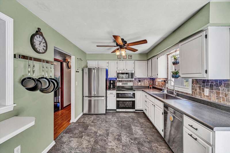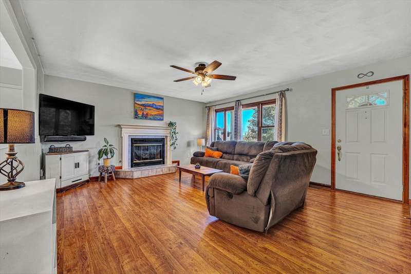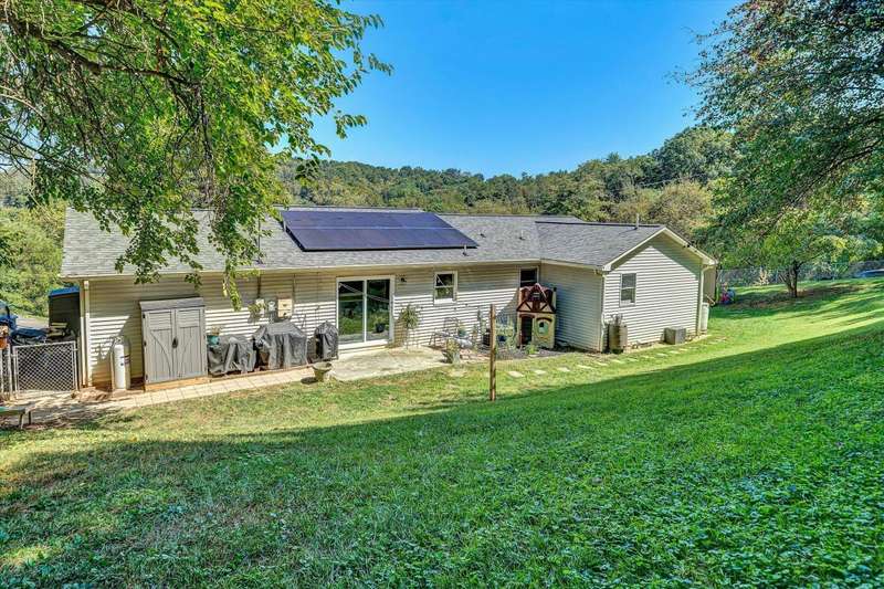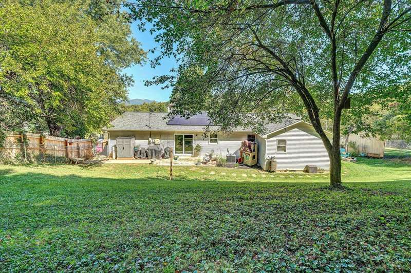 Updated ranch home with 3 bedrooms/2 baths set on an acre lot with fenced yard and mountain views. This well maintained property features a newer roof (2017), solar panels (2017), stainless steel appliances (2022), heat pump (2024), LVT in kitchen (2020), office created from garage space (2023), pumped out septic (2024), privacy fence (2022), refinished kitchen cabinets (2020), LED color changing lights controlled by phone (2023) and many more updates! The private backyard is enhanced by a privacy fence and mature fruit trees and bushes (apple, pear, raspberry, and blueberry) - perfect for relaxing or entertaining.