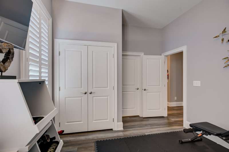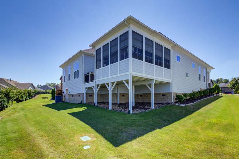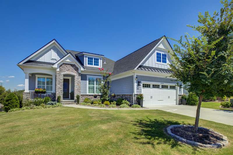 Exquisite home in the amenity-rich Regency at Palisades neighborhood. A rocking chair on the front porch offers a warm welcome to the home. The elegant dining room, situated just off the foyer, is ideal for both formal and casual entertaining. The shiplap-accented fireplace, with its rustic mantle, brings warmth to the great room. The gourmet kitchen is equipped with an oversized prep island that provides ample room for casual seating, a gas range/electric oven, and a stainless steel hood, extensive white cabinetry, and a truly impressive custom pantry. Just off the breakfast area is the private study, accessible through French doors. A fantastic all-season sunroom makes the most of the beautiful Carolina weather and opens onto a deck perfect for grilling out.. The spacious primary suite has a tray ceiling and an elegant chandelier. The spa-like bath has a marble walk-in shower, dual vanities, and custom cabinetry and shelving. An efficient laundry room, complete with a built-in folding shelf, cabinetry, and a drop zone, helps keep the home running smoothly. Spacious bedrooms 2 & 3 share a hall bath. Above the garage is a fabulous, insulated, and drywalled walk-up storage space that everyone needs. Regency HOA includes lawn maintenance, a 20,000 sq. ft clubhouse with an on-site concierge service, indoor & outdoor pools, tennis & pickleball courts.