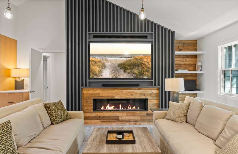 Welcome to this stunningly renovated four-bedroom, four-bath home - just one block from private beach access, with mooring rights! This single-level home is filled with sunlight and soaring ceilings throughout. You'll love the open layout and the warmth of the huge gas fireplace in the living room, complete with built-ins. The kitchen features handmade white oak cabinetry, and every bathroom has been beautifully appointed. Hardwood oak floors tie the whole space together. Enjoy your very own backyard oasis just outside - a gorgeous 32-by-16 gunite saltwater pool with spa, plus a pool house and outdoor shower. Downstairs, the lower level with egress windows is ready for fun - think ping pong, a playroom, or your own gym - and there's plenty of storage, too. There's even room for a garage. Listing ID: 926440