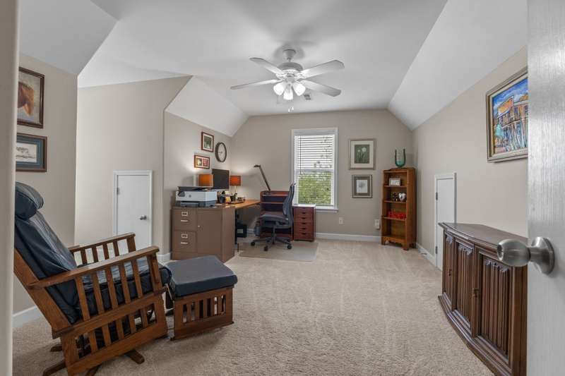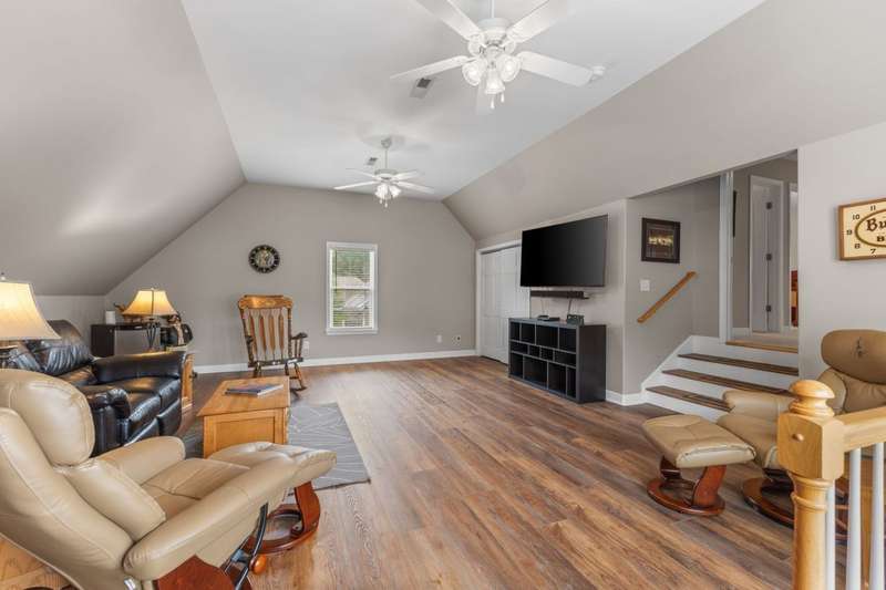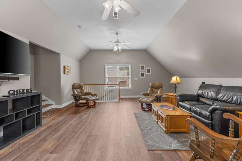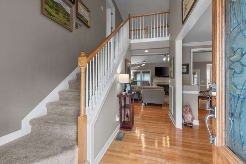 Phenomenal new price! TRULY MOVE IN READY! This immaculately maintained, light-filled home blends comfort, style, and thoughtful updates throughout.From the welcoming front entry staircase to the convenient rear staircase off the kitchen, every detail has been designed for easy living. The main-level primary suite showcases new luxury vinyl plank flooring, while the vaulted great room flows seamlessly into an updated kitchen featuring granite countertops, stainless appliances, and added peninsula cabinetry.Step into the stunning 10x17 three-season porch, where walls of windows invite in natural light and serene views of the backyard. Upstairs there are 2 bedrooms, a full bath and a spacious bonus room which has new LVP flooring providing the perfect retreat for entertaining, hobbies, or a home office.The walkout basement is a showstopper-complete with a coffee bar, fourth bedroom, full bath, oversized walk-in closets, and a generous family room. French door access to the backyard and newer windows add both style and function.Peace of mind comes with a long list of recent updates: Roof (2020), HVAC units (2019), gutters (2019), rebuilt deck & railings (2022), and French drain system (2022). Additional standout features include upgraded lawn irrigation with Rain Bird Wi-Fi controller and rain sensor, DogWatch underground fence, and a garage outfitted with overhead storage plus heavy-duty built-ins with upper/lower cabinets and a wood countertop-all included.