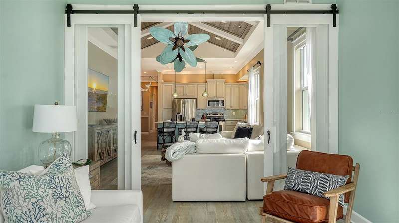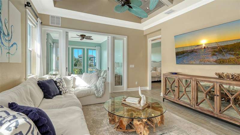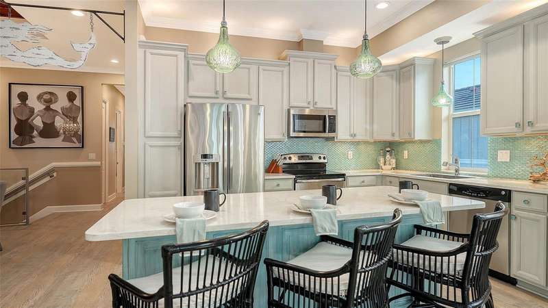 Experience the best of coastal living in this stunning 2-story coach home located in the gated waterfront community of Harbour Isles on Anna Maria Sound. Built in 2012, this beautifully updated 3-bedroom, 3-bath residence showcases elegant coastal appointments and breathtaking water views. This spacious home features an open-concept layout with soaring ceilings, wood plank detail in the family room, and a feature wall with custom mirror in the dining area. The kitchen has been completely updated with stainless steel appliances, glass backsplash, and Cambria quartz countertops. Additional updates include new windows, new AC, modern Cortex vinyl flooring, a striking metal-and-glass stair railing, and Cambria quartz countertops in all three bathrooms. The private elevator provides convenient access from the garage to the main living space. The bonus room, framed with glass barn doors, offers a full water view — perfect for an office, den, or guest overflow. The third bedroom currently features double bunk beds. Enjoy custom plantation shutters, designer window treatments, a separate laundry room, and turnkey furnishings throughout — truly move-in ready. Harbour Isles offers resort-style living with top-tier amenities, including the Beach Club with Sky Bar & restaurant, fitness center, four pools (including the close by serene Mangrove Walk pool), walking and biking trails, and complimentary kayaks for exploring the lagoon and preserve. The community also provides gated security, pest control, cable, and internet. Perfectly located directly on Anna Maria Sound, just 2 miles over the bridge to Anna Maria Island’s pristine beaches. Across the street, Neal Preserve offers 120 acres of natural wetlands, walking trails, boardwalks, and a scenic observation tower for birdwatching and sunsets. This exceptional property blends luxury, comfort, and convenience in one of Florida’s most desirable coastal communities.