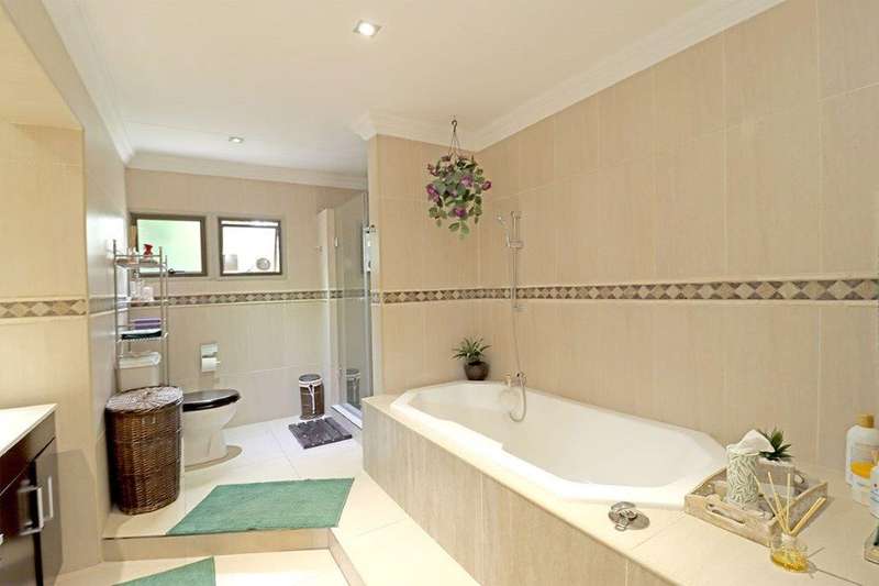 LOCATED IN SUPERB SECURITY ESTATE - 4 BEDROOM CLUSTER HOME Found within the heart of sought after Dowerglen Extension 4, this home has loads of potential. Upon entering the home, you're welcomed into a spacious entrance hall that leads to a well-appointed kitchen, seamlessly integrated with the open-plan lounge and dining room. The modern kitchen features a brand-new upright stove, eye-level oven, extractor fan, ample cabinetry with granite countertops, and an adjoining scullery for added convenience. A gas fireplace adds warmth and charm to the living area, which flows effortlessly through sliding doors into a bright sunroom. Another set of sliding doors opens onto a covered patio with a louvered roof, overlooking the sparkling pool and expansive garden—ideal for relaxing or entertaining. The ground floor also offers a guest bedroom and a separate guest bathroom, ensuring privacy and comfort for visitors. Large walk in storage cupboard. Upstairs guides you to three generously sized bedrooms. The main suite includes a walk-in dressing room, luxurious en-suite bathroom, and fitted air-conditioner for year-round comfort. Sliding doors to a private balcony with panoramic views. An additional full bathroom serves the remaining bedrooms. Large linen cupboards provide ample storage, and a fitted study offers the perfect work-from-home solution. Modern and low-maintenance aluminum windows and doors are installed throughout, with custom blinds and curtains included as part of the fixtures. The outdoor area is designed for family enjoyment, featuring a beautifully maintained pool with a water feature. Practical amenities include prepaid electricity, double automated garages with direct entrance into the home, and secure parking for up to three additional vehicles. For peace of mind, the home is equipped with an alarm system, internal security beams, and an electric perimeter fence.