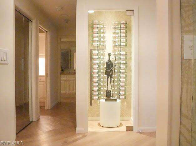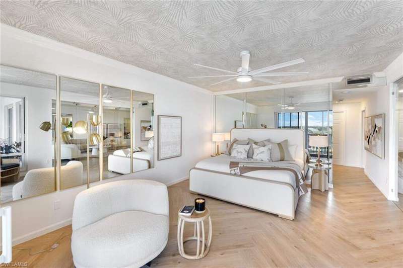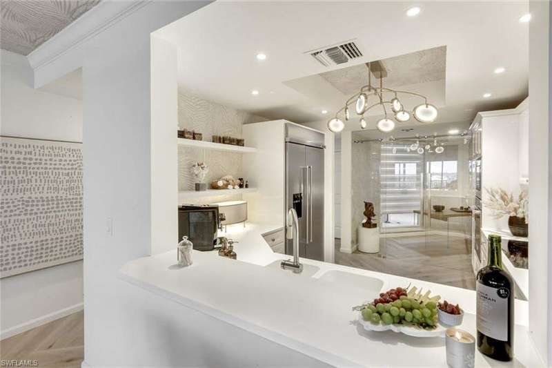 Luxury Coastal Living Awaits at Gulf Shore Drive at Res. 505! Step into a world of refined elegance and unparalleled coastal living in this completely renovated 2-bedroom plus den positioned on the 5th floor. The prestigious LeDauphin is highly sought-after and is renowned for its meticulous upkeep and resort-style amenities, offering residents a lifestyle reminiscent of a five-star hotel. LeDauphin Bay side boasts an array of luxurious features, including newly renovated lobbies, lush tropical landscaping, private boat docks, and direct access to a near private pristine beach. Enjoy leisurely afternoons by the sparkling pool or unwind in the hot tub, all while taking advantage of the outdoor kitchen and dining area. For the active lifestyle with fitness center, as well as tennis and pickleball ensuring endless opportunities for recreation and relaxation. Res. 505 has been completely reimagined by the award-winning Schreier Interior, located in the heart of Naples' design district, this esteemed firm has crafted remarkable custom interiors sophisticated and luxurious designs. Schreier Interior also designed the stunning interior for the lobby showcasing their exceptional ability to create inviting and elegant spaces. Every detail of this residence has been curated to embody the essence of coastal resort living, showcasing breathtaking intercoastal views through expansive " glass walls and sliding doors that seamlessly connect indoor and outdoor spaces. The interior features 9 ft ceilings, light herringbone flooring, state-of-the-art appliances, and plumbing fixtures and lighting. Thoughtfully selected curated artwork and accessories enhance the home's aesthetic, while understated yet dramatic textural wall coverings and fabrics elevate the overall ambiance, creating a sophisticated yet inviting atmosphere. Offered fully furnished and turnkey, this exquisite residence includes all artwork and accessories, allowing you to move in and immediately immerse yourself in the luxurious lifestyle it offers. Nestled on the prestigious Gulf Shore Drive is conveniently located near the private beach club LaPlaya and renowned dining establishments such as Baleen and Turtle Club. Enjoy the proximity to the Ritz Carlton and the vibrant offerings of Gumbo Limbo and Dusk, all within walking distance. Unit 505 is not just a home; it is a modern coastal retreat that encapsulates the very best of Naples living. Seize the moment to make this exceptional property your own. Schedule your private showing today and experience the allure of coastal luxury firsthand.