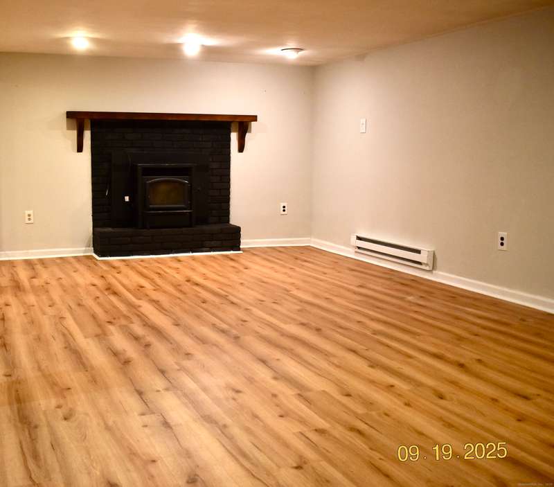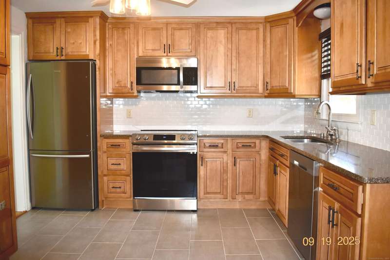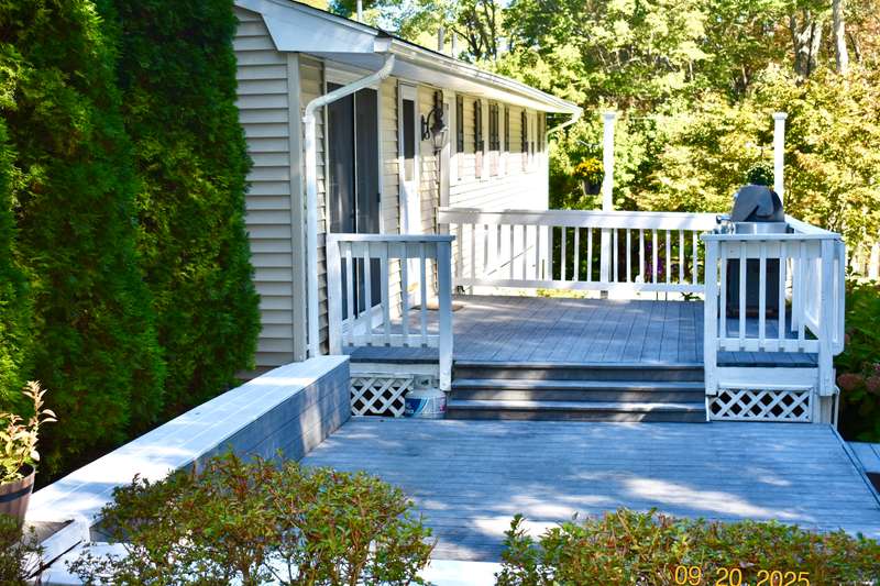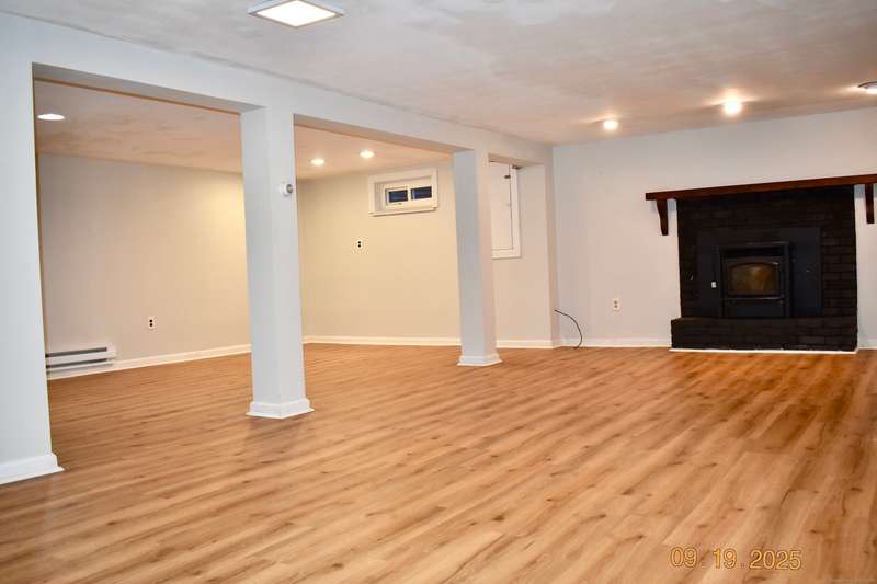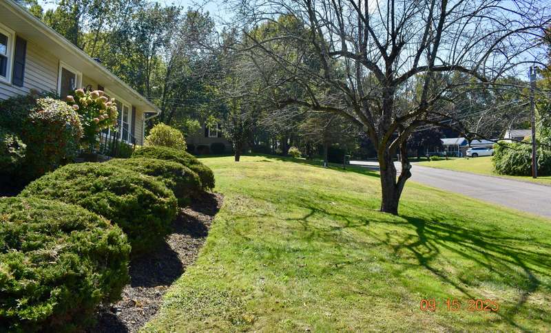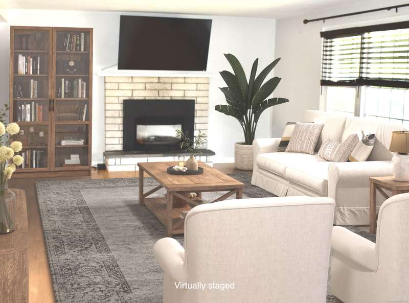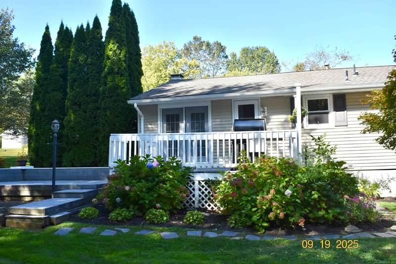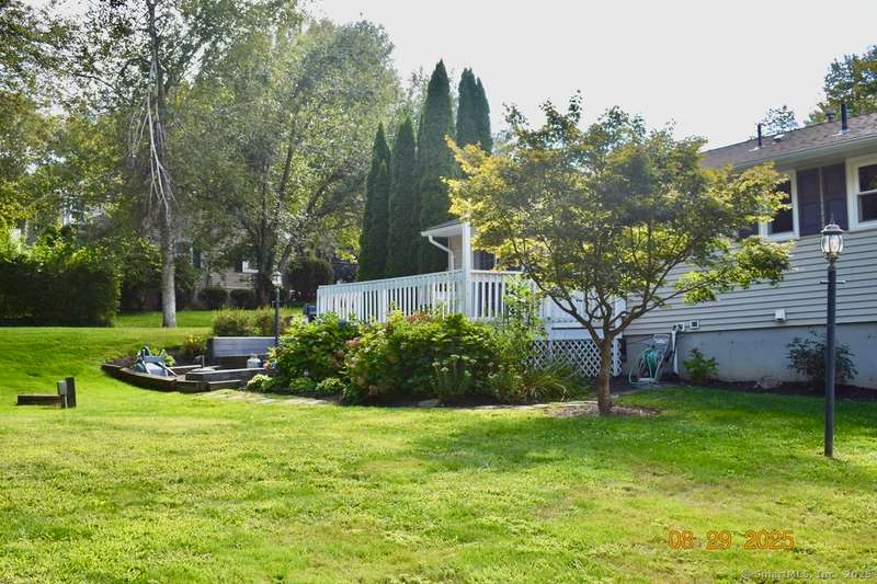 Tucked away in a quiet neighborhood in northern Watertown, this charming ranch-style home sits on a corner lot surrounded by two cul-de-sacs-off Guernseytown Road, just past the Taft School and Watertown Country Club. Step inside to find a beautifully updated kitchen with quartz countertops, a double sink, and access to the back deck-perfect for morning coffee or summer grilling. The bright living room features a gas fireplace and flows into the dining room, where French doors open to a large 2 level Trex deck overlooking the peaceful yard. Loaded with closets, the primary bedroom has its own renovated bathroom also. Gleaming hardwood floors run throughout the main level, complimented by ceiling fans and central air to keep the home comfortable year-round. 2000 sq ft includes the heated, finished basement with a pellet stove fireplace offering additional living space-ideal for a family room, game area, or home office. A full size laundry room leads into the attached two-car garage. A