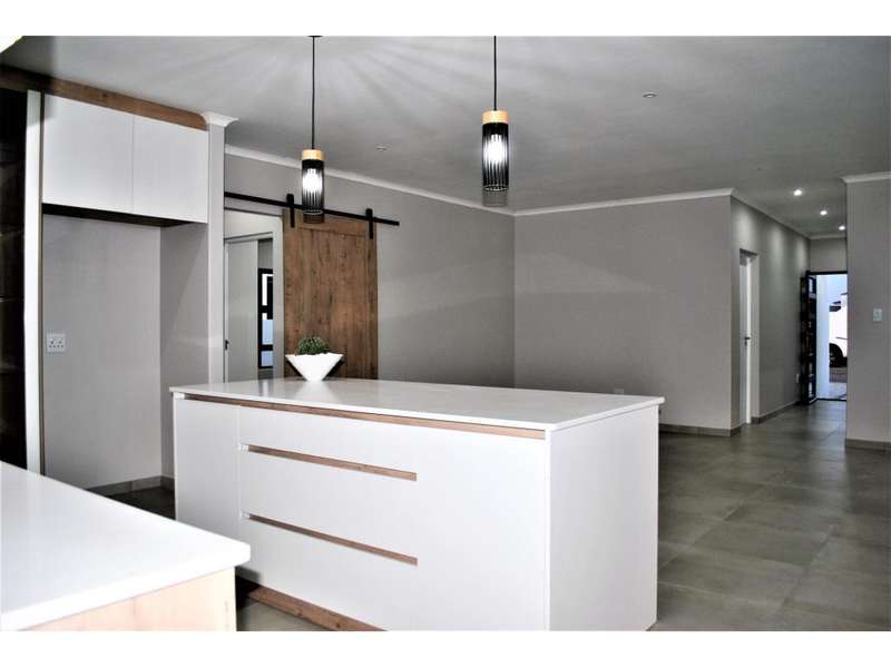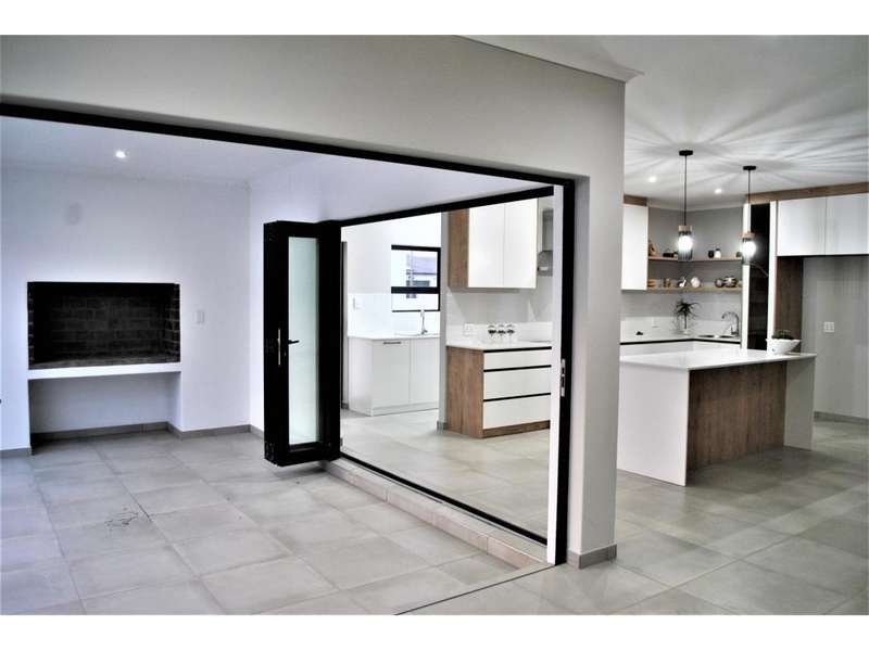 Brand New Home, 2nd Row from the Beach in Sandy Point Beach Estate This stunning 3-bedroom home is located in the pristine Sandy Point Beach Estate, just 2 rows from the beach. The home features an open plan living area with trifold stacker doors that open out onto the patio with undercover braai, perfect for entertaining guests or relaxing with family. The kitchen is fully equipped with gas stove and hob, and there is a work island in the middle for extra counter space. The main bedroom has a partial sea view, and the other two bedrooms share a bathroom with shower. There is also a laundry room with plenty of storage space. The home is beautifully finished in soft tones that can match any style, and it has a private walkway to the beach. There is a double remote-controlled garage with direct access to the house, and a solar geyser provides hot water. The enclosed courtyard and paved driveway and sides of the house add to the home's appeal. This is a truly special home that is sure to impress. Features: 3 bedrooms 2 bathrooms Open plan living area Patio with undercover braai Fully equipped kitchen Work island Laundry room Main bedroom with partial sea view Private walkway to the beach Double remote-controlled garage Solar geyser Enclosed courtyard Paved driveway and sides of the house Call us today to arrange a viewing!