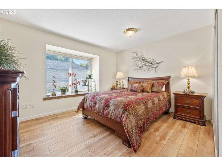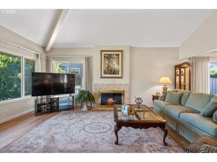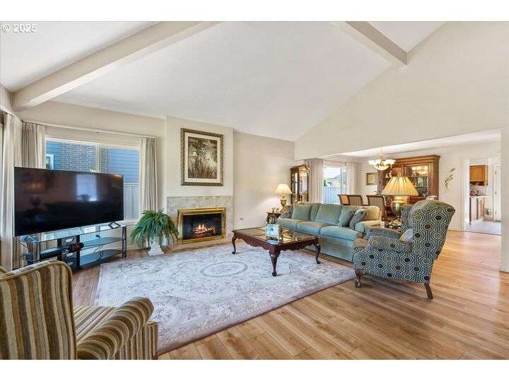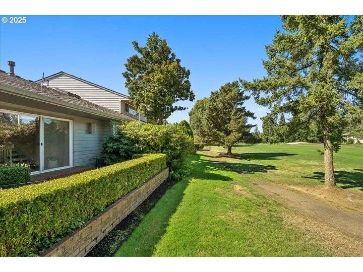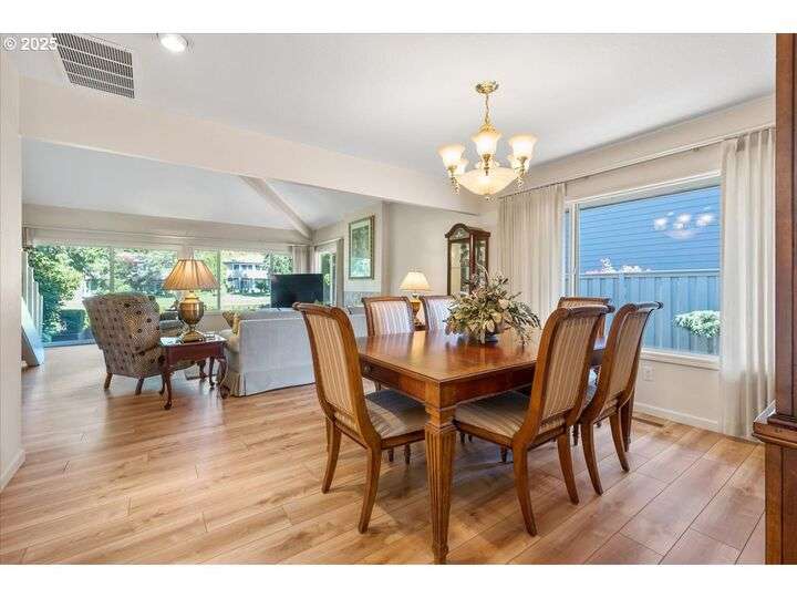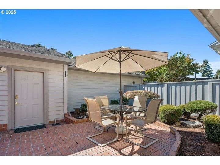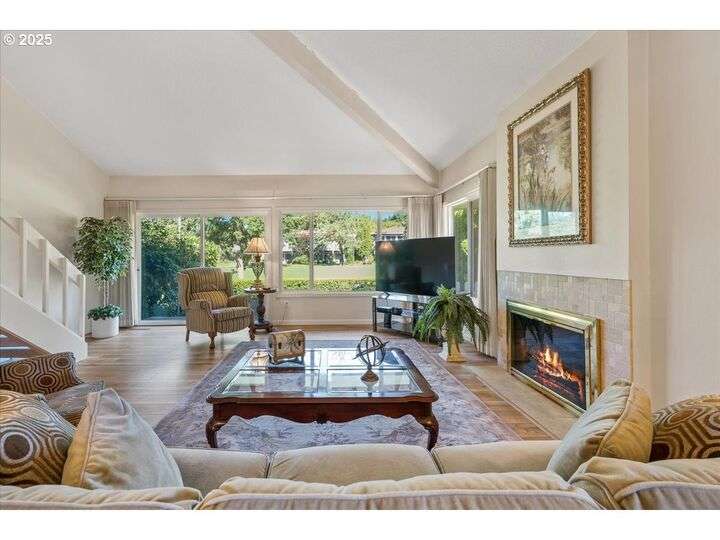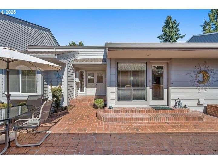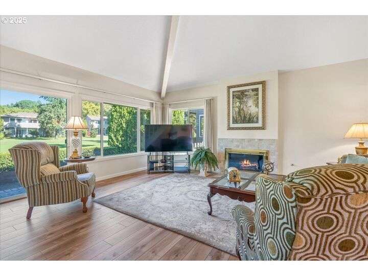 Welcome to this inviting, light-filled Eldorado plan home. Located on a quiet street and close to the Charbonneau Village for dining and a variety of activities, this one-level, 2 bedroom, 2 bath home is designed for comfort. The center of the home is the living room, featuring a soaring vaulted ceiling, a cozy fireplace, and expansive windows that bathe the space in natural light. The living and dining room combination is ideal for entertaining and the beautiful LVP flooring flows seamlessly throughout home, adding warmth and style. Off the living room, step outside onto the patio to enjoy fresh air and outdoor ambiance with views of the fairways. At the front of the home, the private fenced courtyard is your personal retreat for relaxation or entertaining guests. The primary bedroom, with views to the golf course, has a bench window seat and a rare vaulted ceiling for a sense of spaciousness. Upstairs storage or craft area awaits your creativity, while the 2-car garage includes a dedicated workshop space for all your projects.